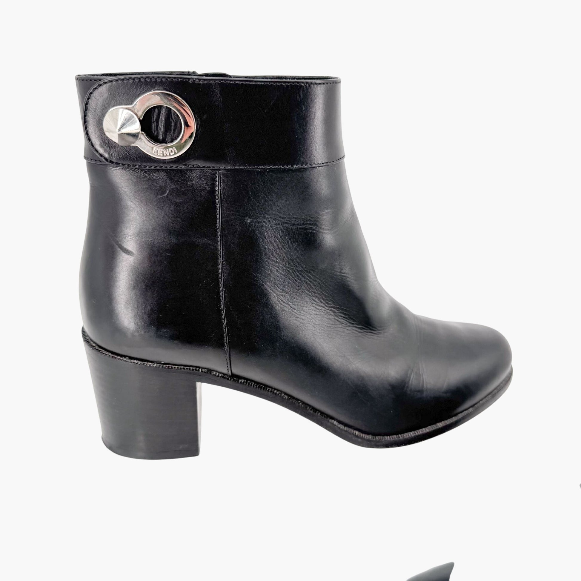 Fendi Stud Ankle Boots in Black Leather Size 38