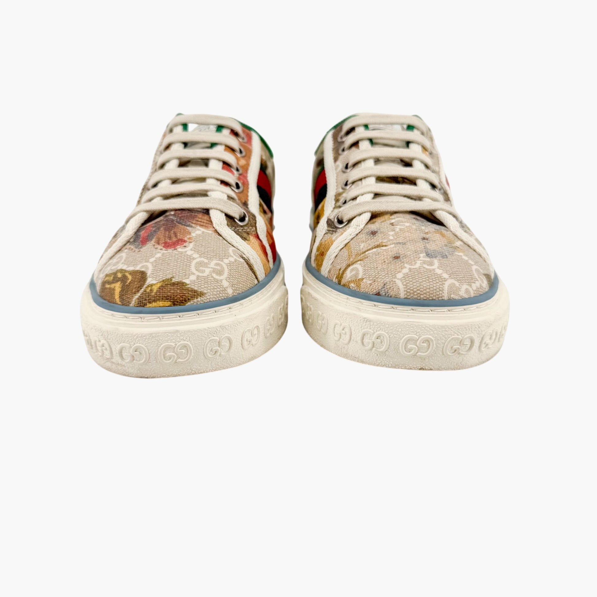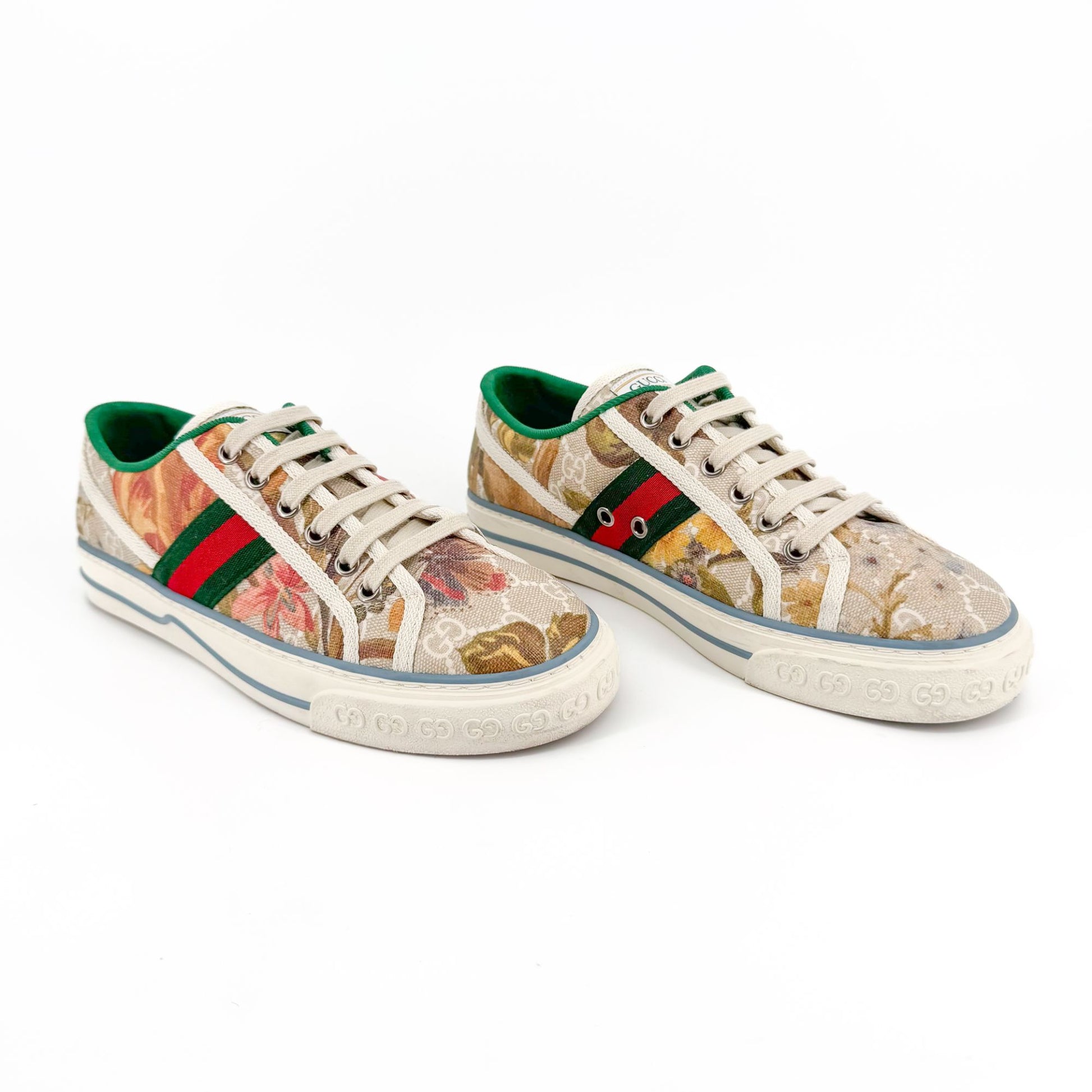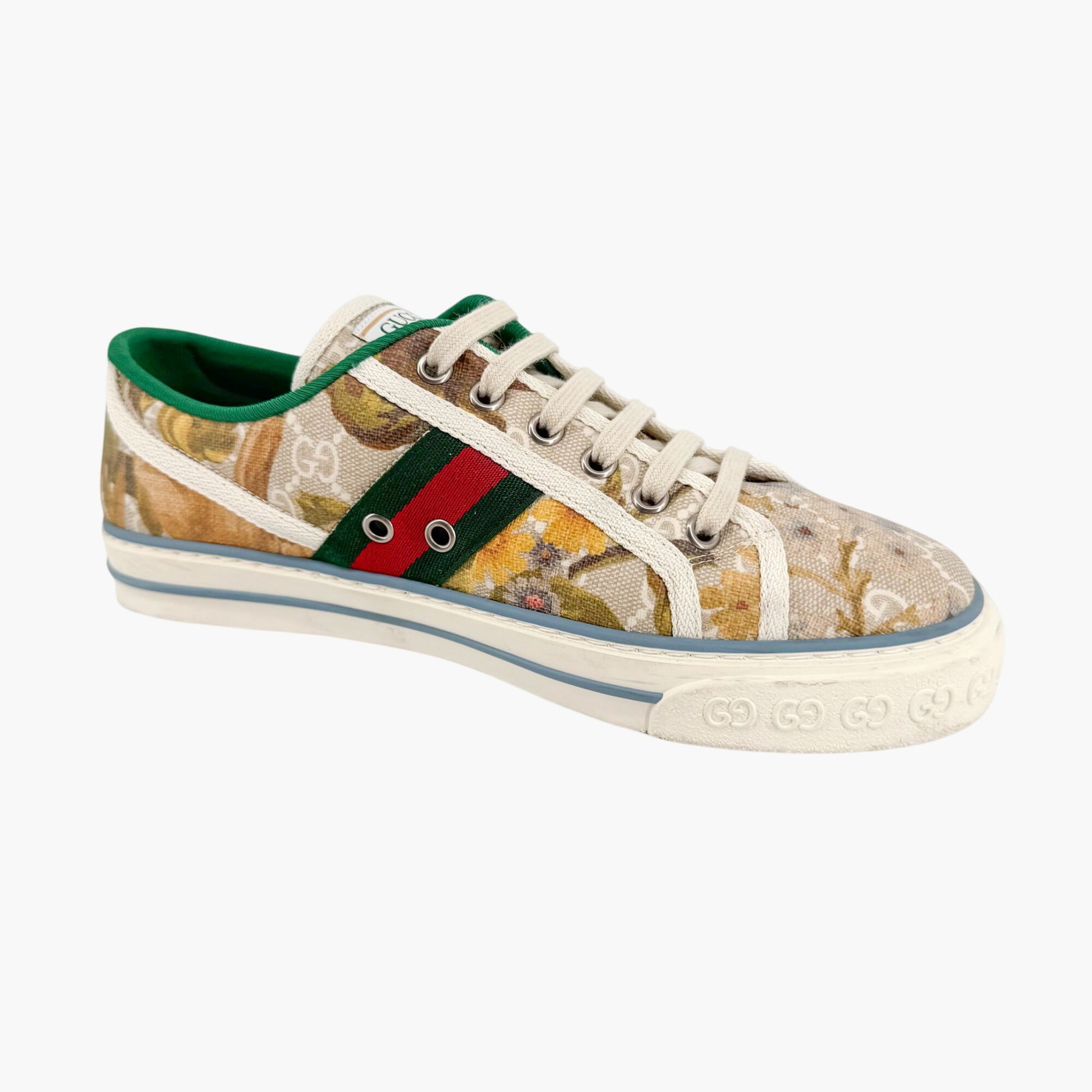 Gucci Tennis 1977 Low Top Sneakers in Beige GG Supreme Water Flora Canvas Size 38.5