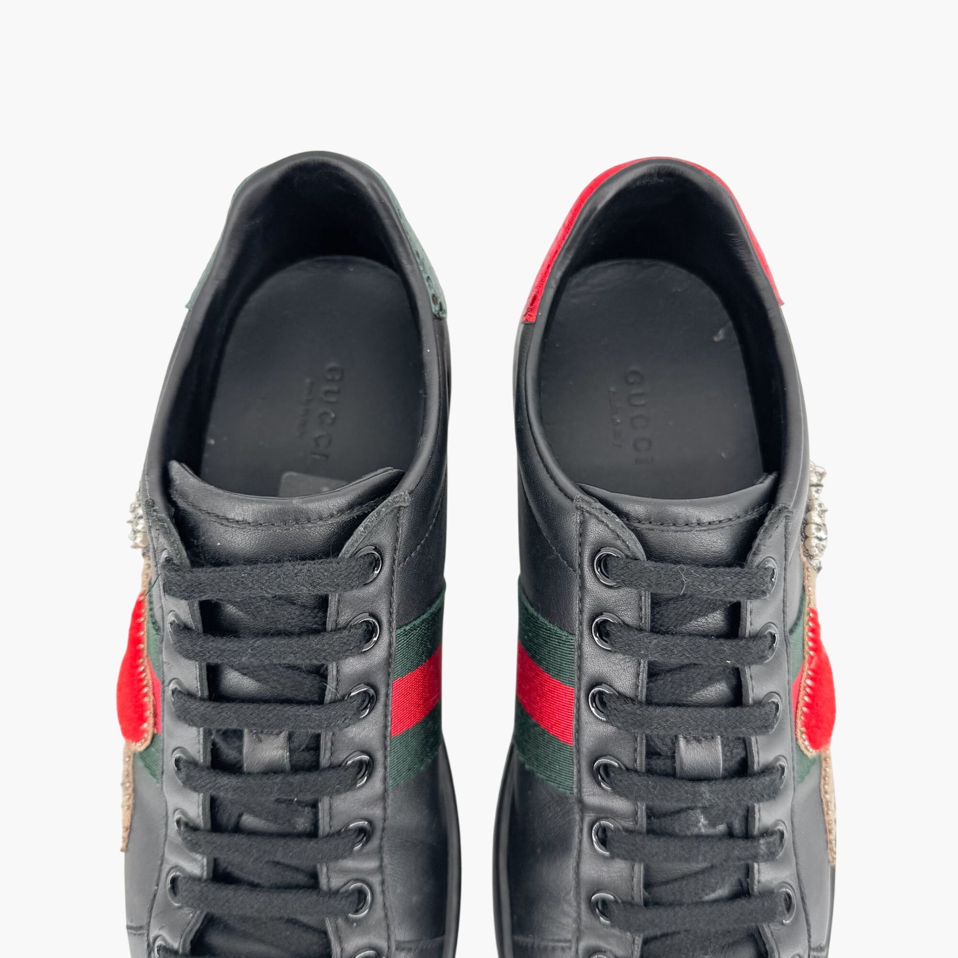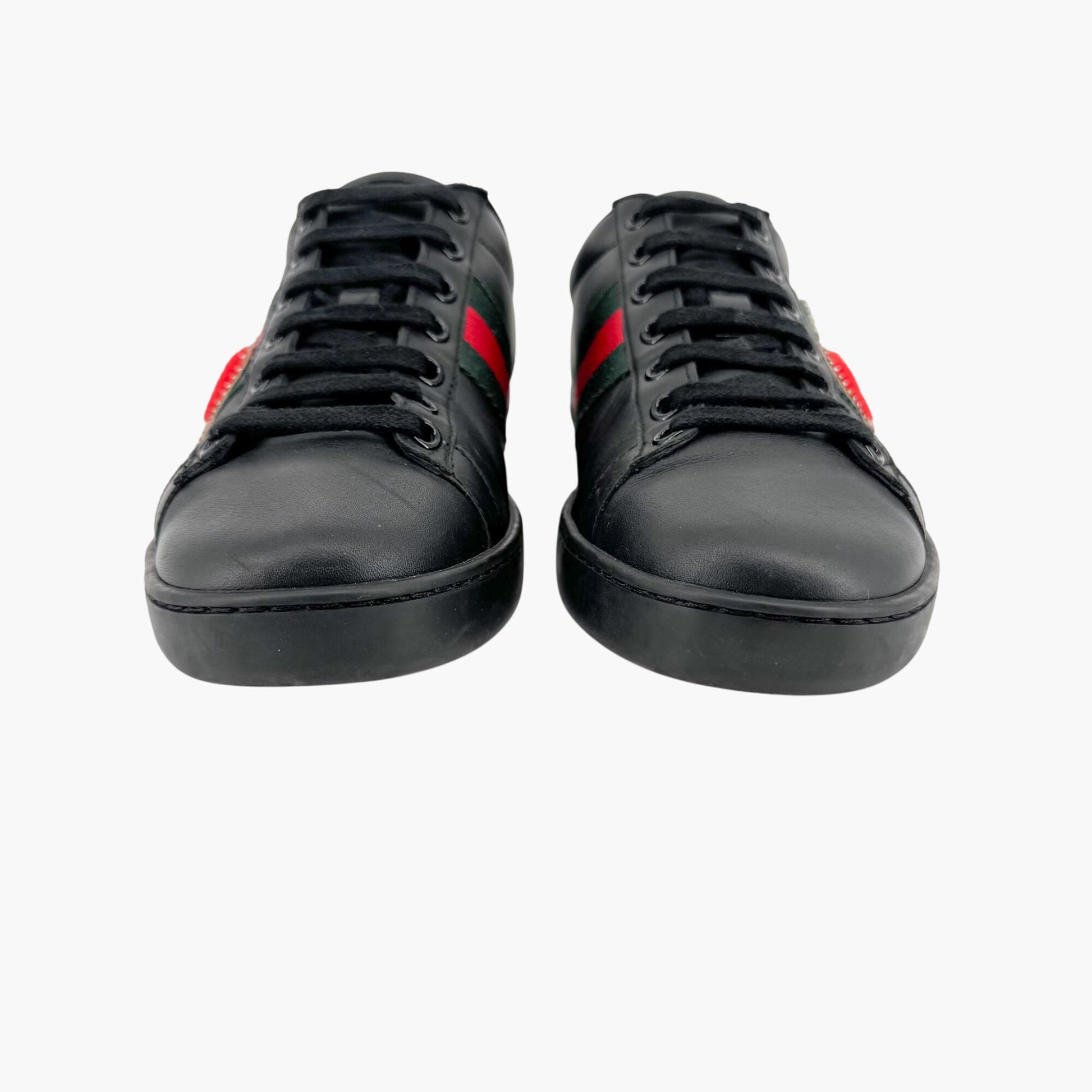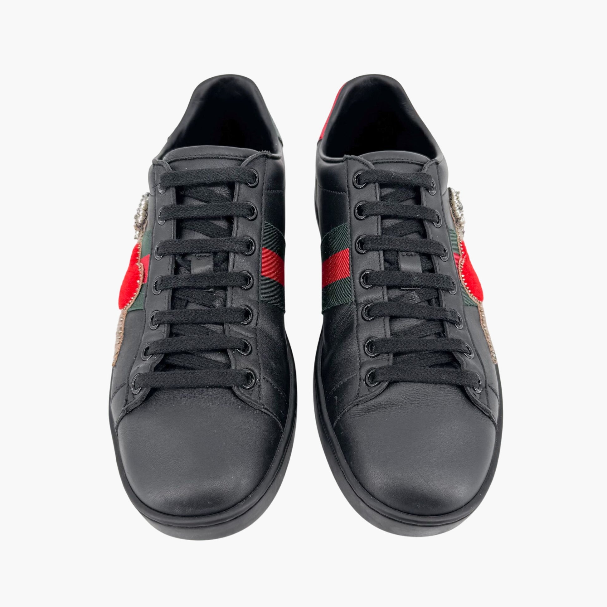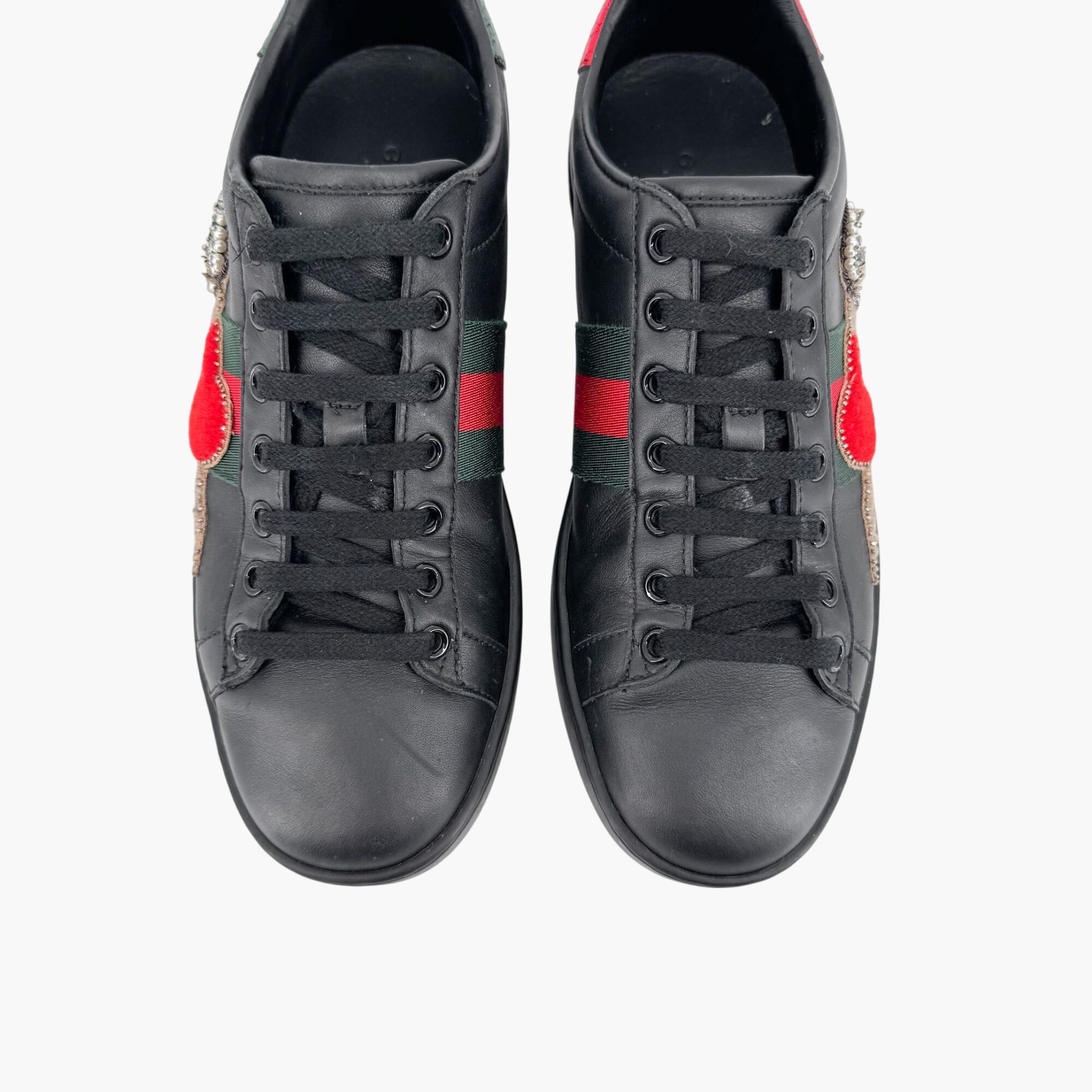 Gucci Ace Embellished Heart & Dagger Sneakers in Black Leather Size 36.5