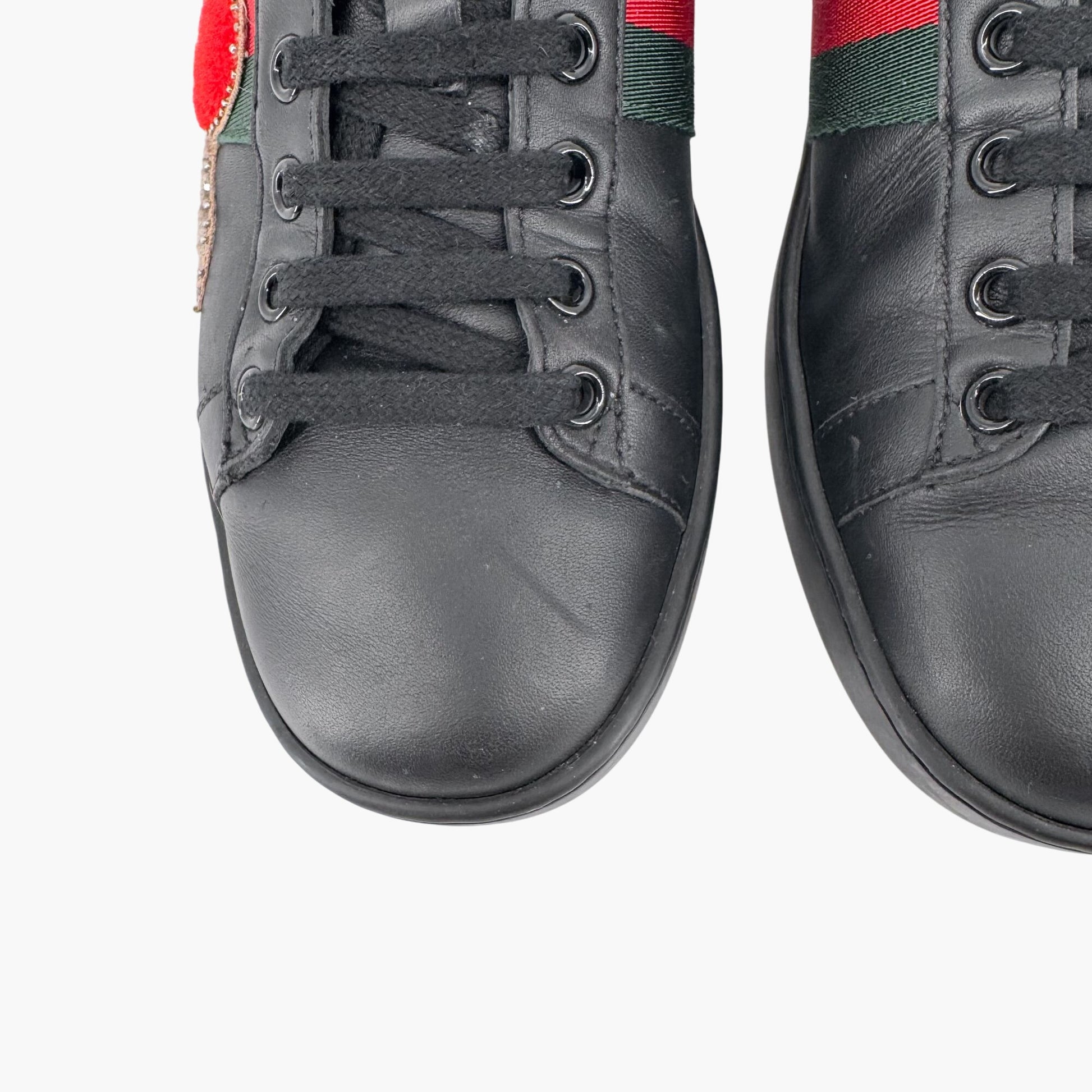 Gucci Ace Heart & Dagger Sneakers Size 36.5 US 6.5 Black Leather Sword Crystal