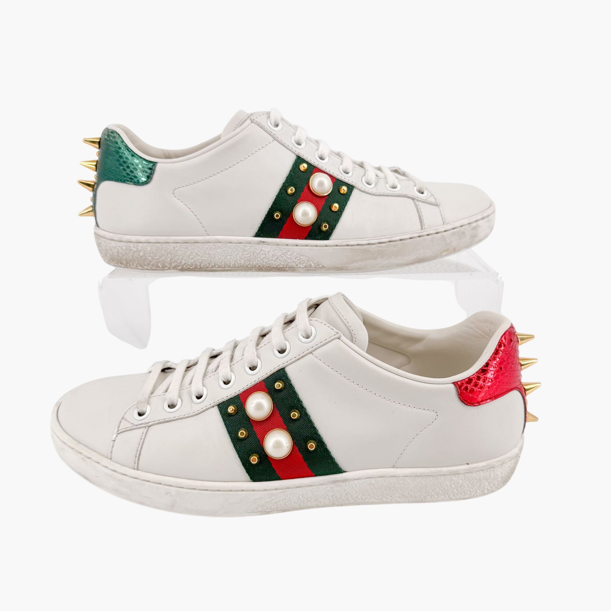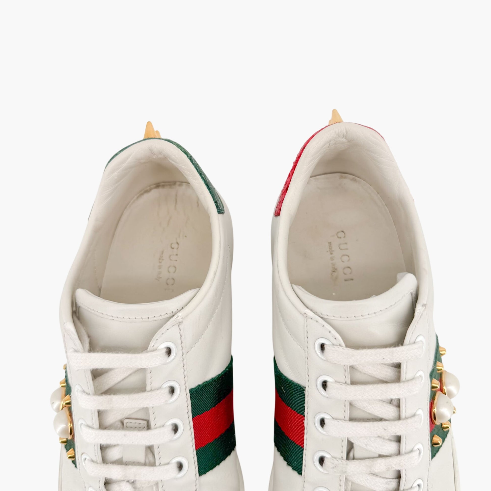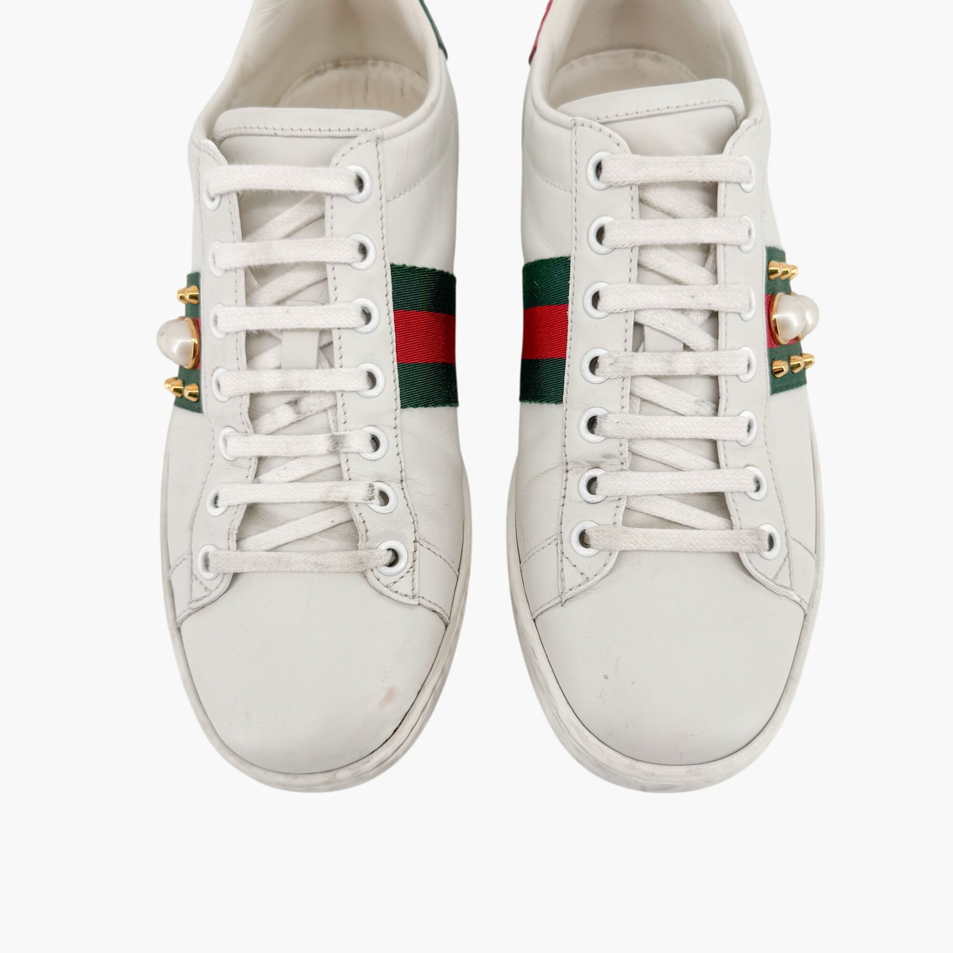 Gucci Ace Pearl & Spike Sneakers in White Leather Size 36.5