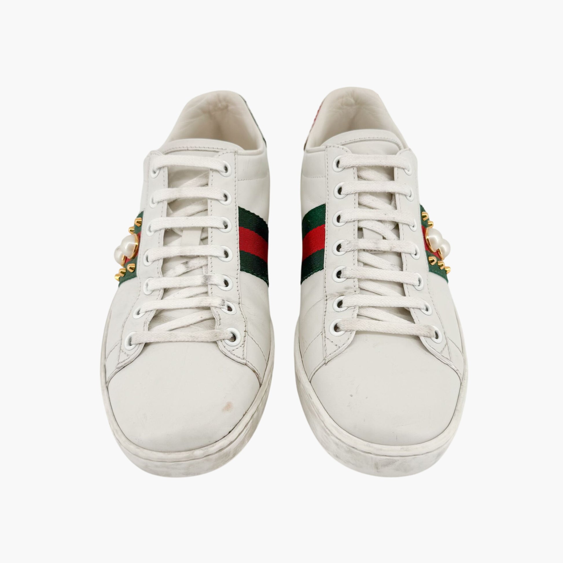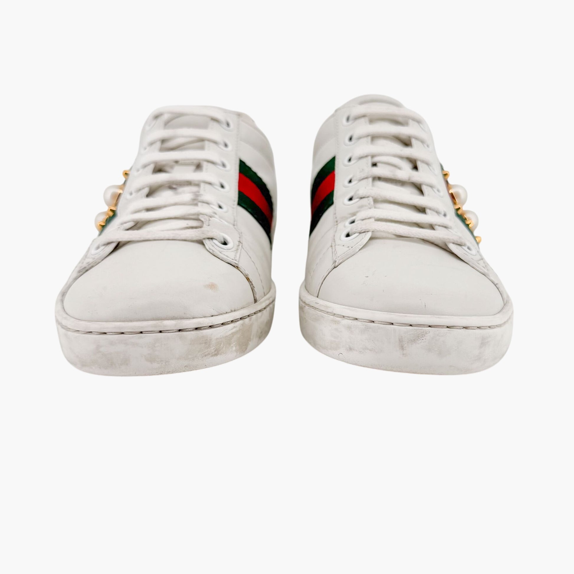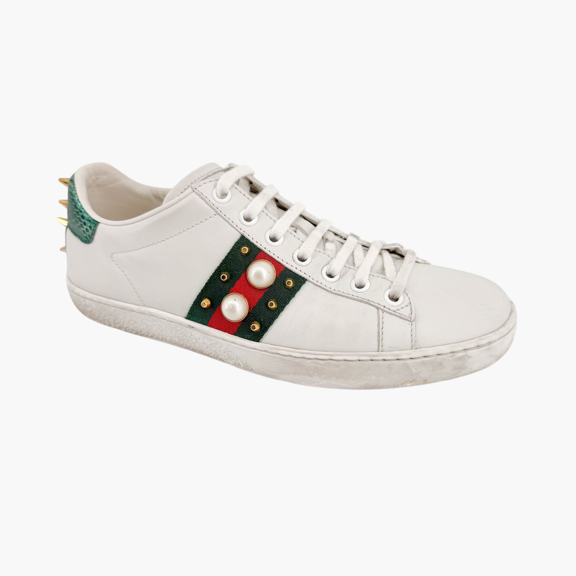 Gucci Ace Pearl & Spike Sneakers in White Leather Size 36.5