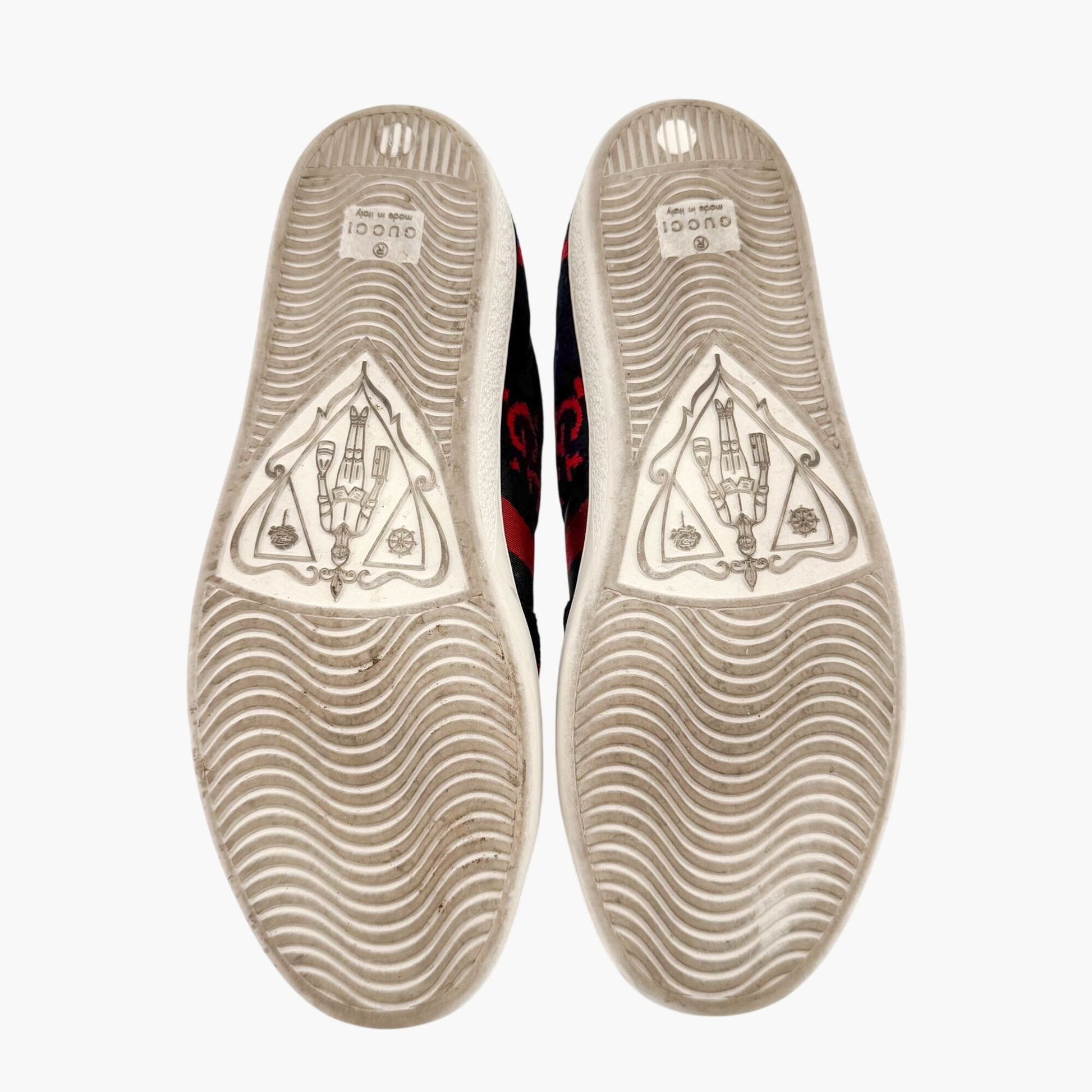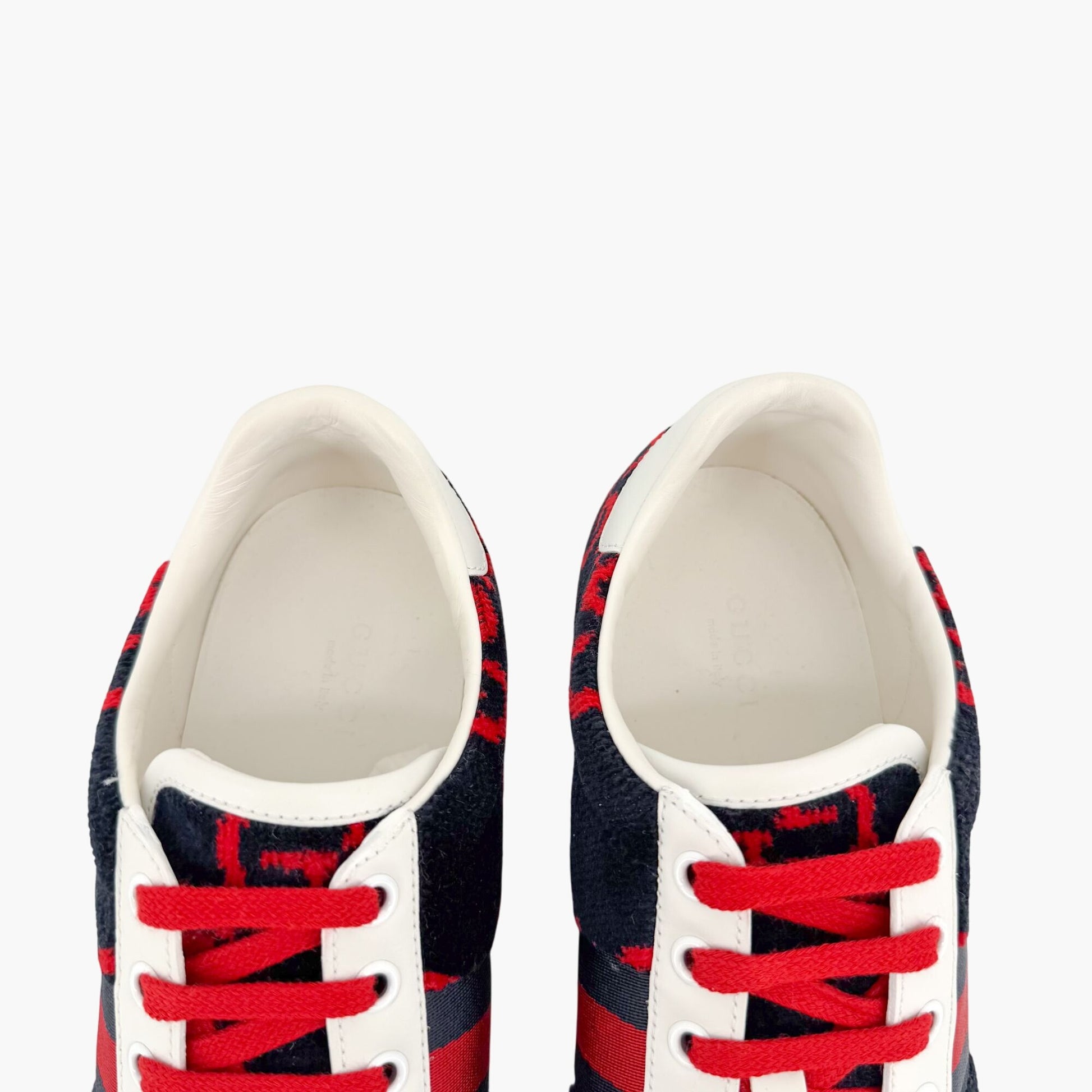 Gucci Ace Sneakers EU 38 US 8 Navy Blue & Red GG Monogram Corduroy Low Top Shoe