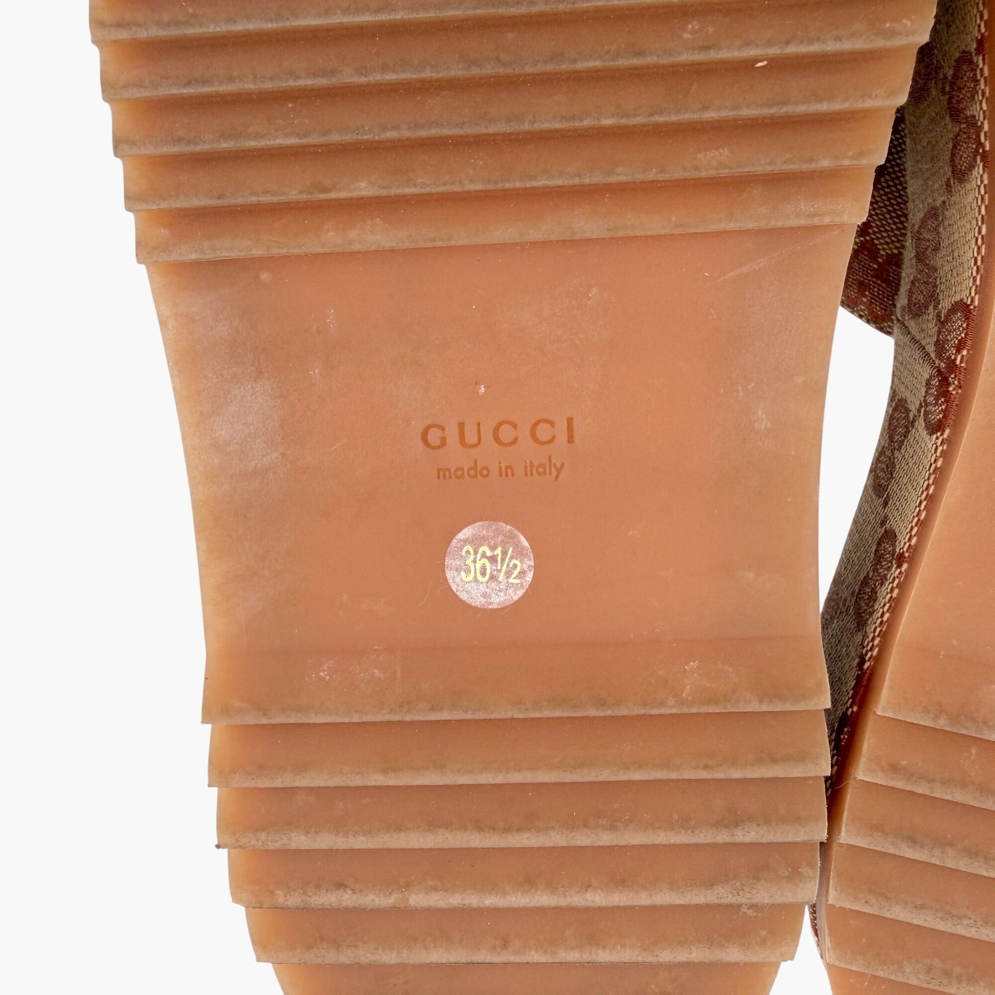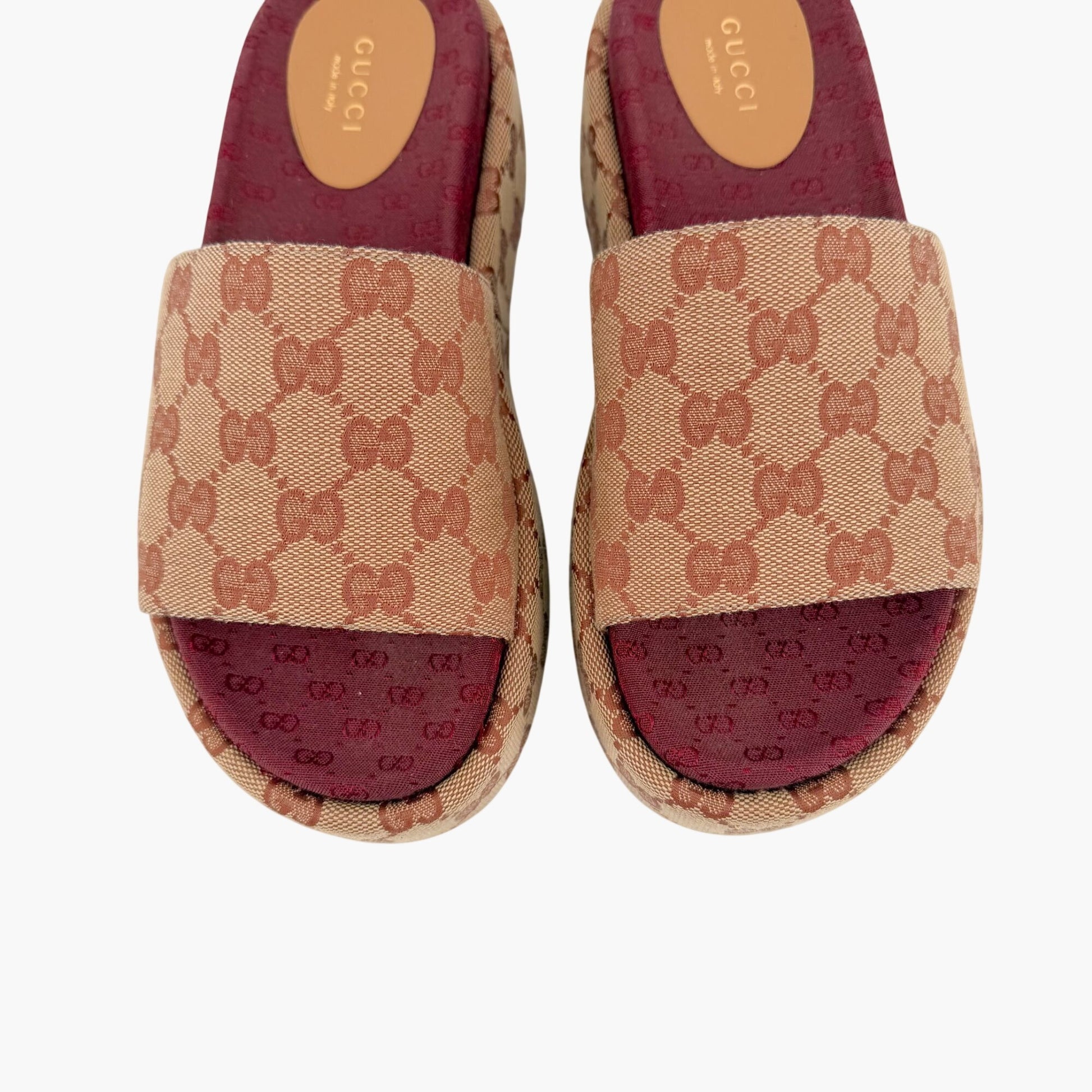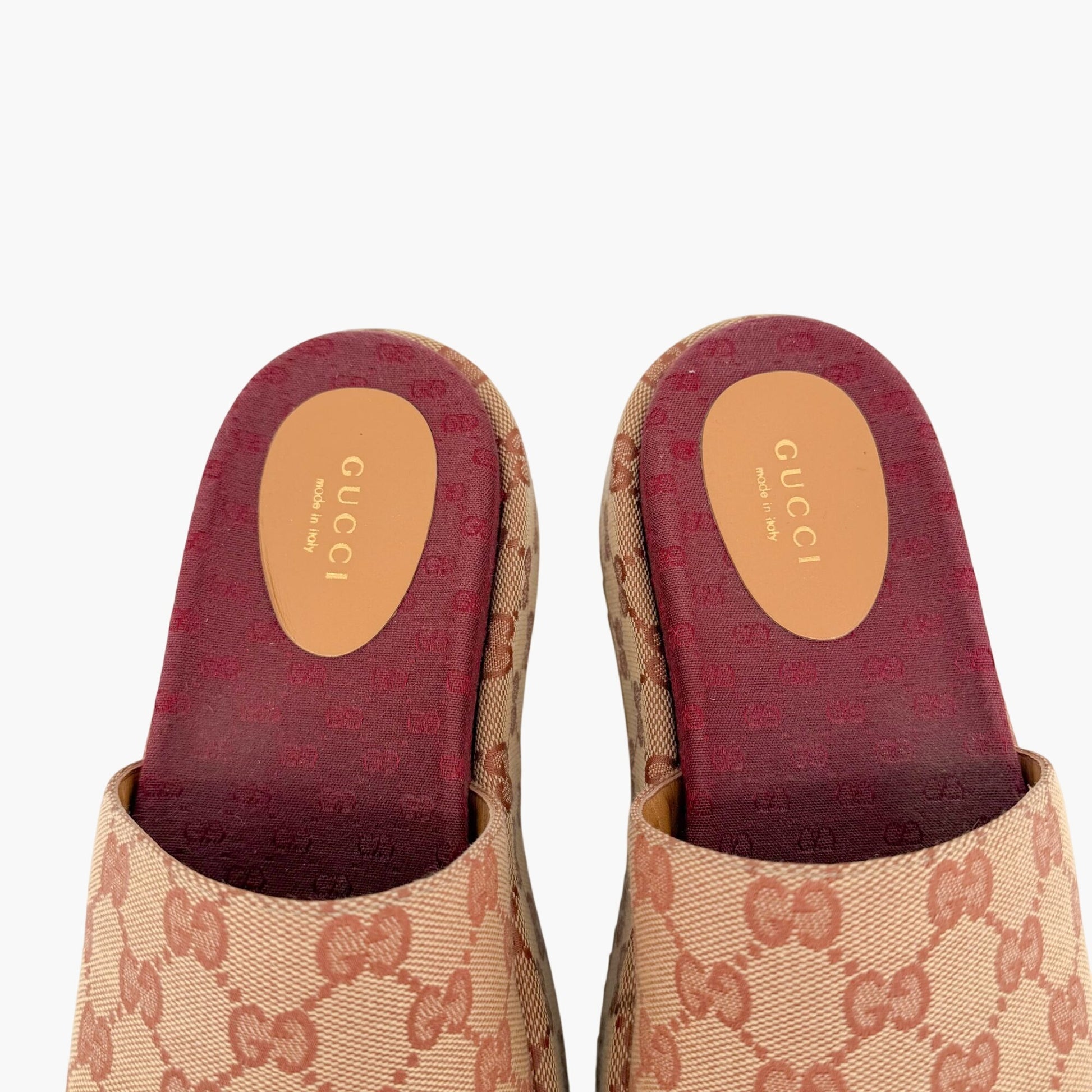 Gucci Angelina Platform Slide Sandals Beige GG Canvas Size 36.5