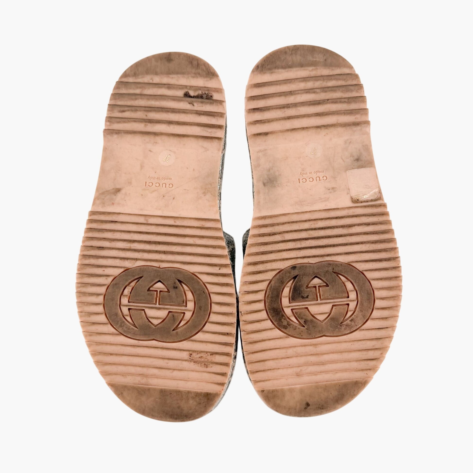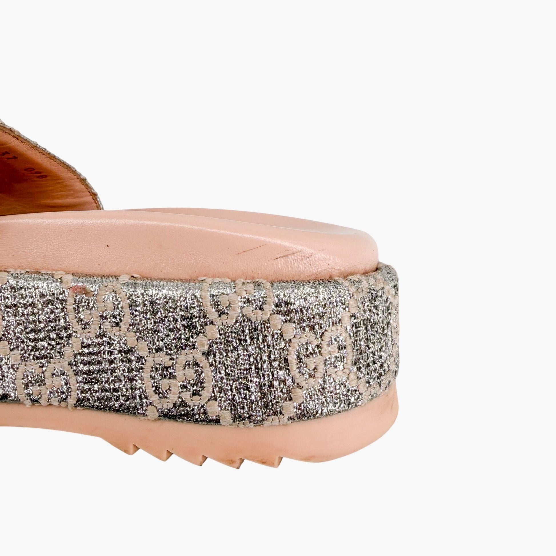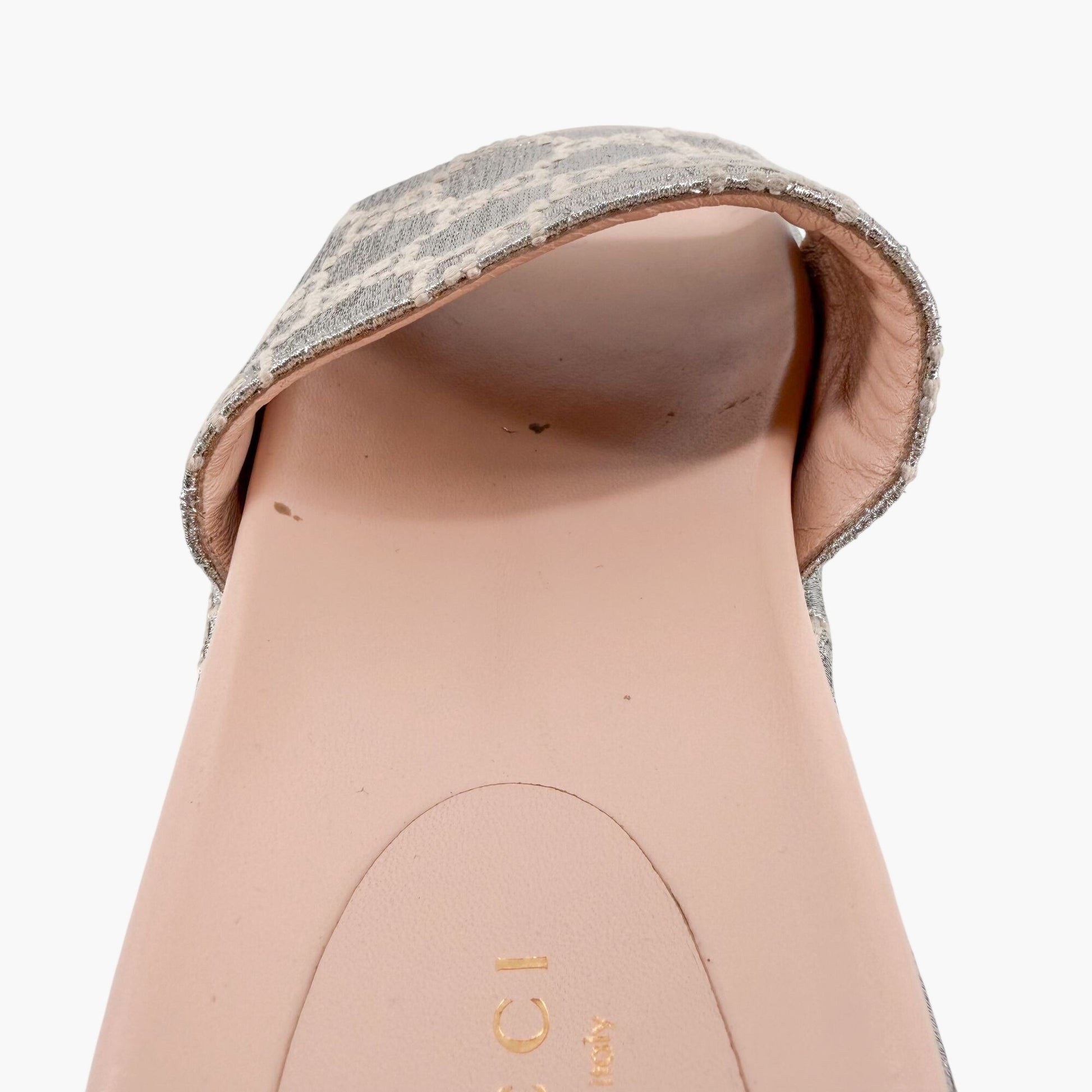 Gucci Angelina Platform Slide Sandals Silver GG Size 37
