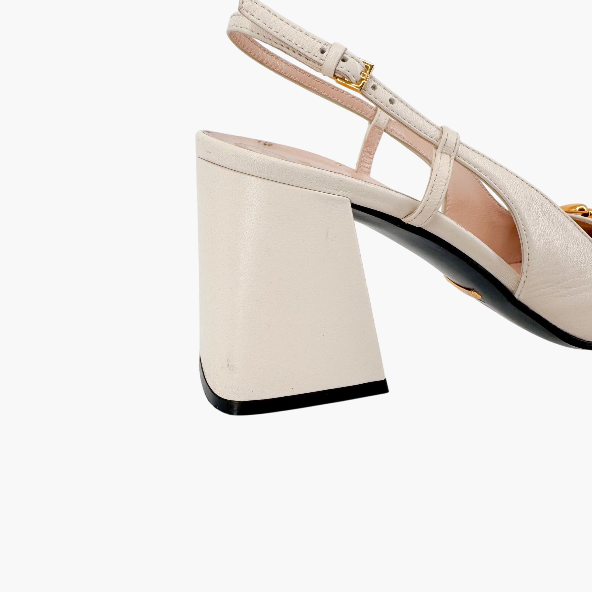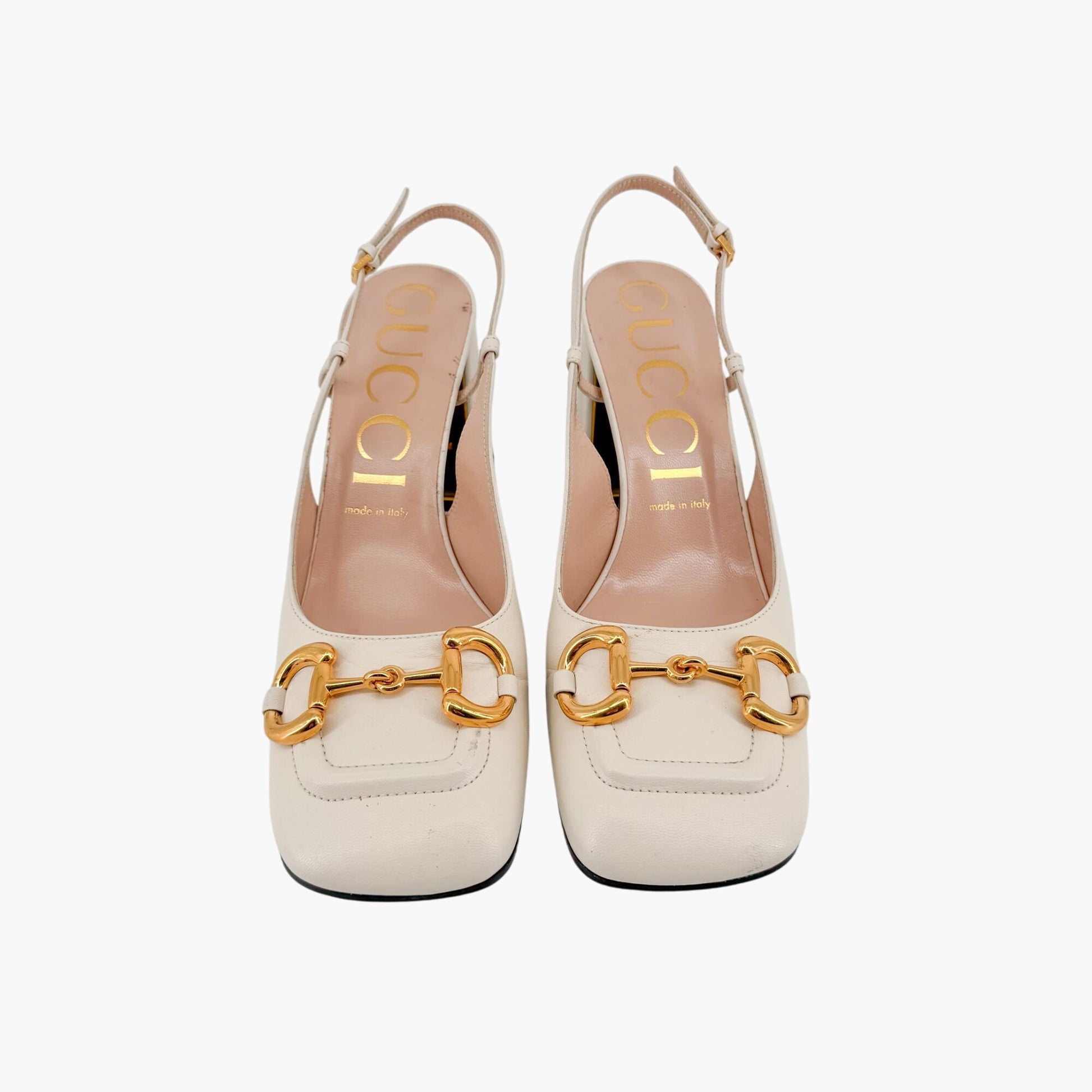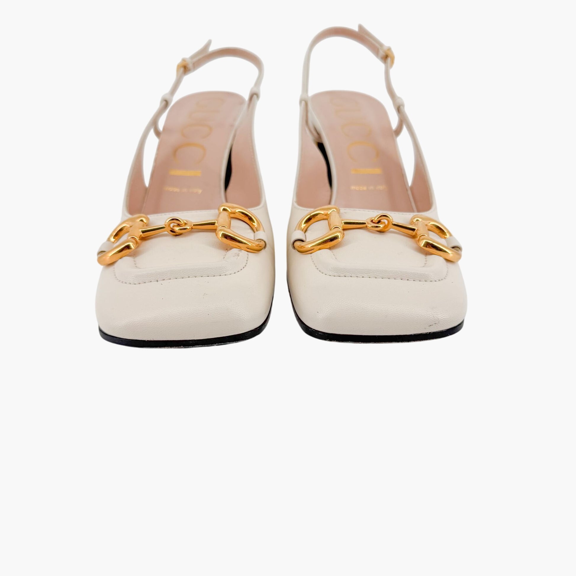 Gucci Baby Horsebit Slingback Pumps in White Leather Size 39.5