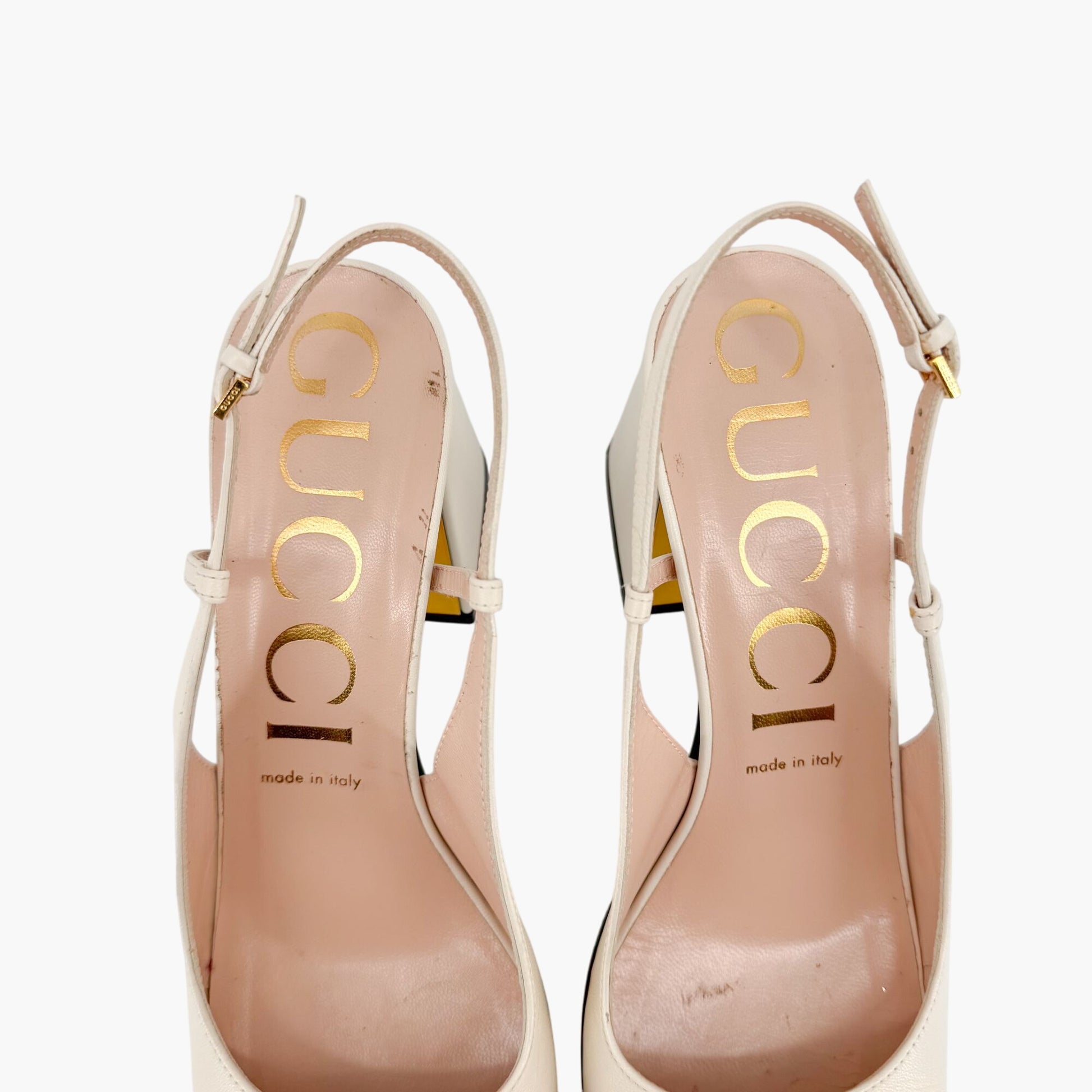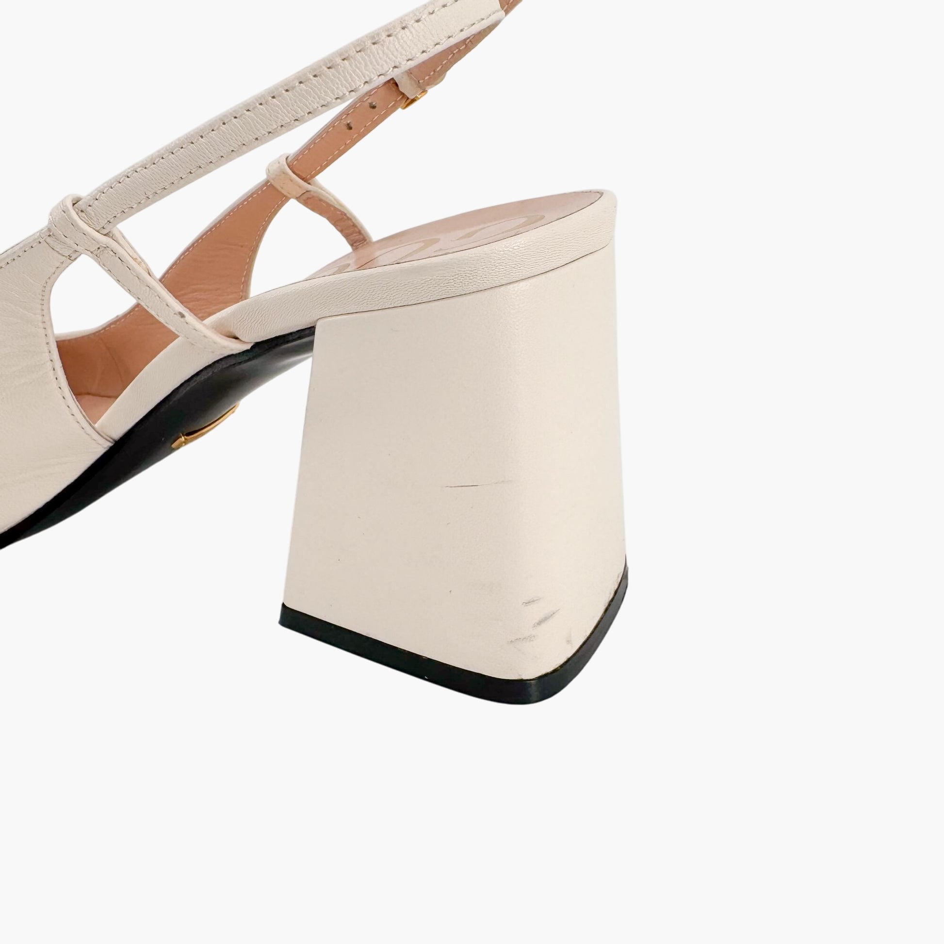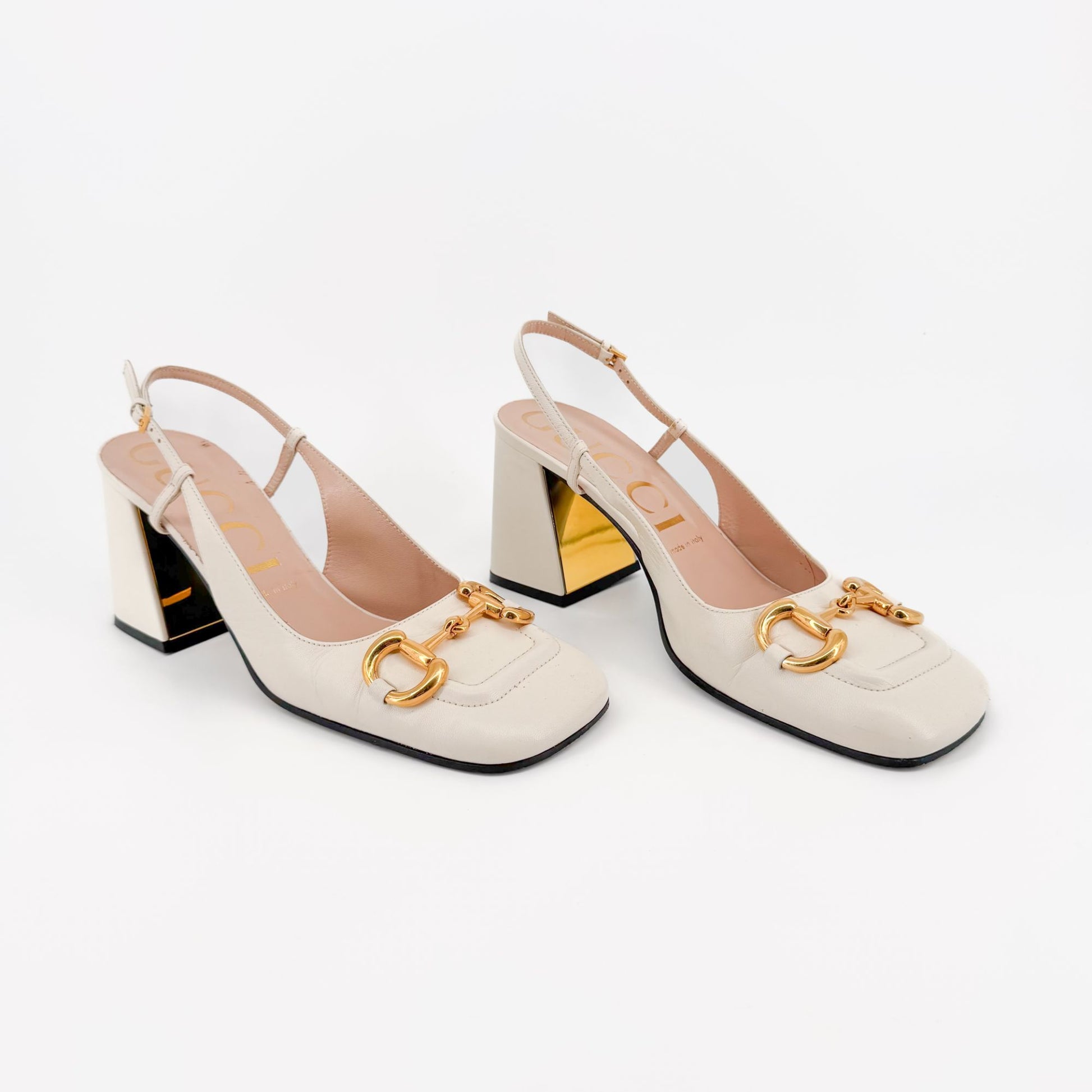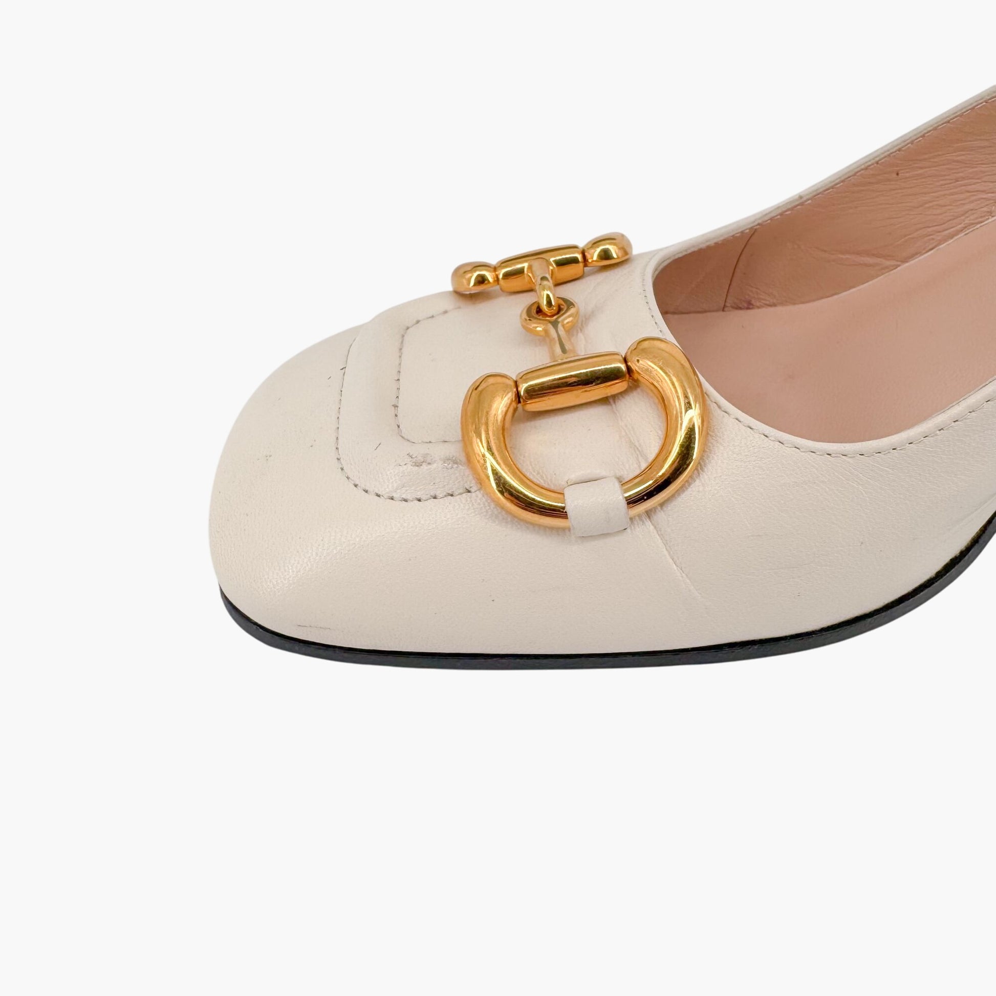 Gucci Baby Horsebit Slingback Pumps in White Leather Size 39.5