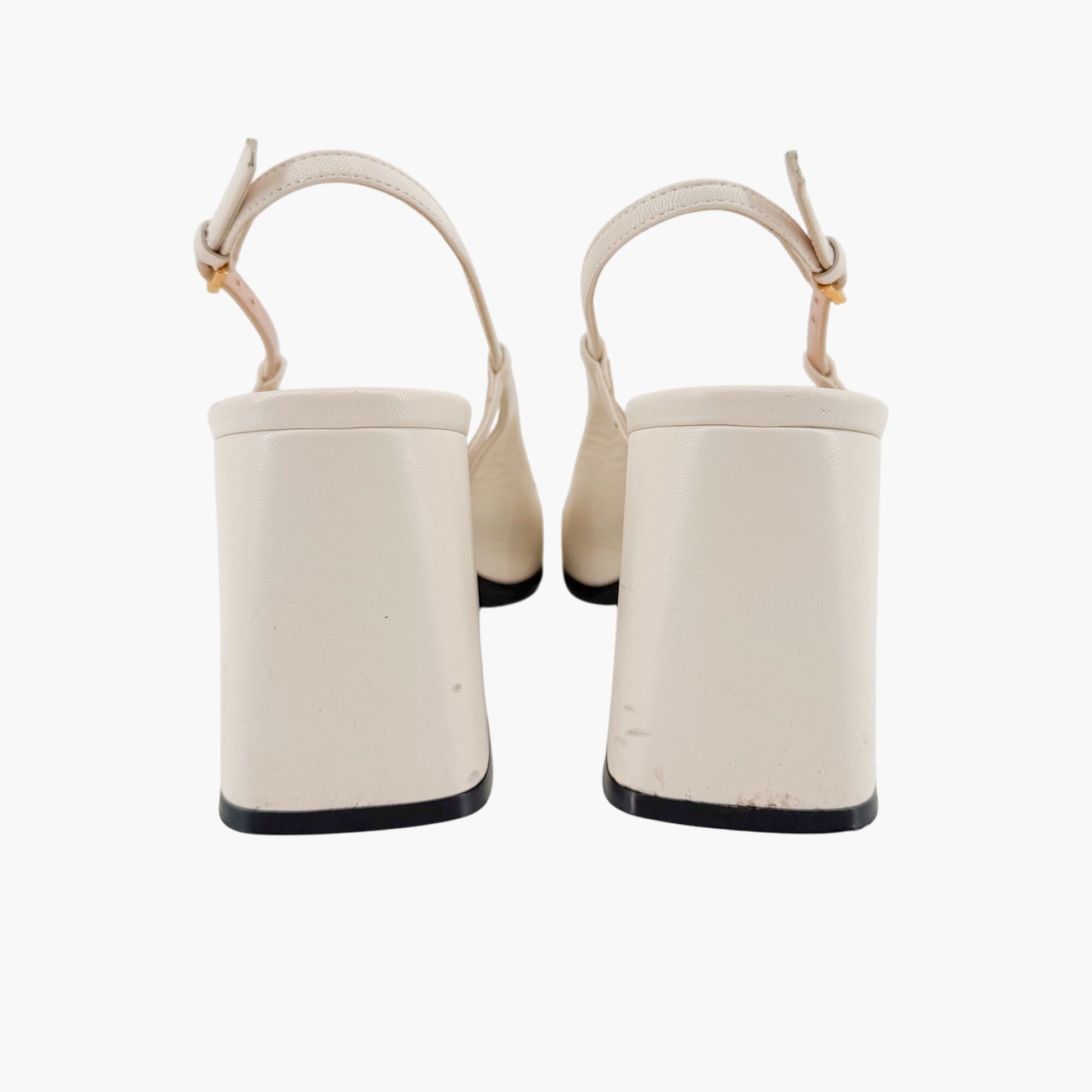 Gucci Baby Horsebit Slingback Pumps Size 39.5 US 9.5 White Block Heel Square Toe