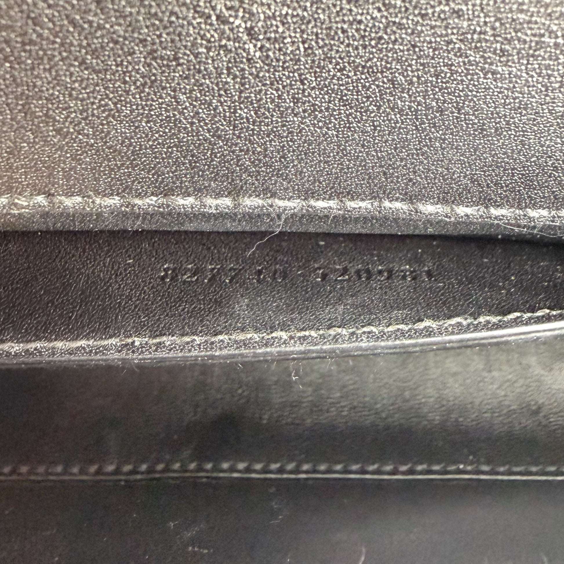 This Gucci Bamboo Night Chain clutch is crafted from black glossy leather with silver-tone hardware and a signature bamboo-style turnlock closure. Its slim silhouette and removable chain strap make it equally suited for evening events, formal gatherings, or elevated day-to-night wear. Includes dust bag.
