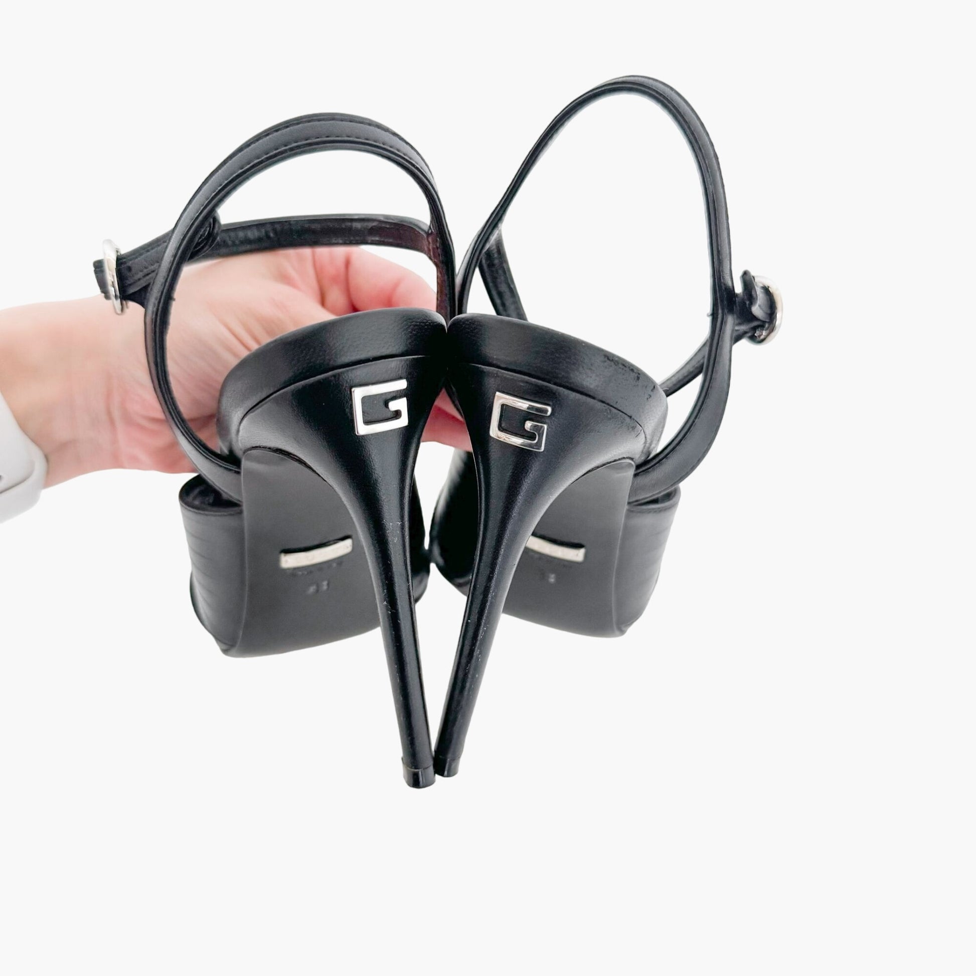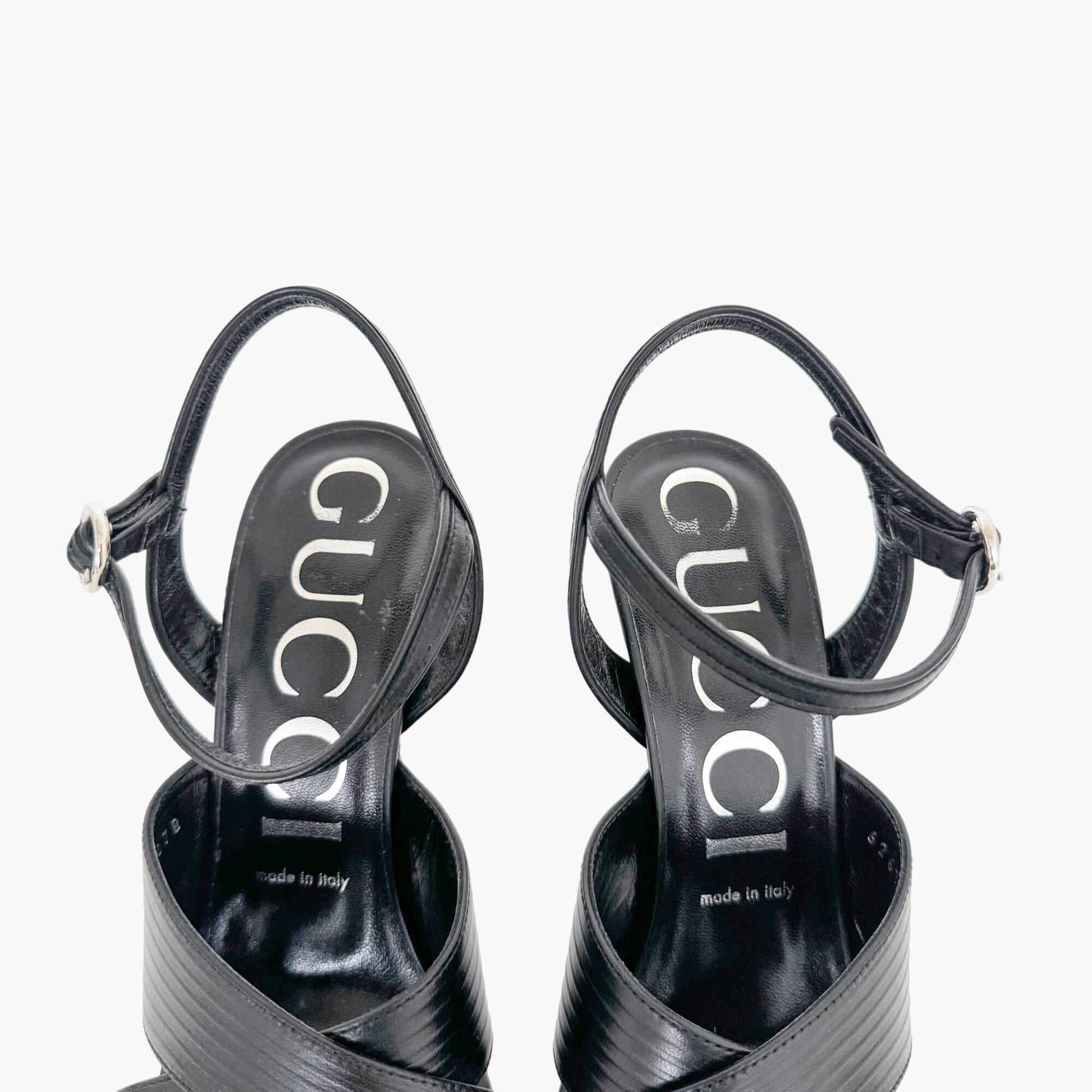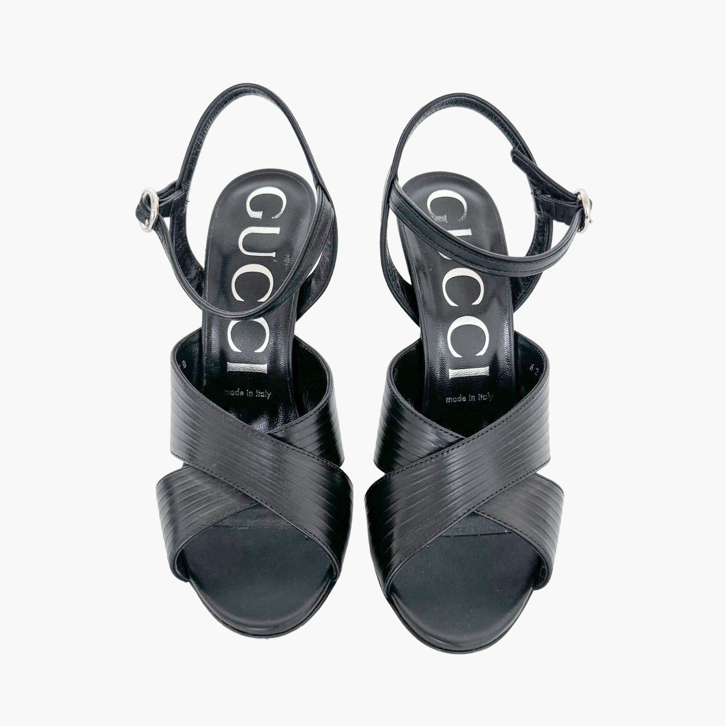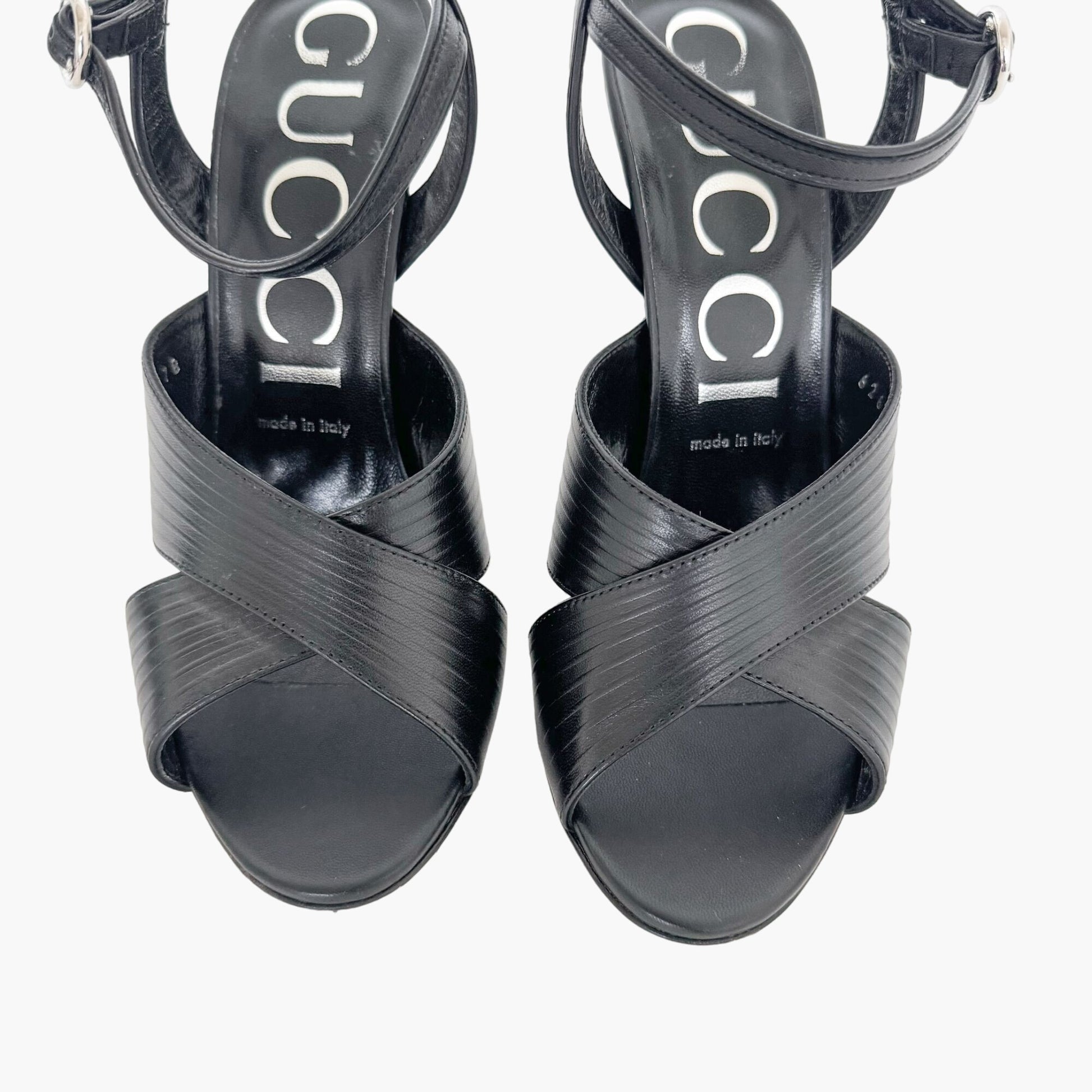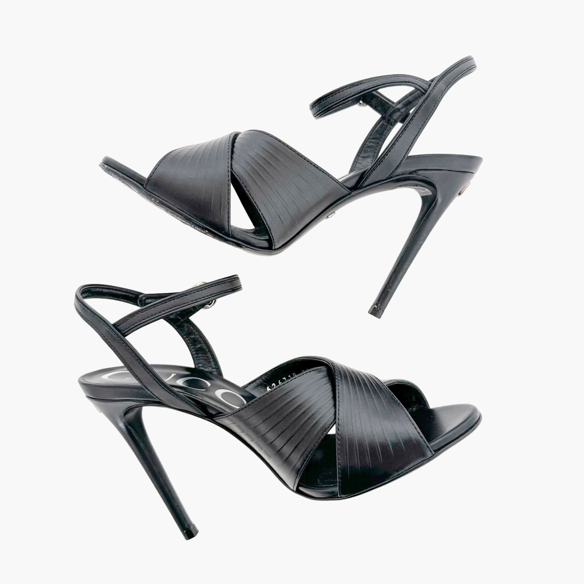 Gucci Betsey 105 Criss-Cross Strap Sandals EU 38 US 8 Black Leather High Heel