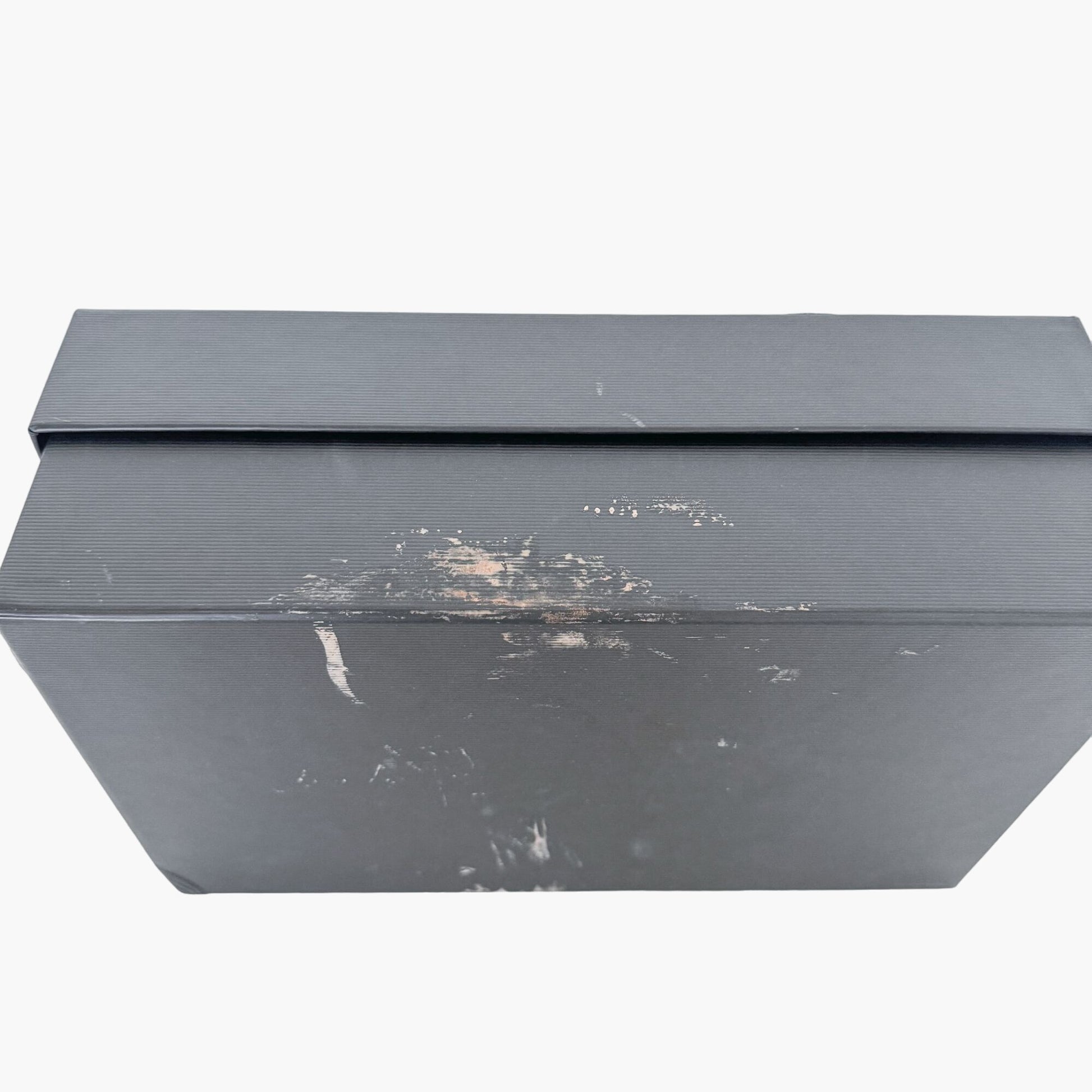 Shoes show signs of use, including creasing, scuffing/dirt on heels, fading of insole stamping, and scuffing on outsoles