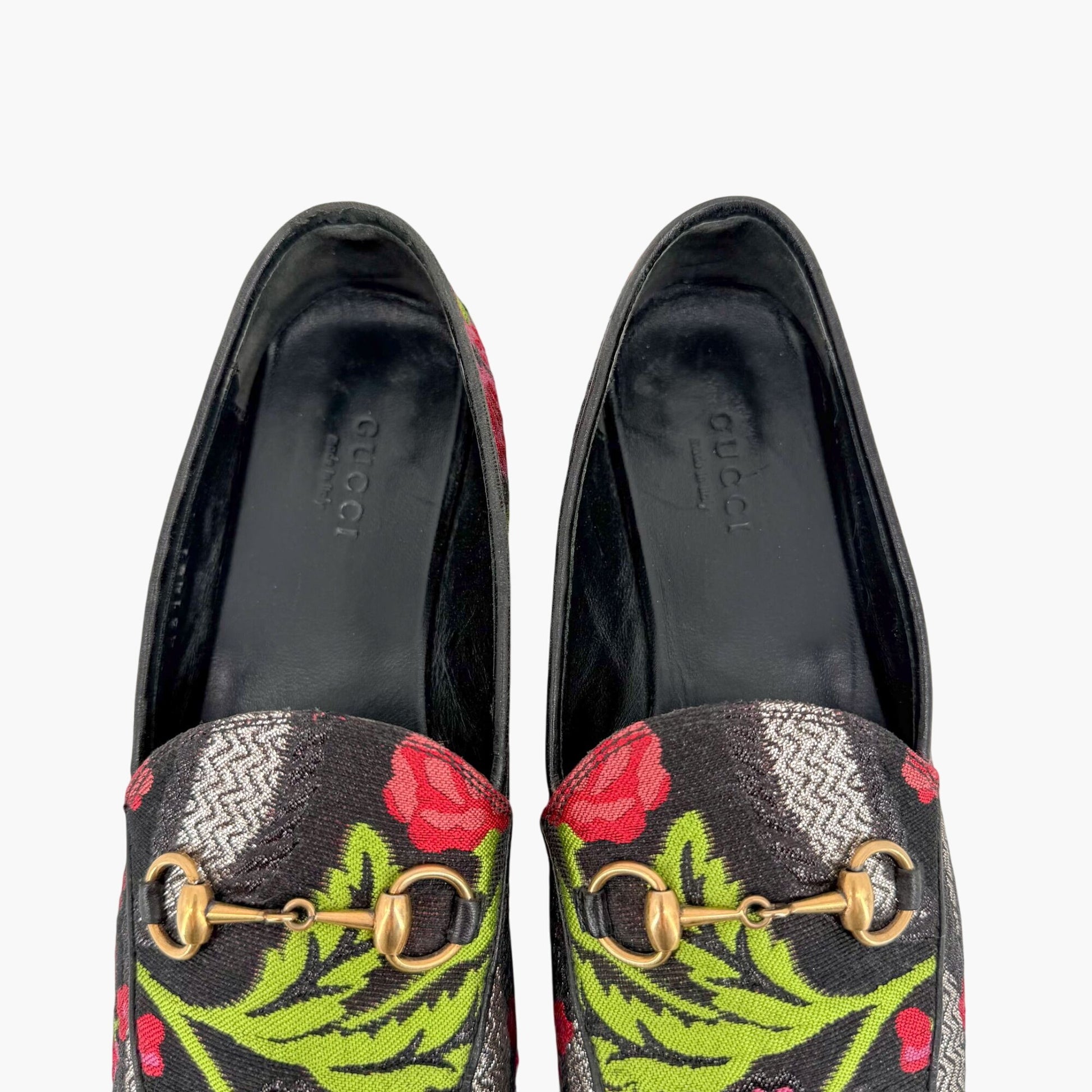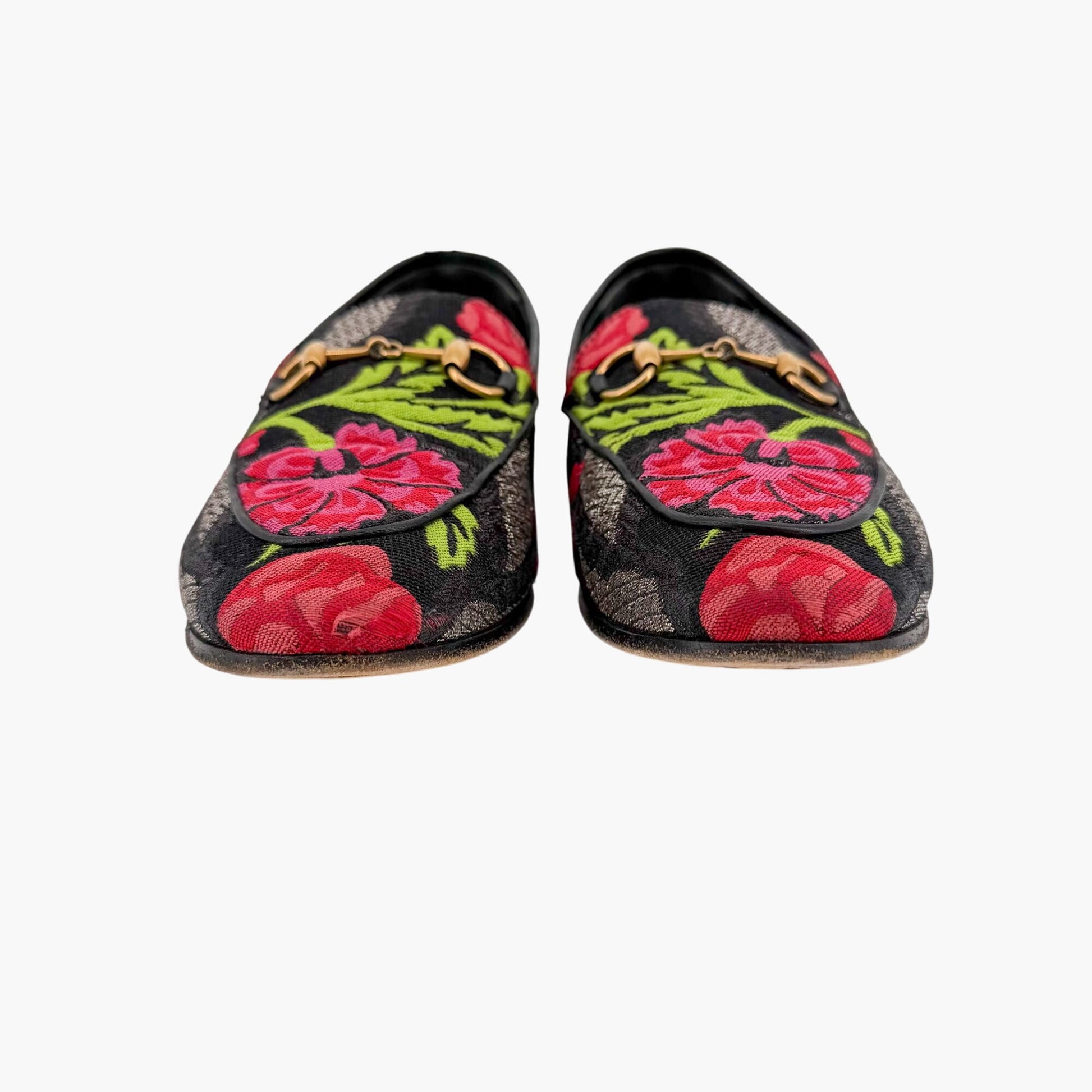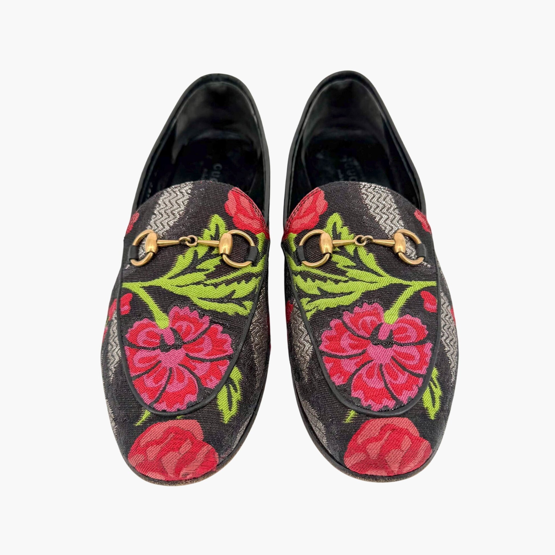 Gucci Black Floral Brocade Jordaan Horsebit Loafers Size 37