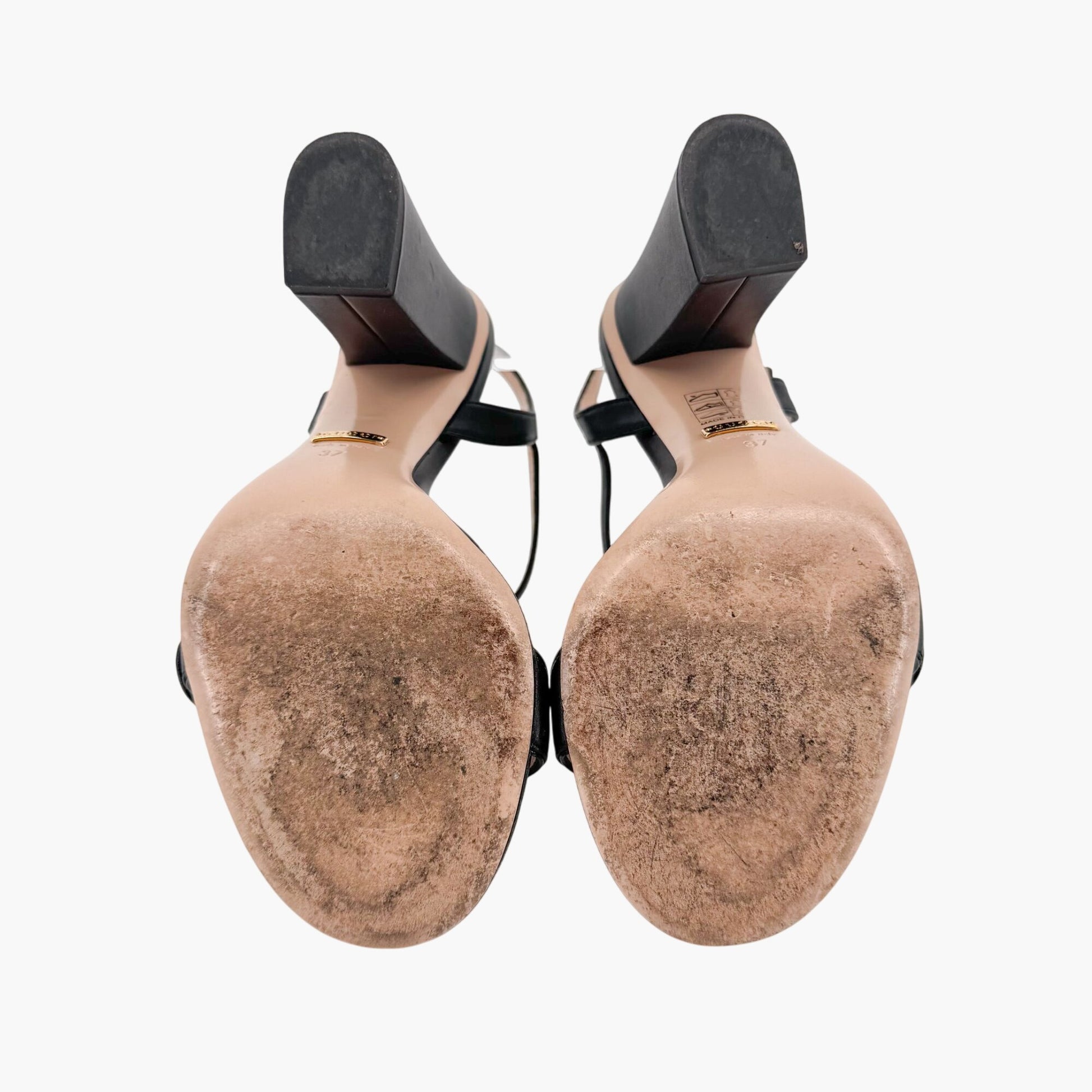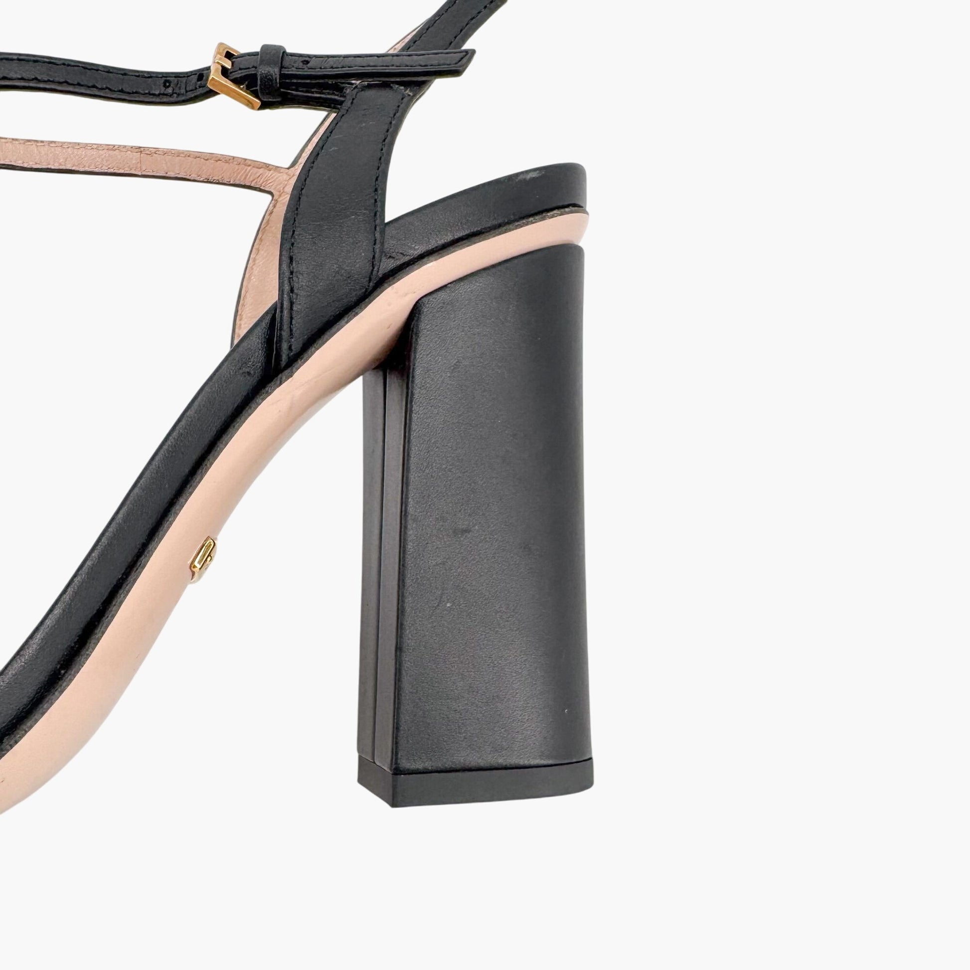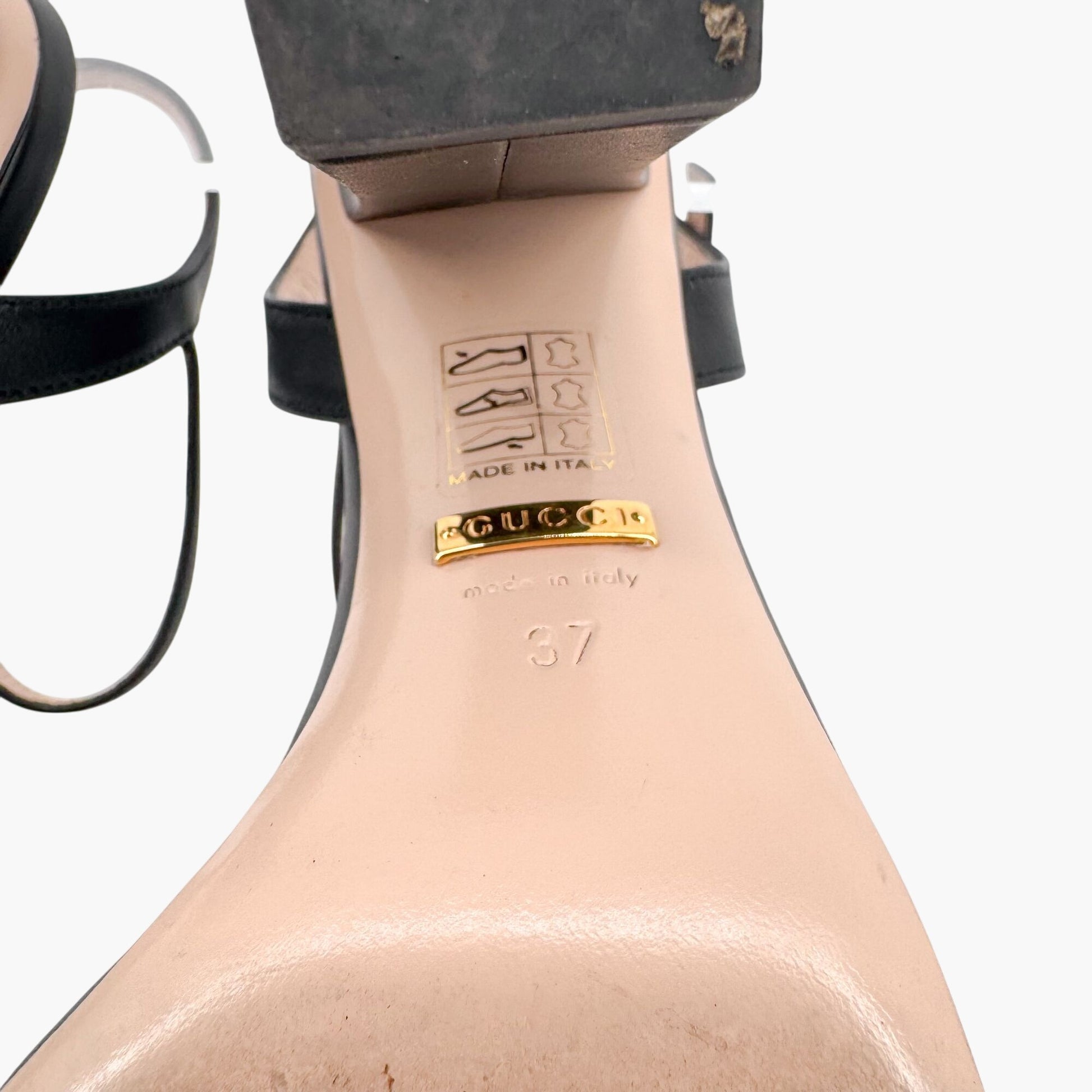 Gucci Black Leather Marmont GG Block Heel Sandals Size 37