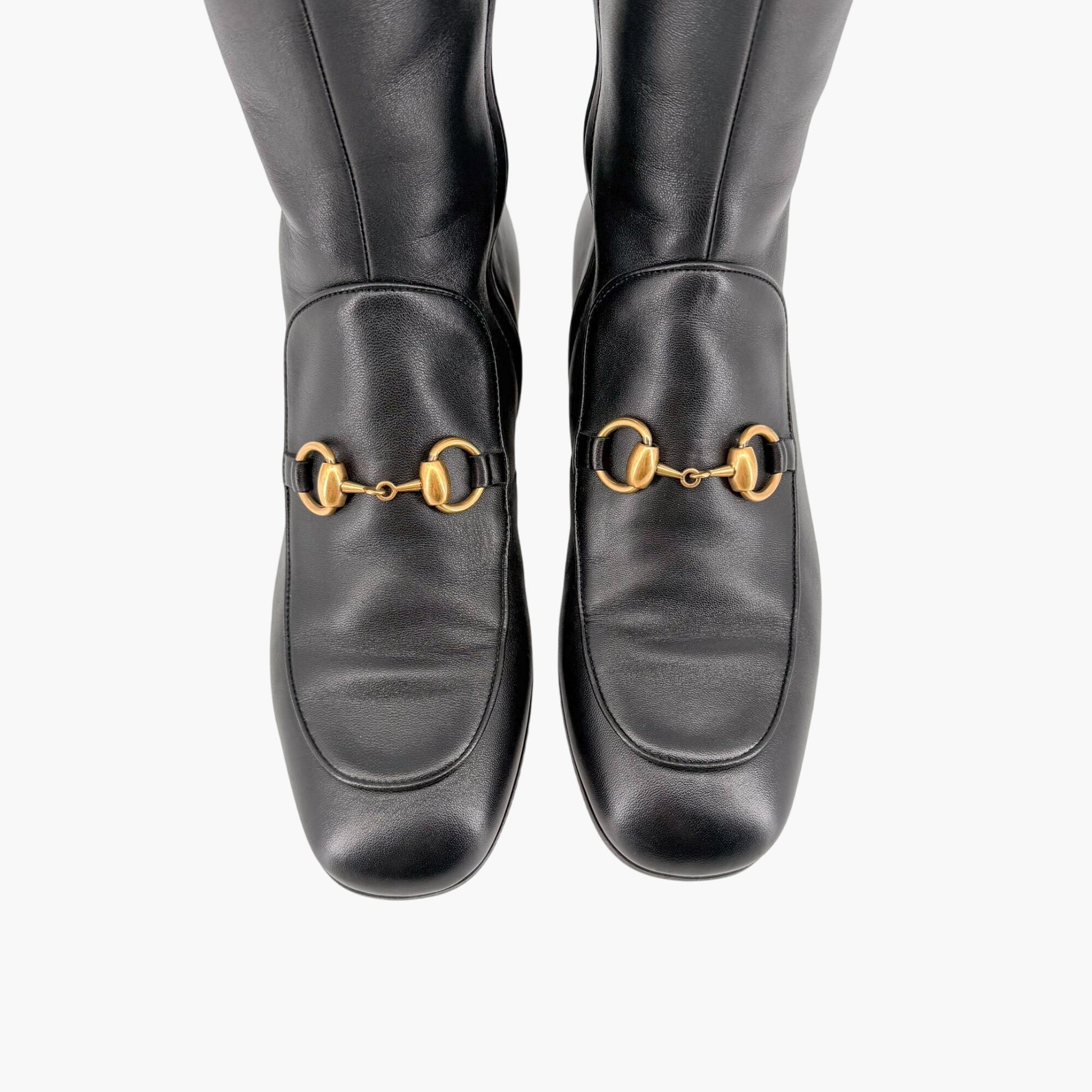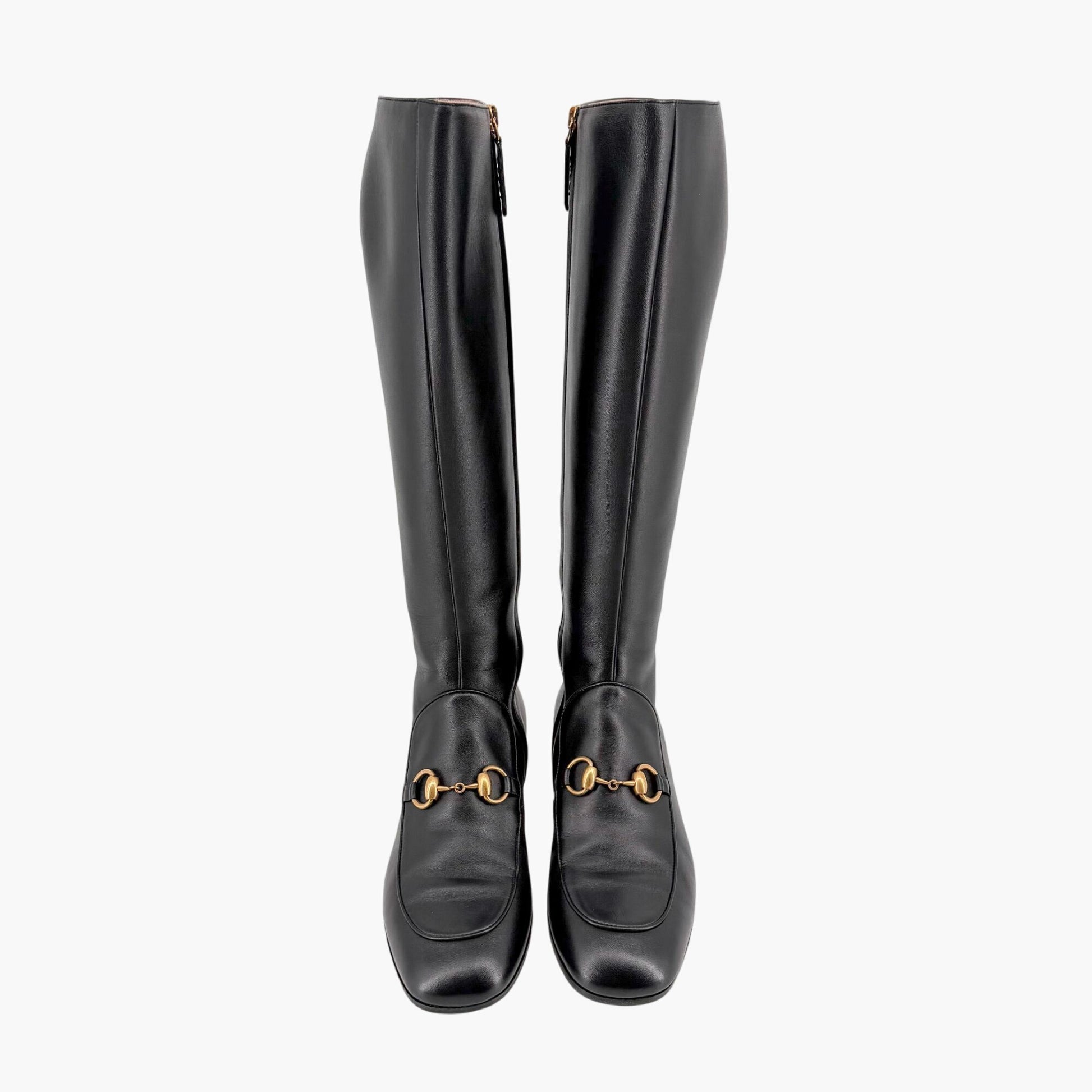 Gucci Black Leather Mister Horsebit Knee High Boots Size 37