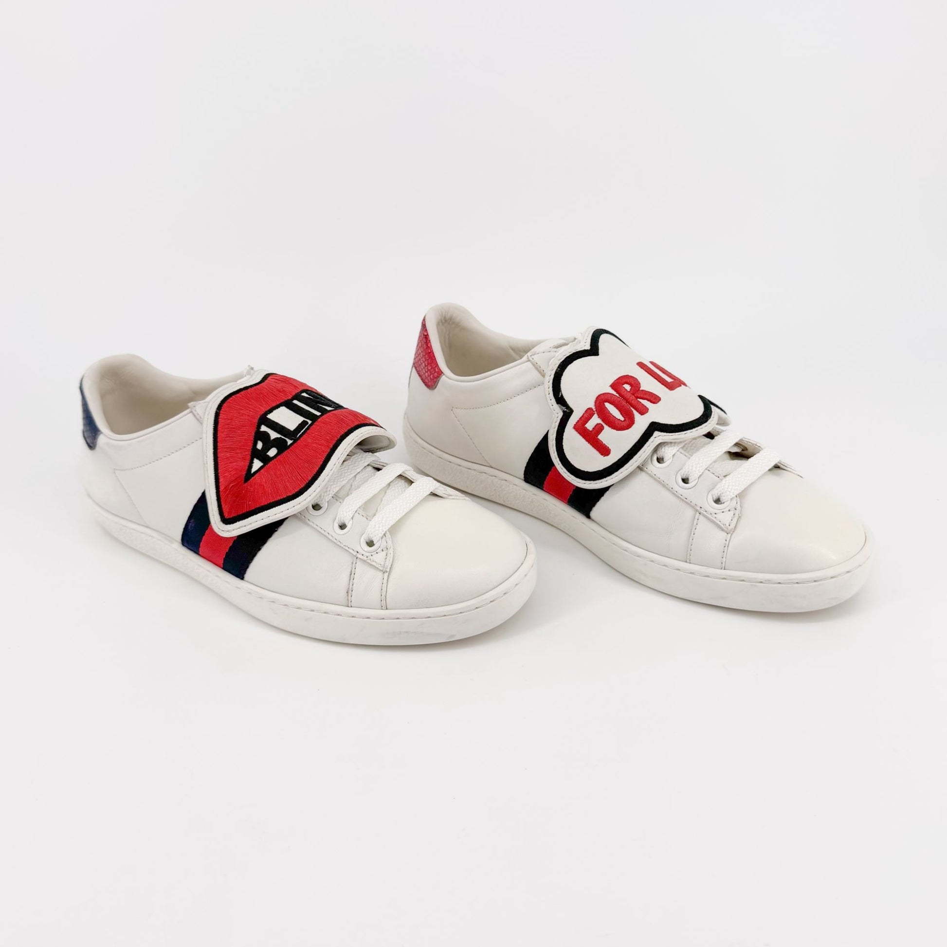 Gucci Blind for Love Ace Sneakers Size 37 US 7 White Removable Patch Low Top