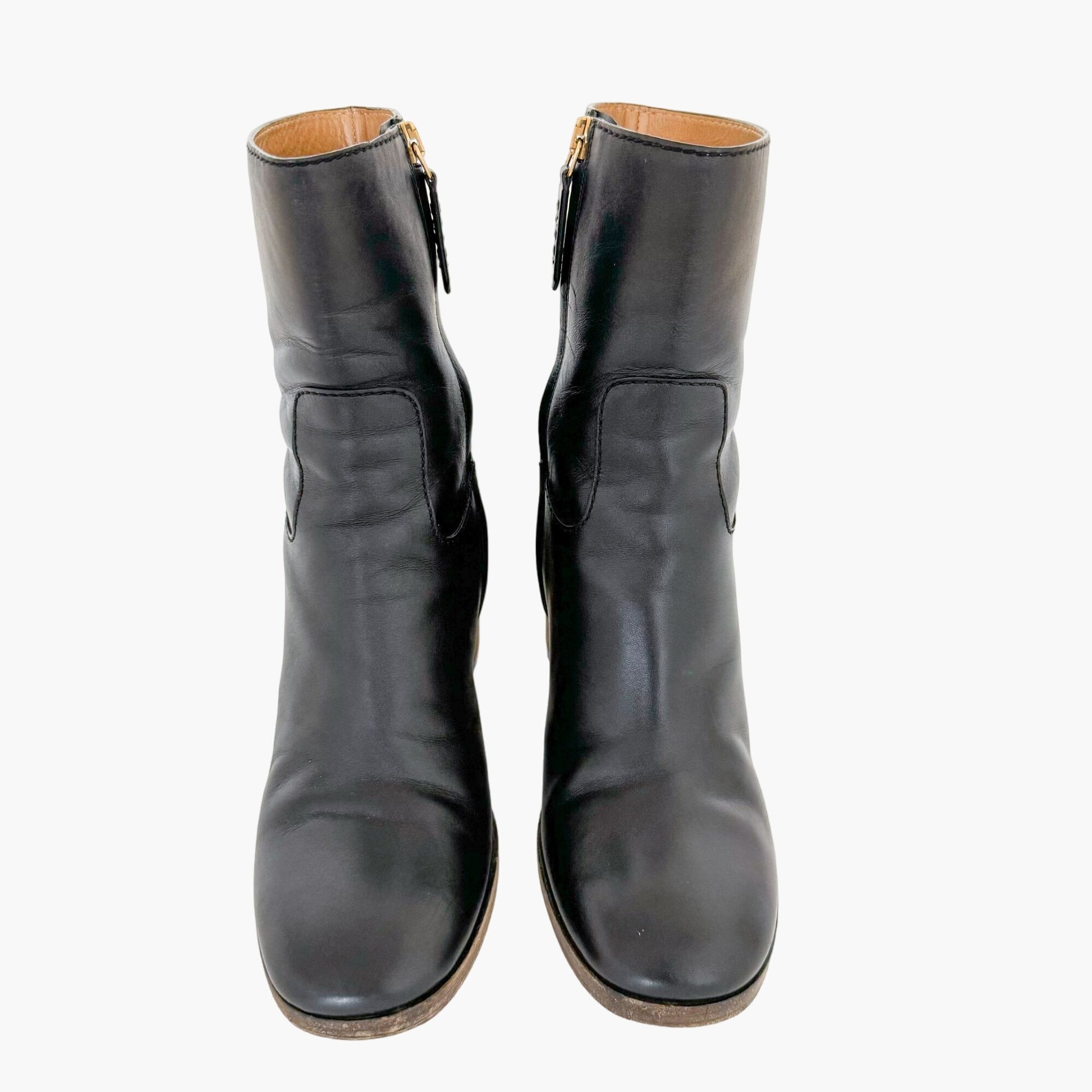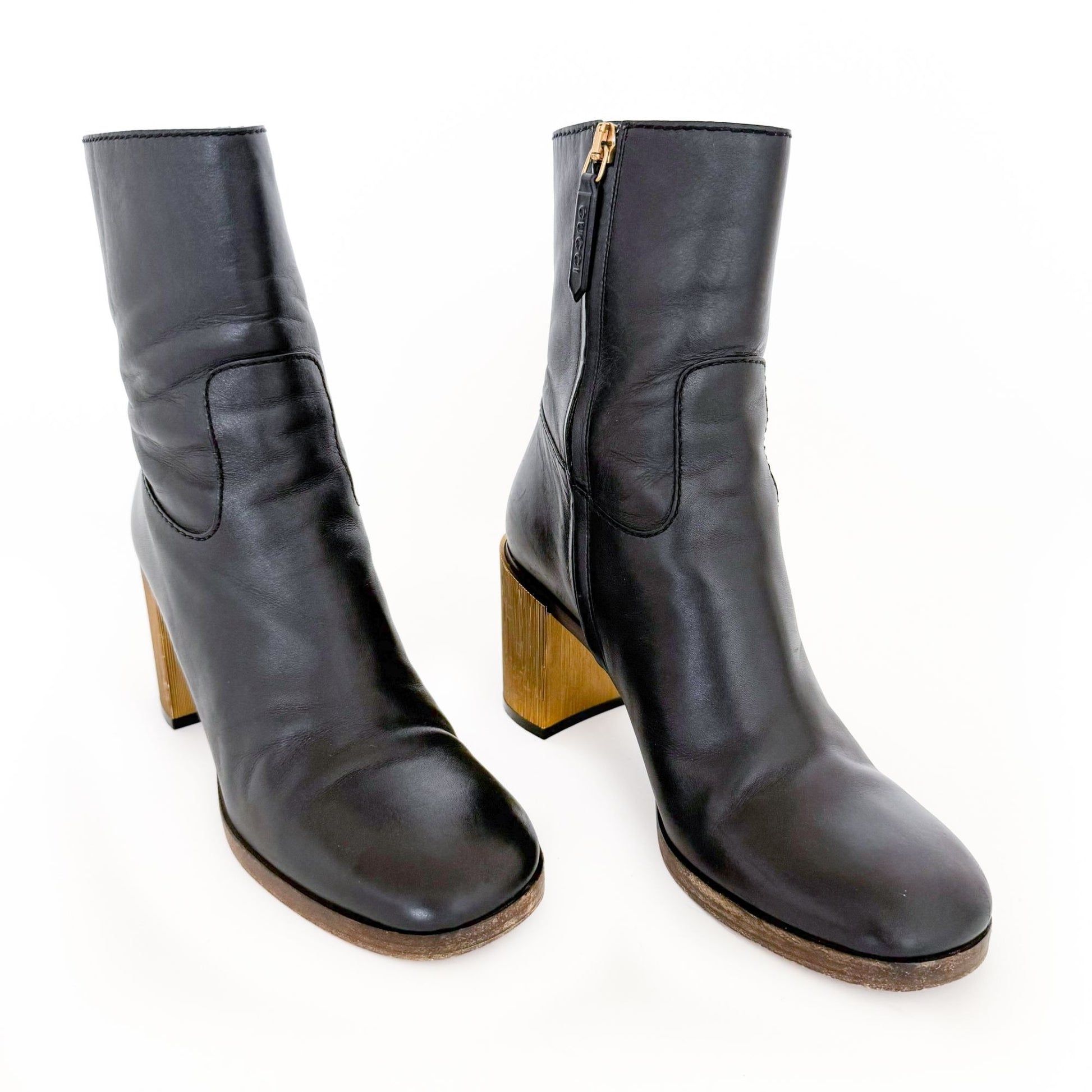 Gucci Block Heel Ankle Boots EU 36.5 US 6.5 Black Leather Metallic Gold Mid Heel
