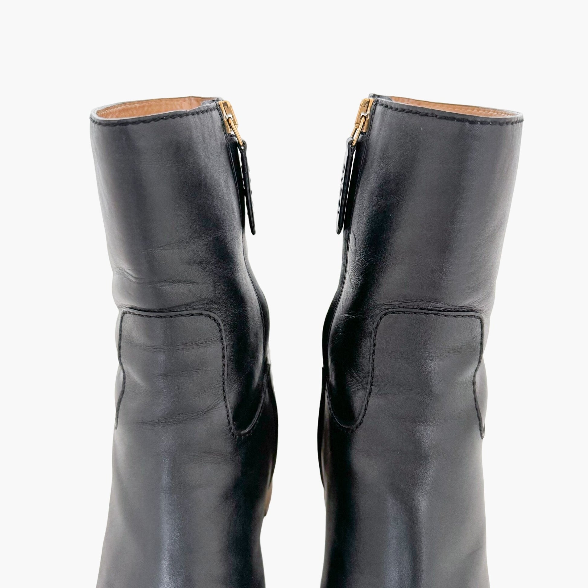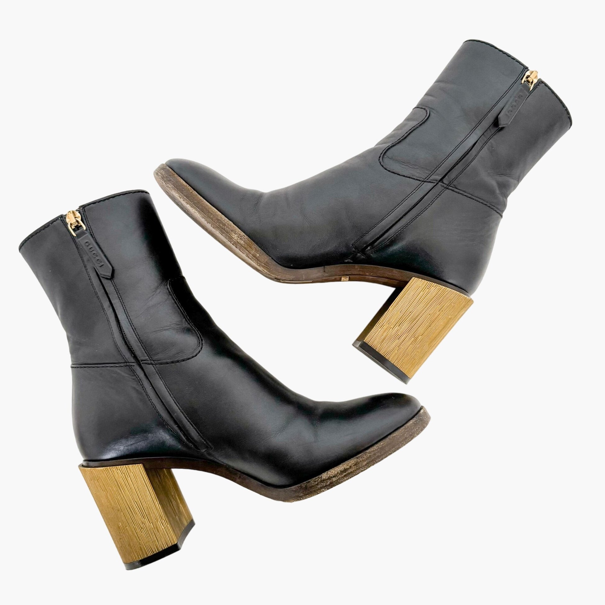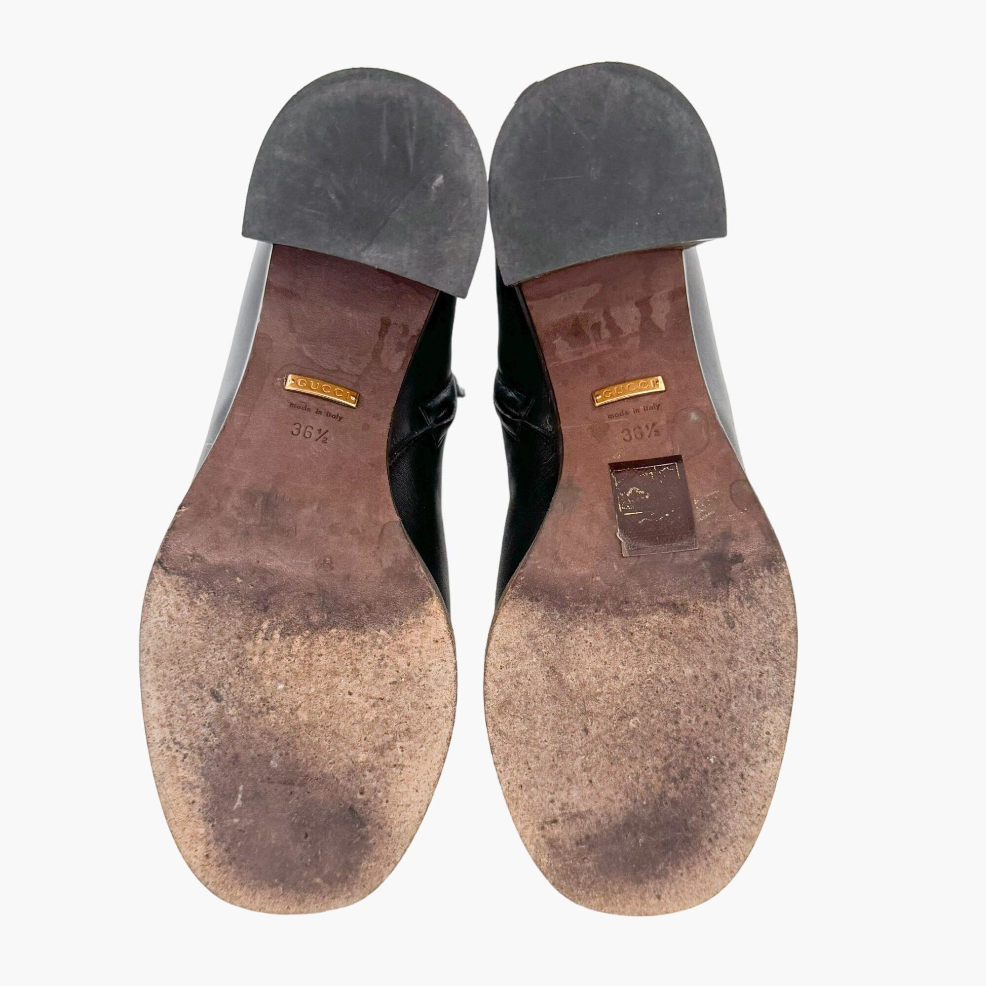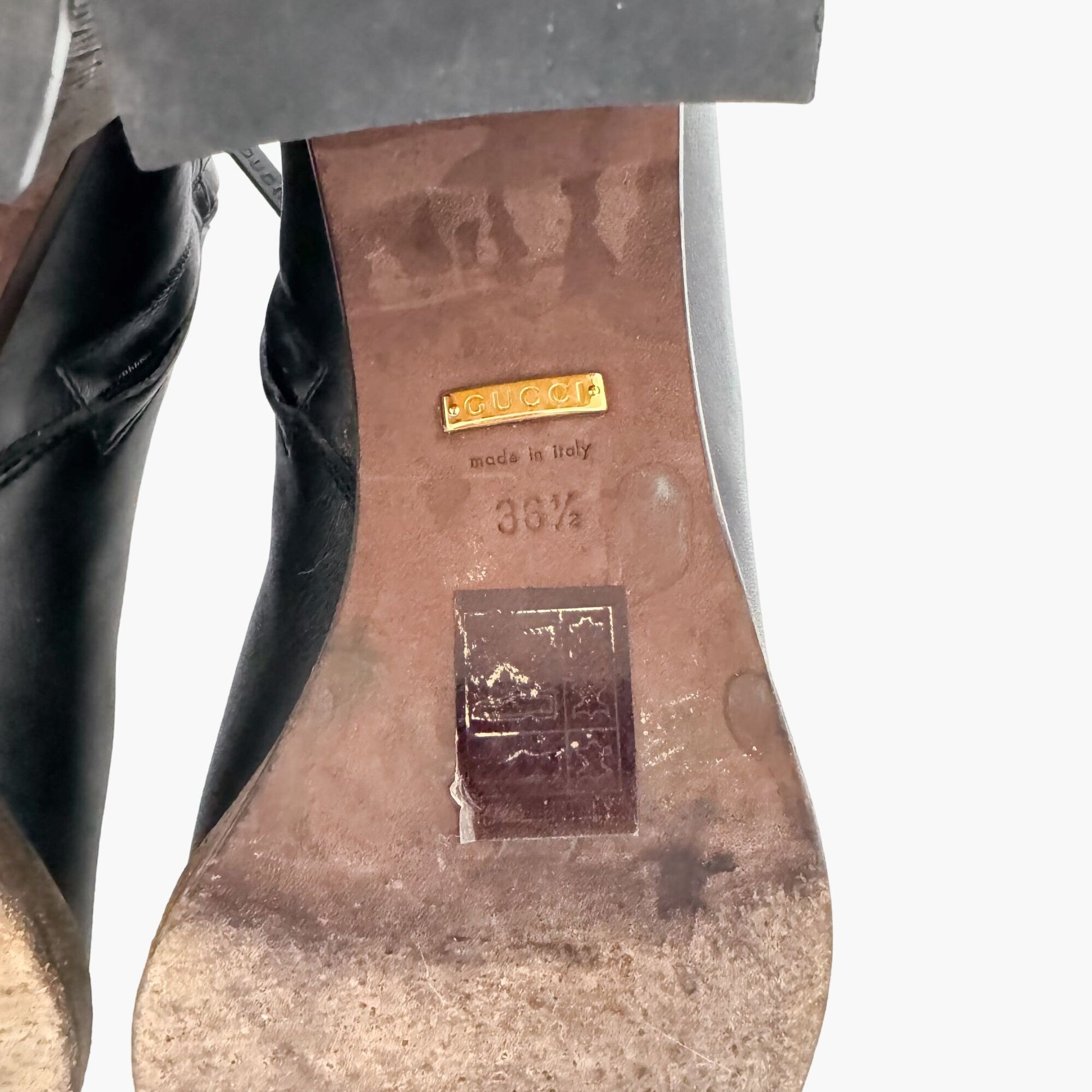 Gucci Block Heel Ankle Boots in Black Leather Size 36.5