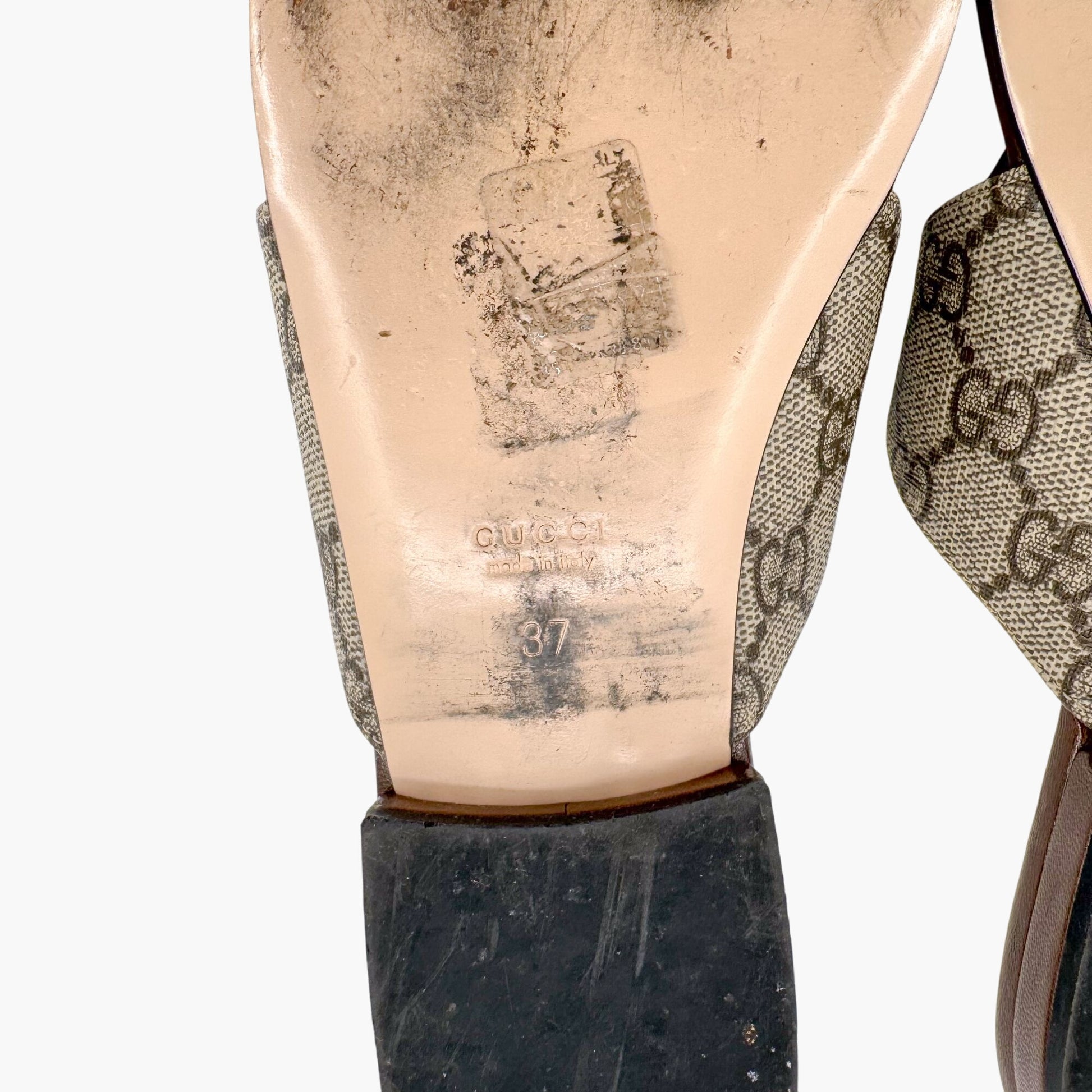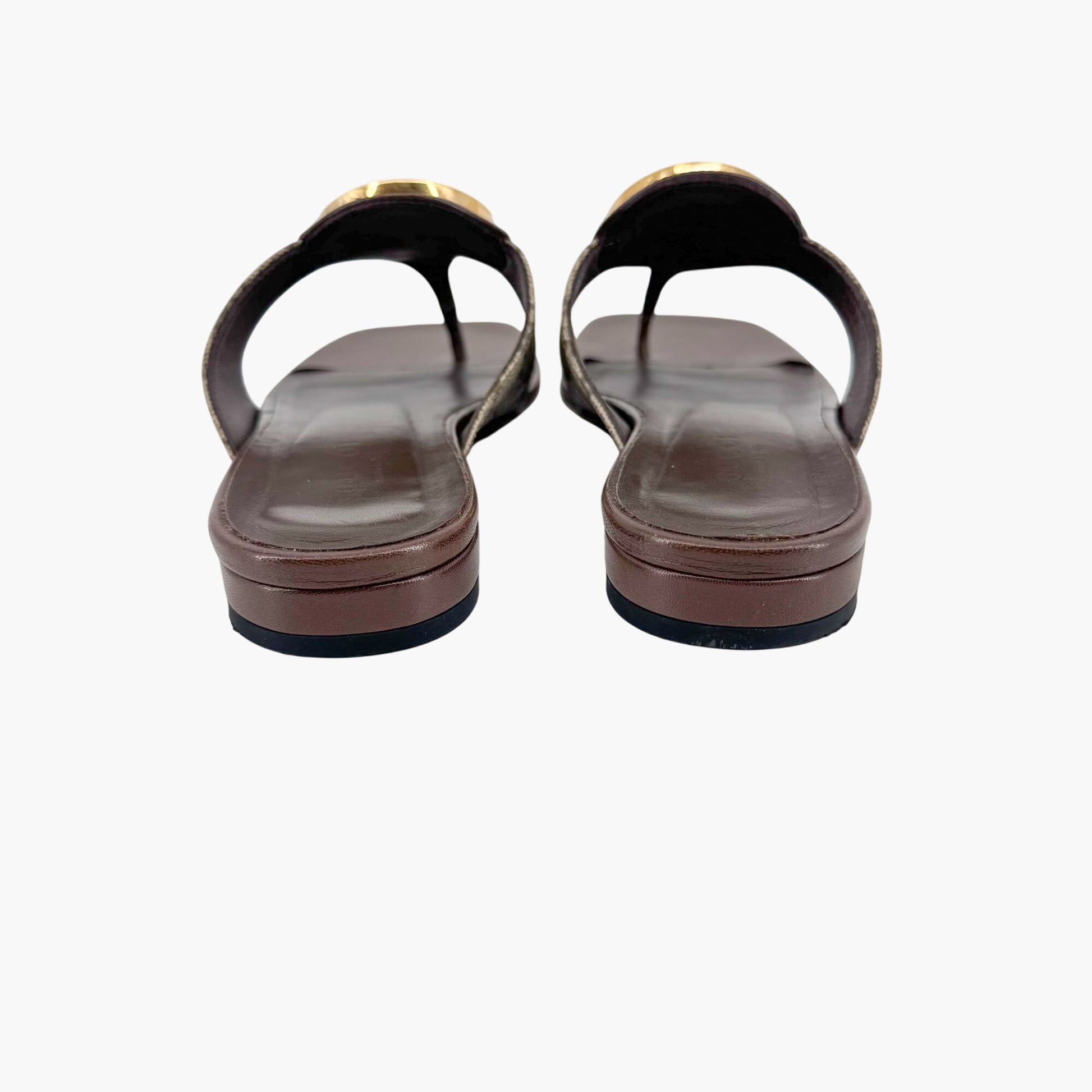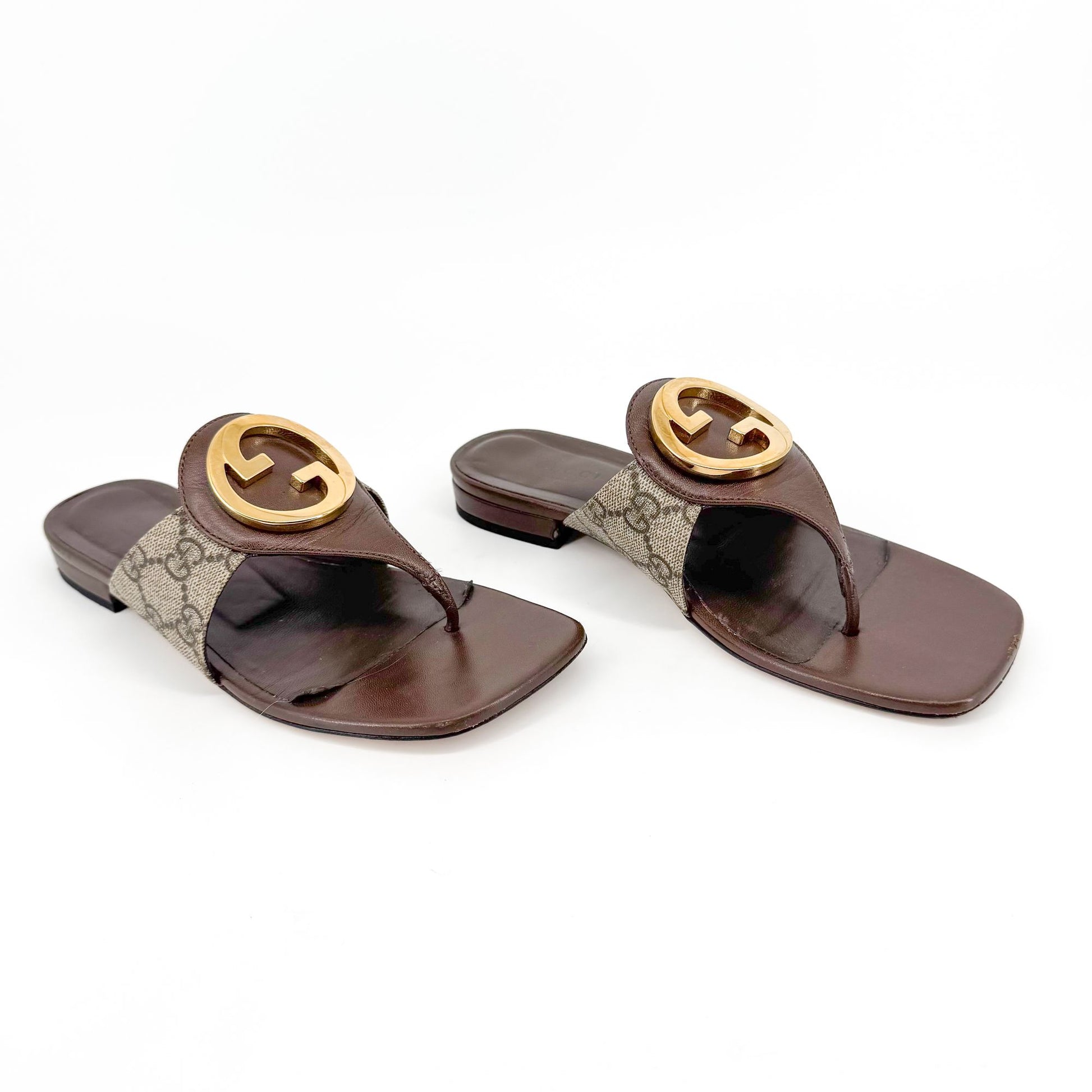 Gucci Blondie GG Canvas Thong Sandals in Beige & Brown – Size 37