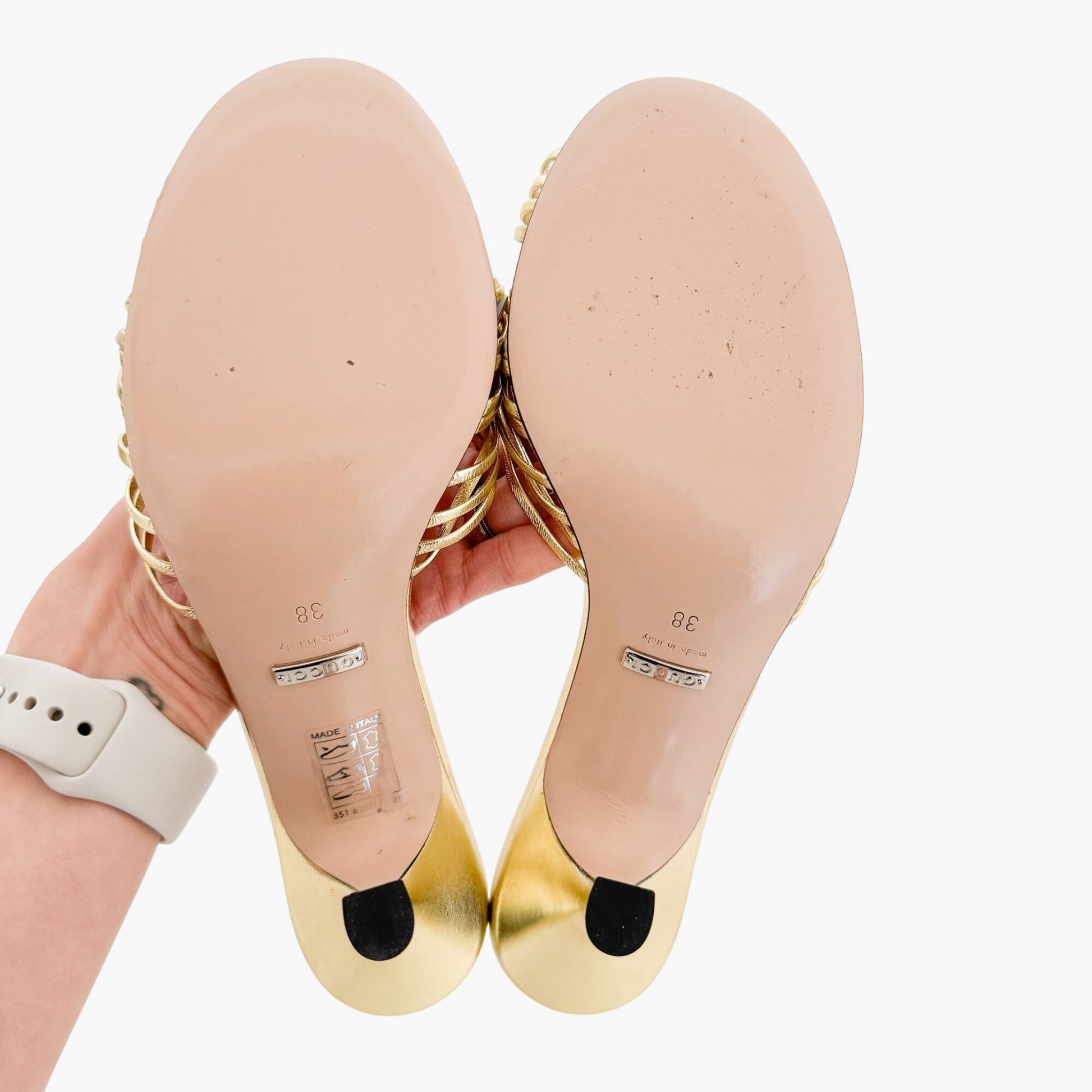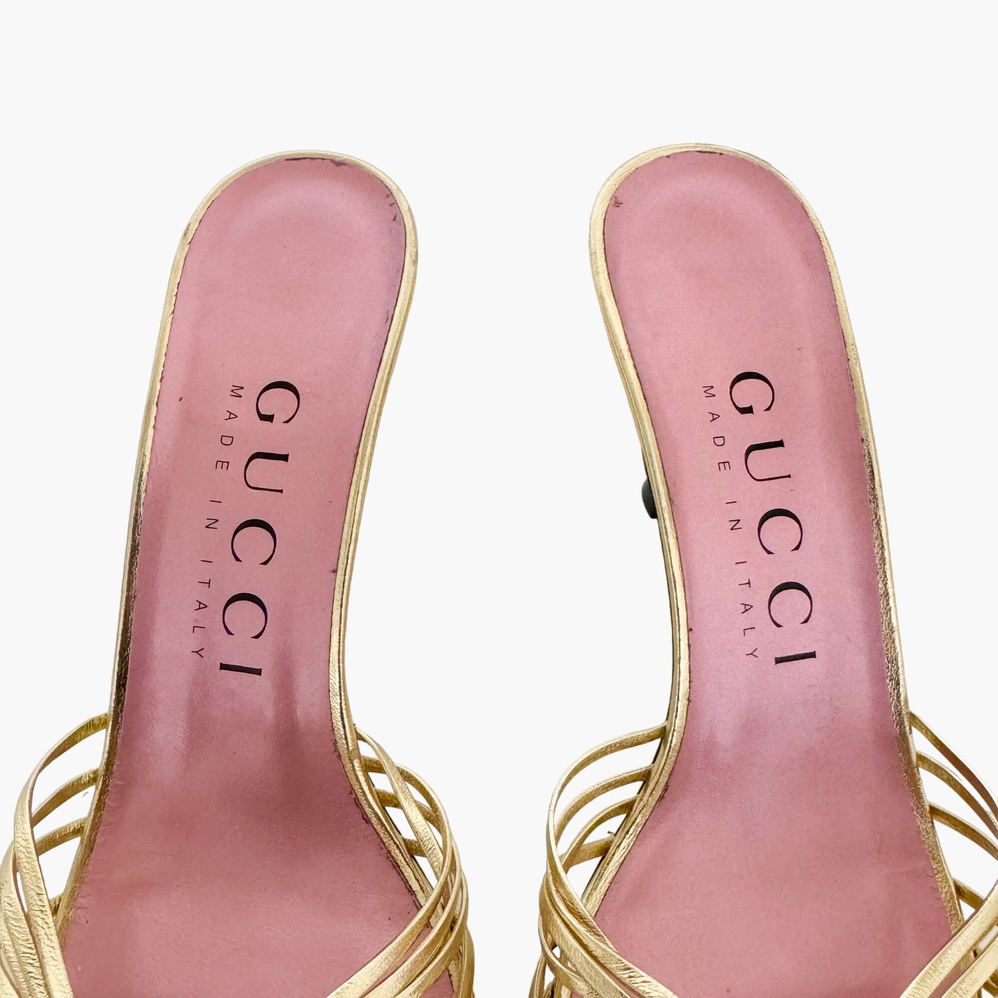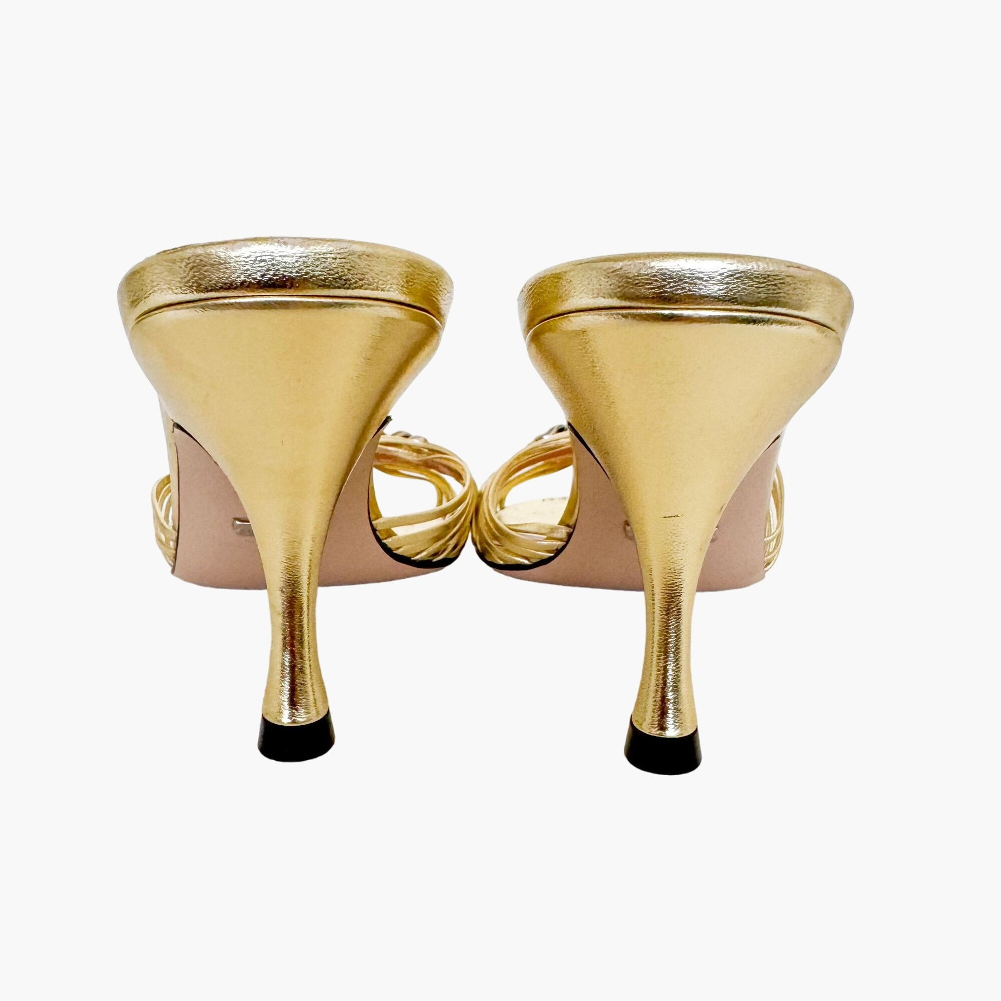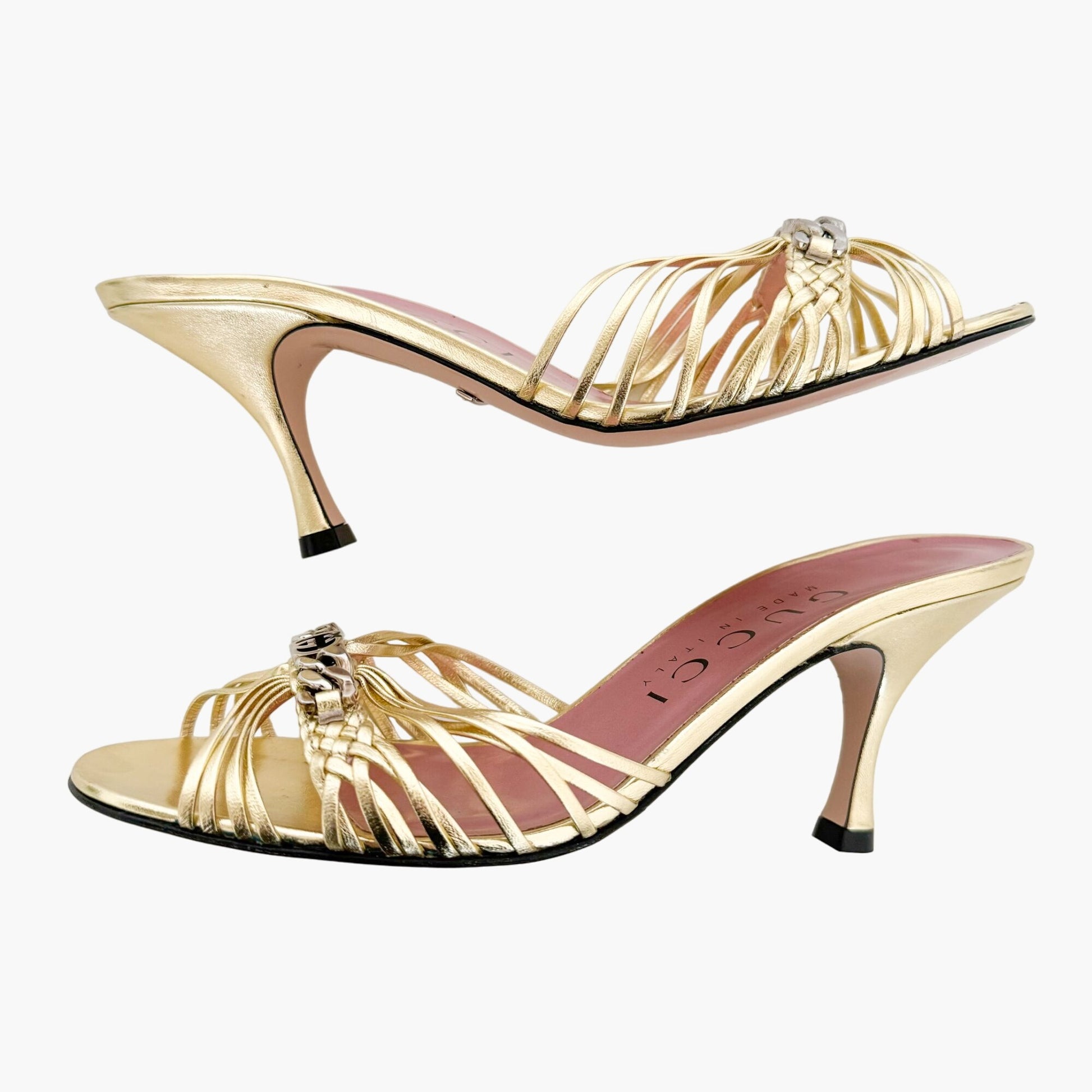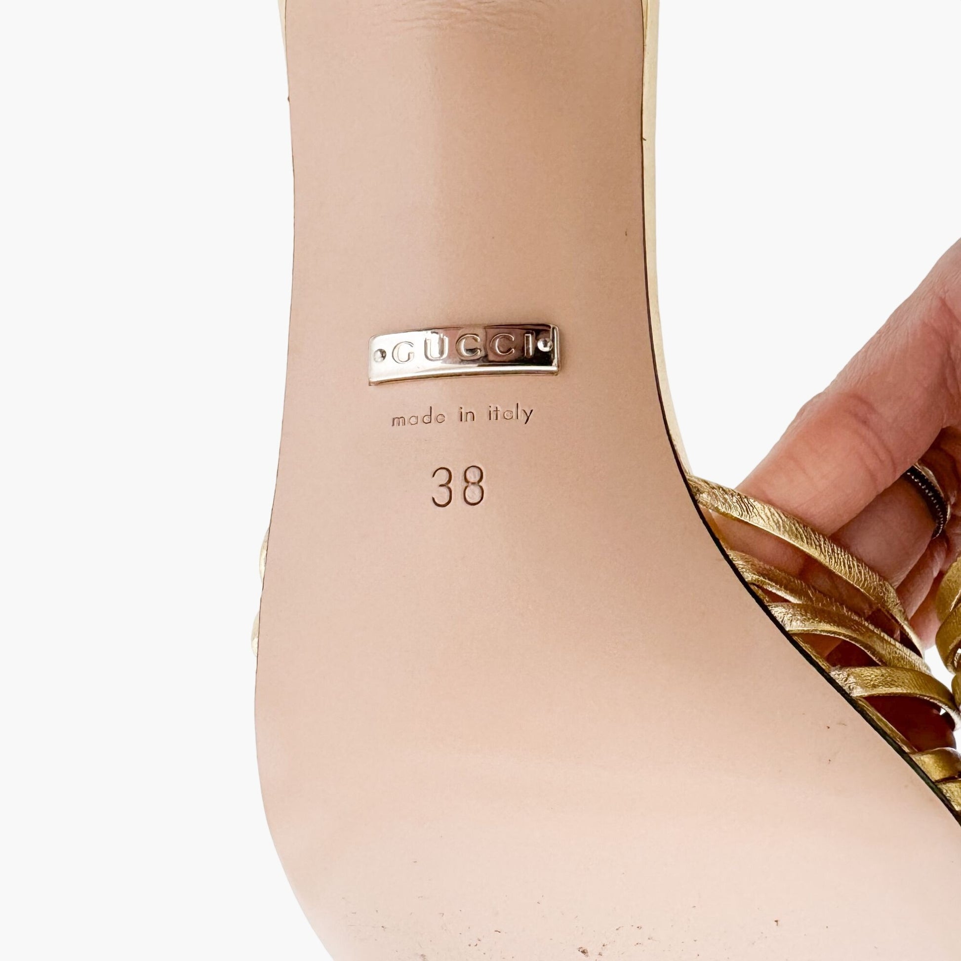 Gucci Interlocking G Braided Mules EU 38 US 8 Metallic Gold Mid High Heel Sandal