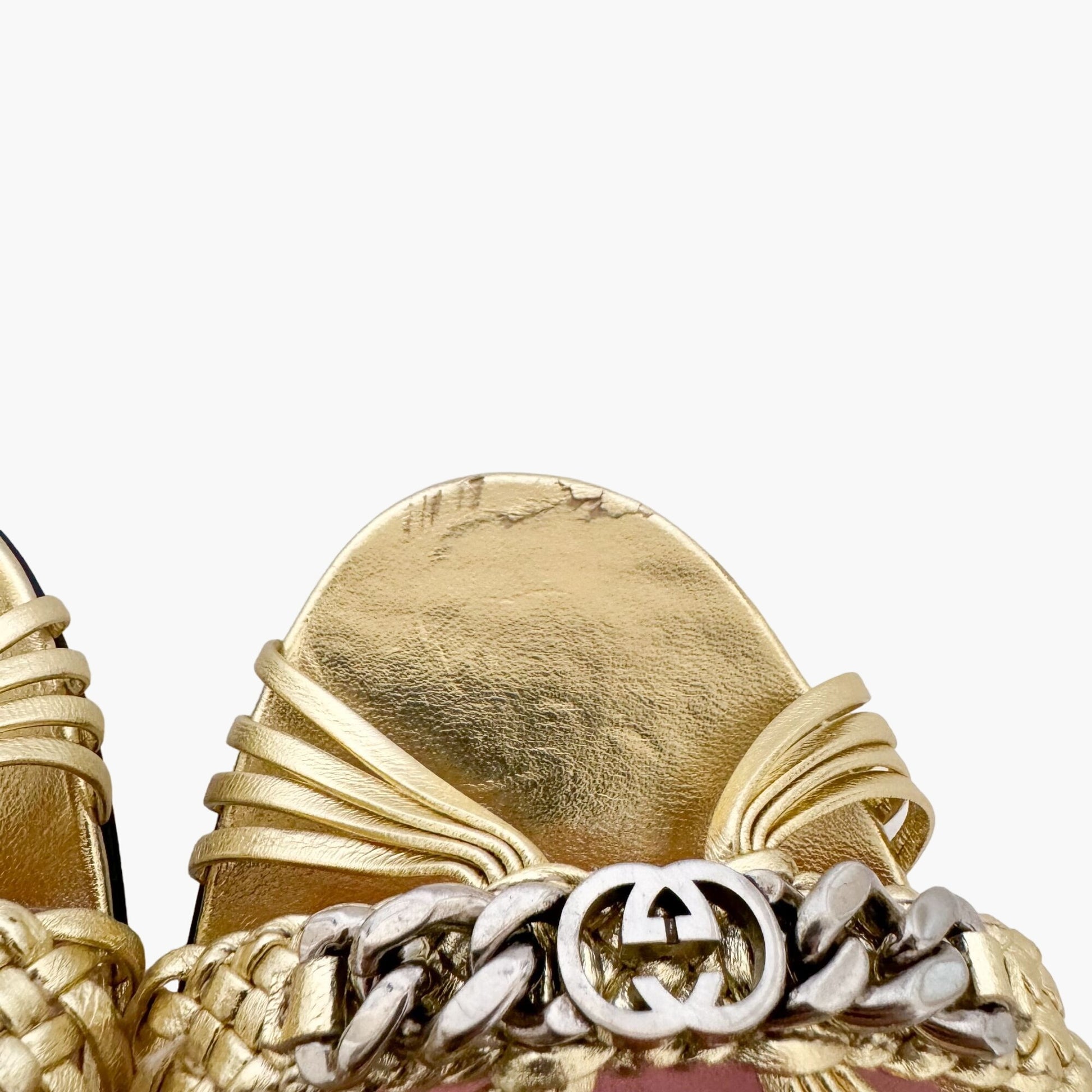 Gucci Braided Interlocking G Mules in Metallic Gold Leather Size 38