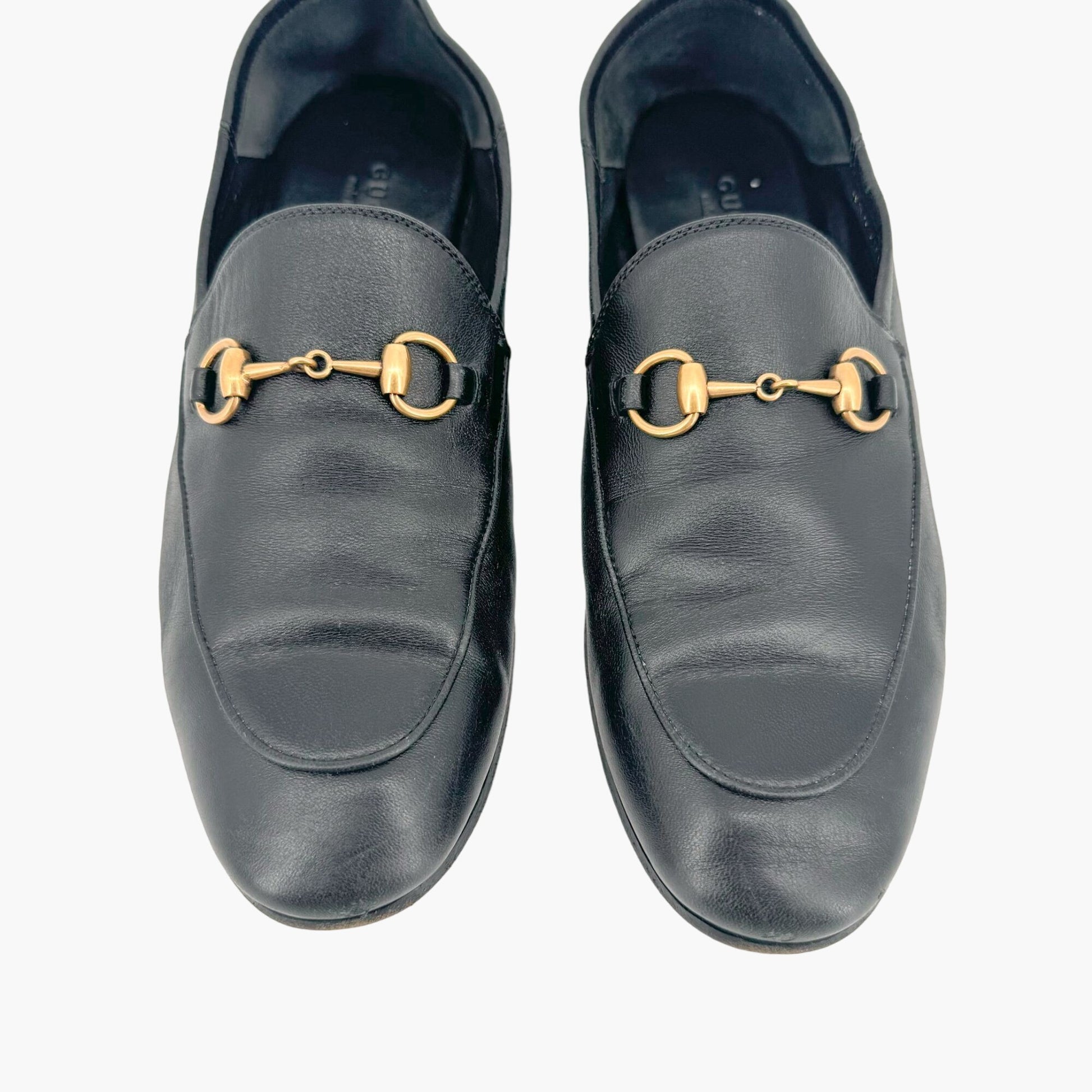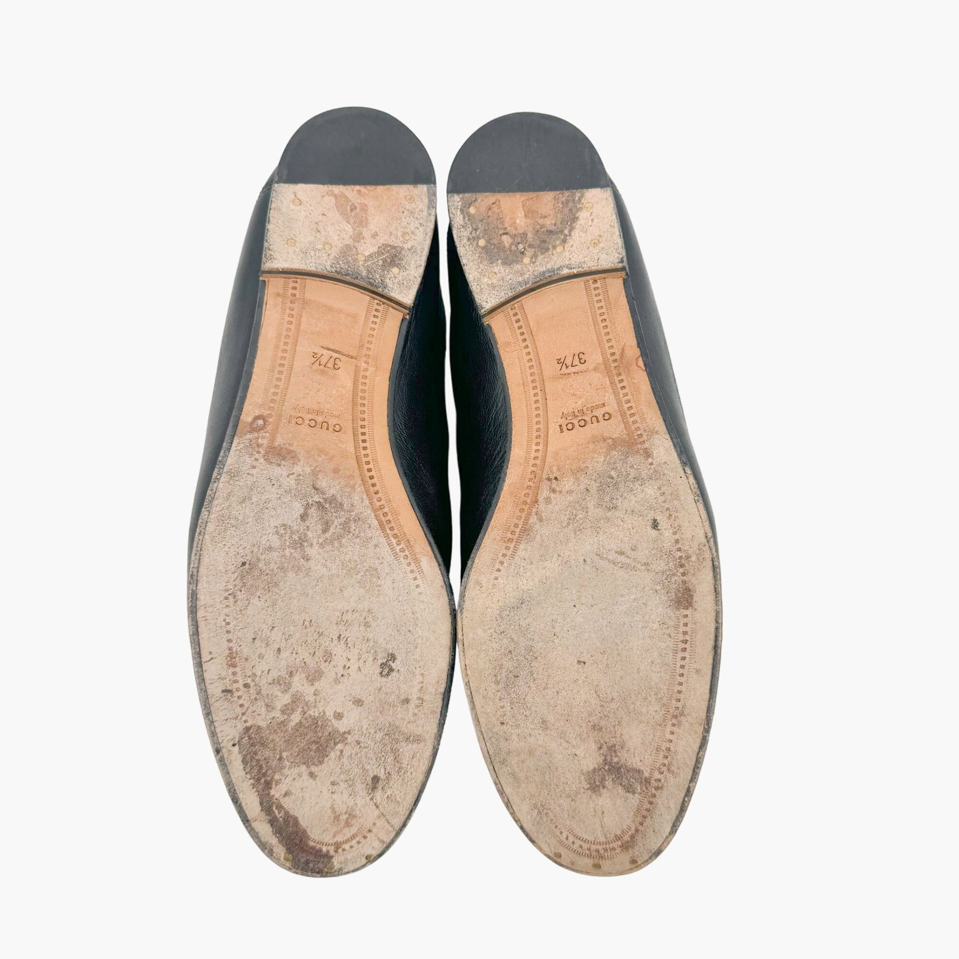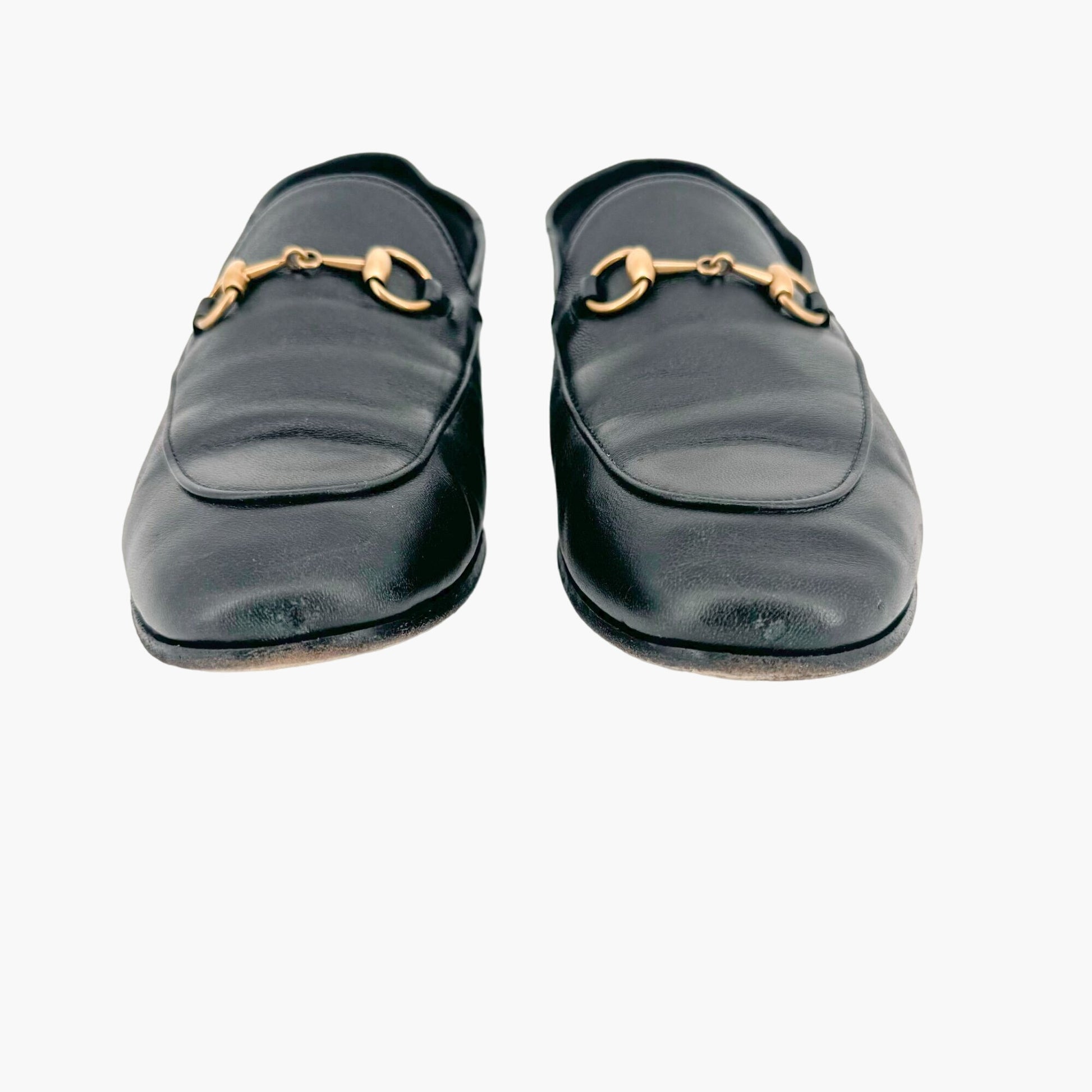 Gucci Brixton Horsebit Loafer EU 37.5 US 7.5 Black Leather Collapsible Heel Shoe