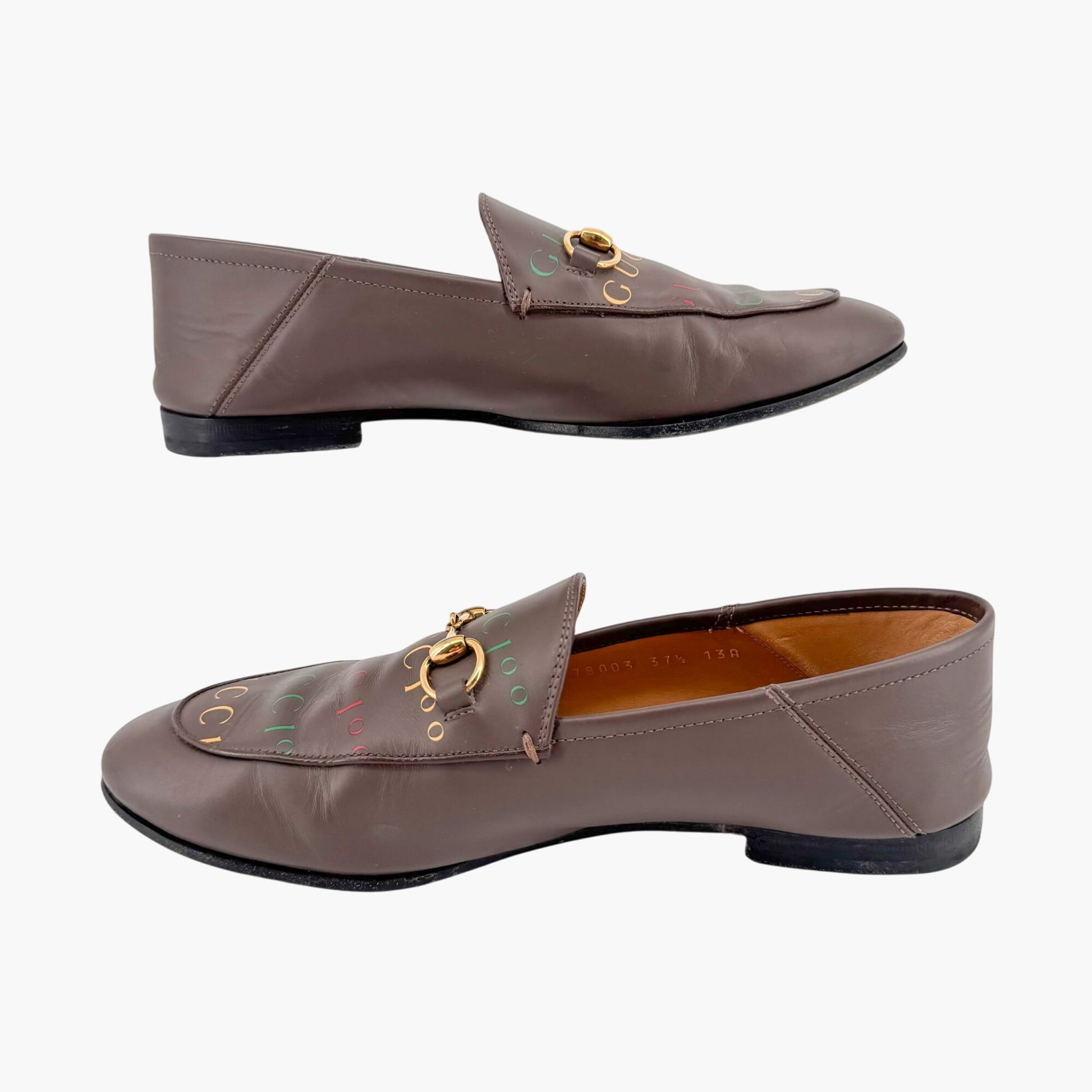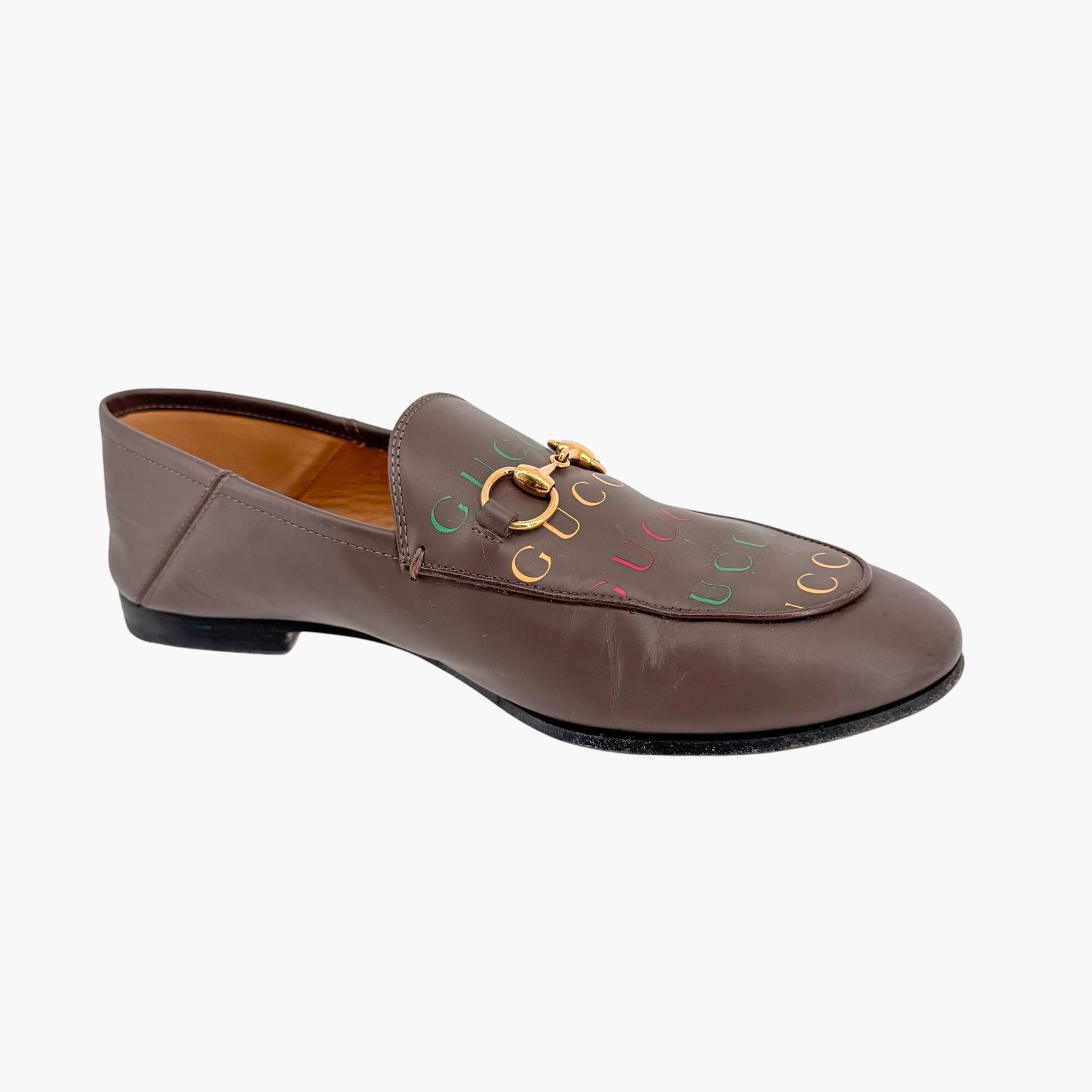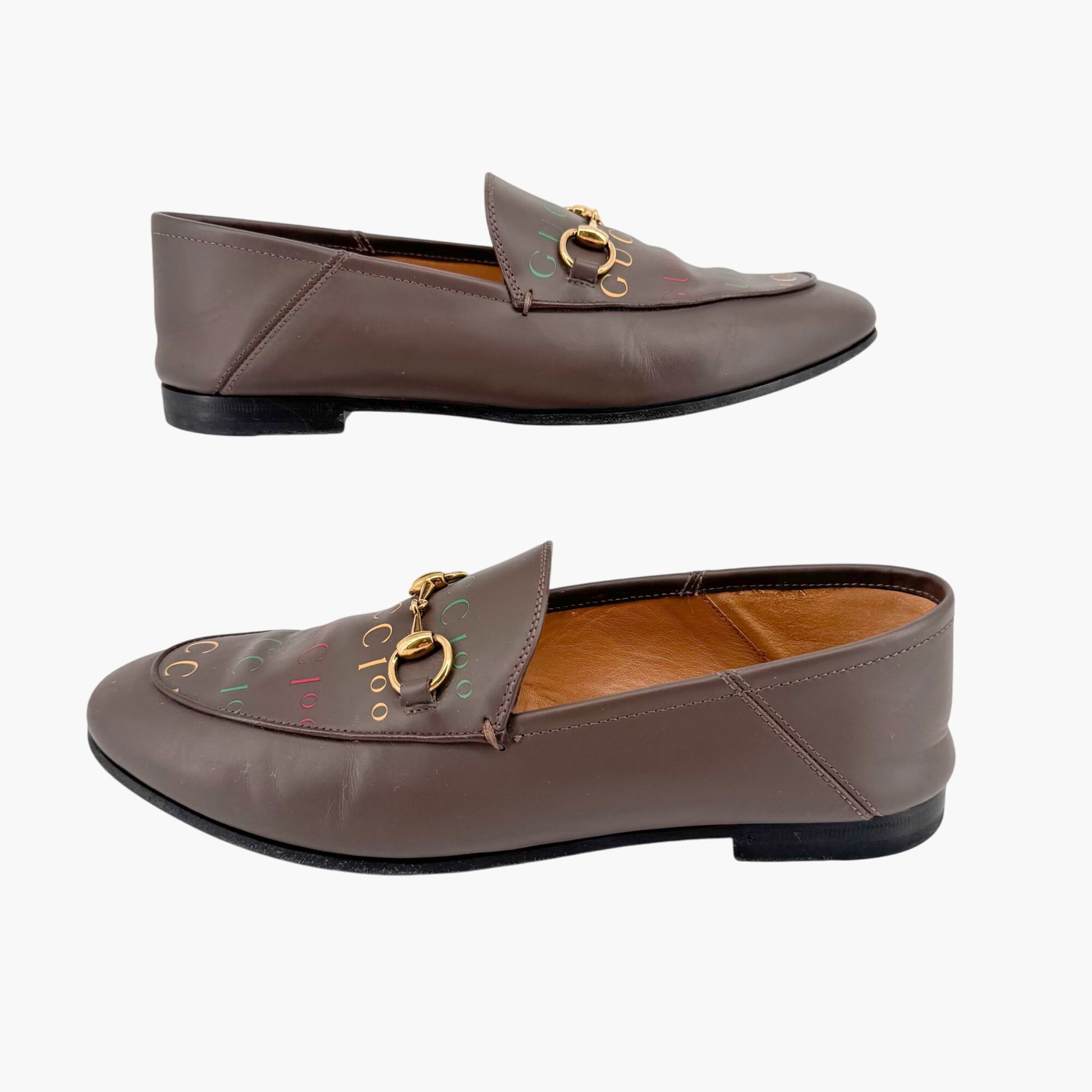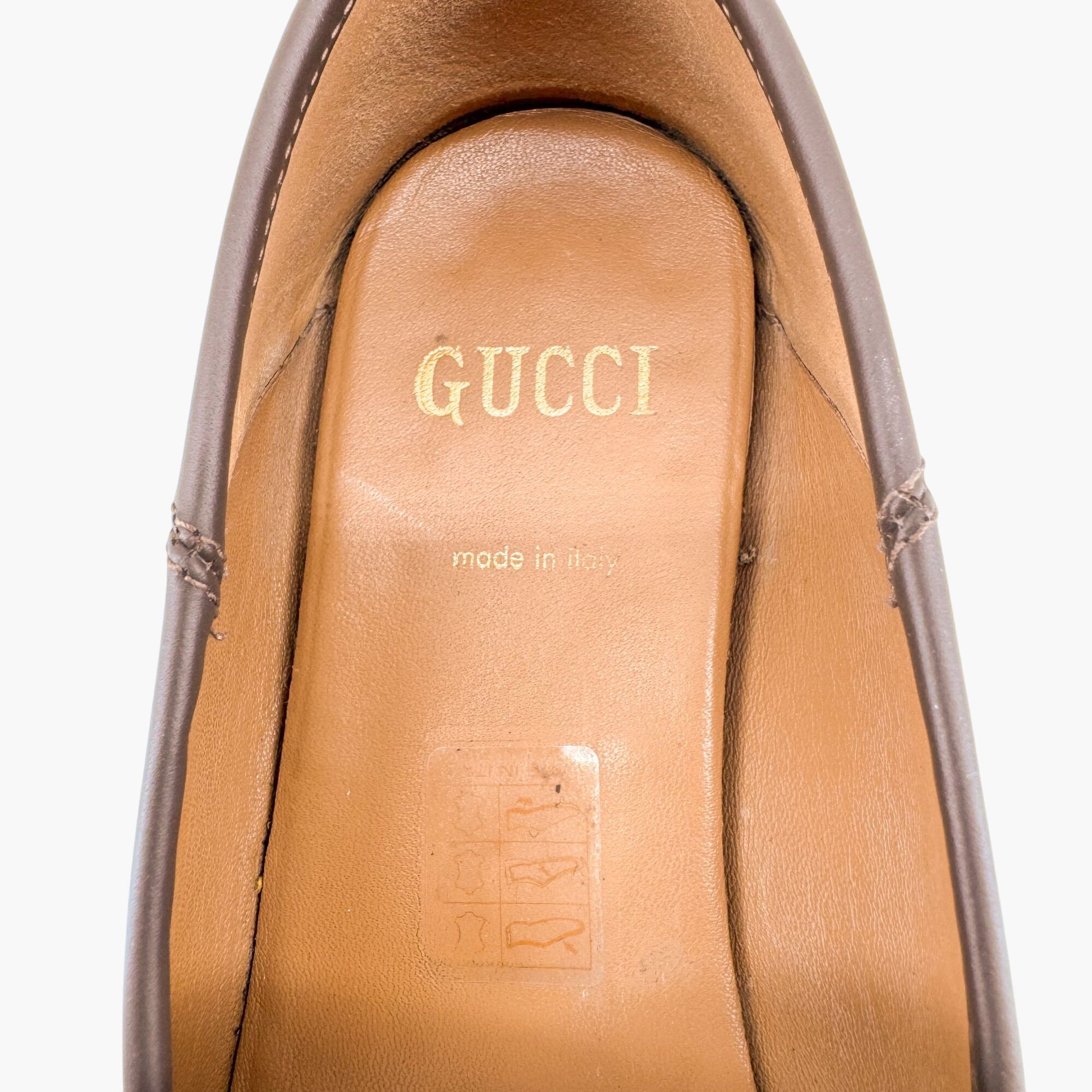 Gucci Brixton Horsebit Loafers in Brown Logo Leather – Size 37.5