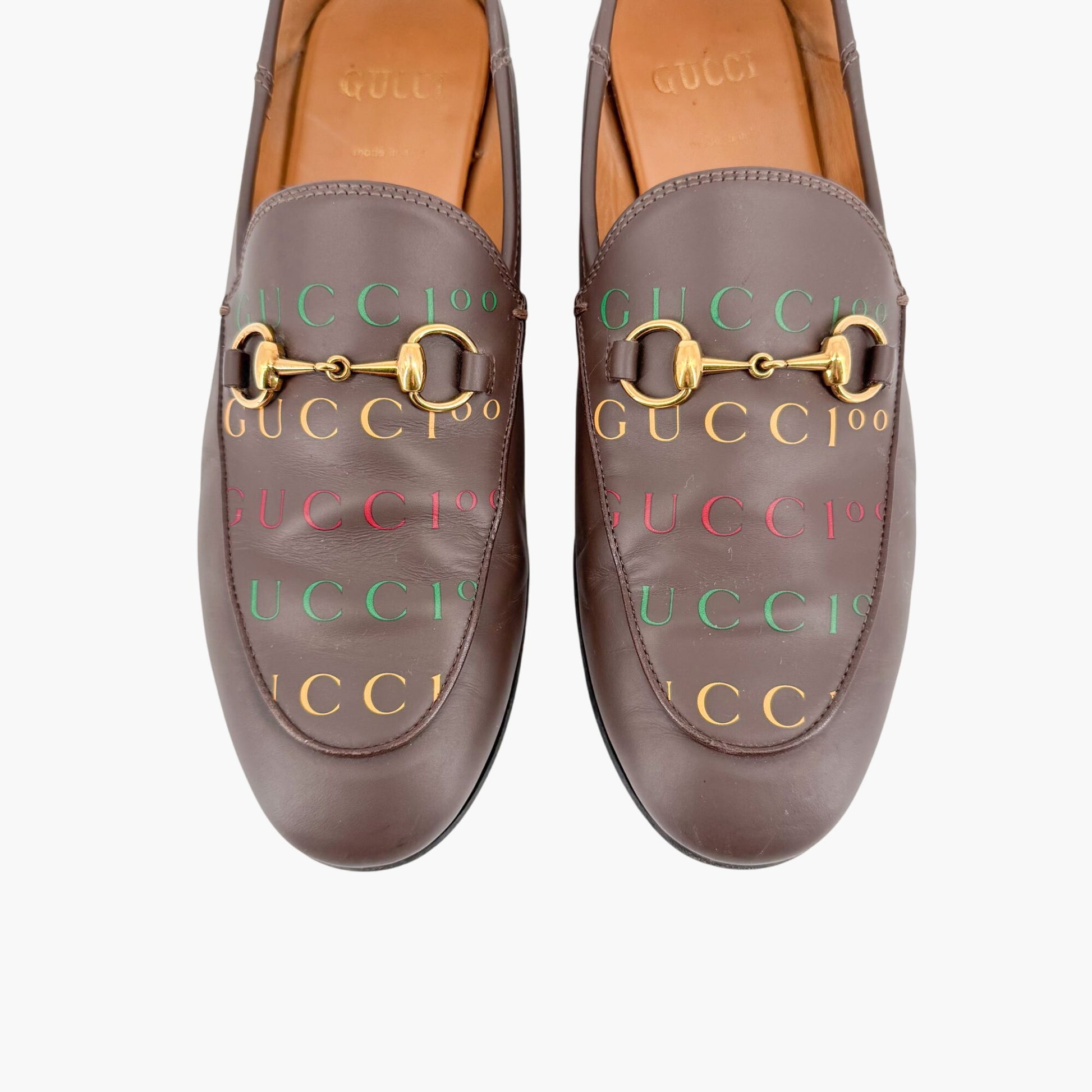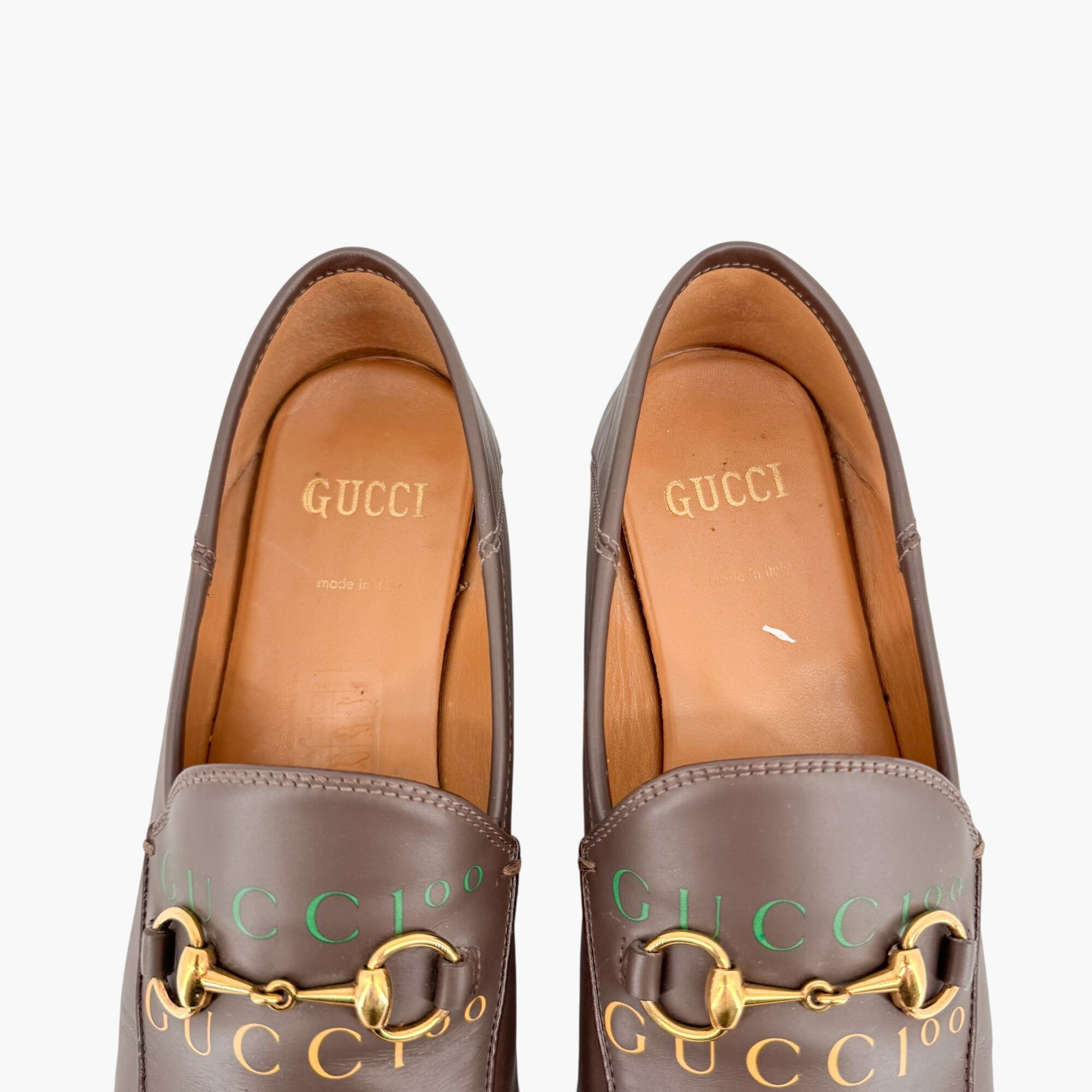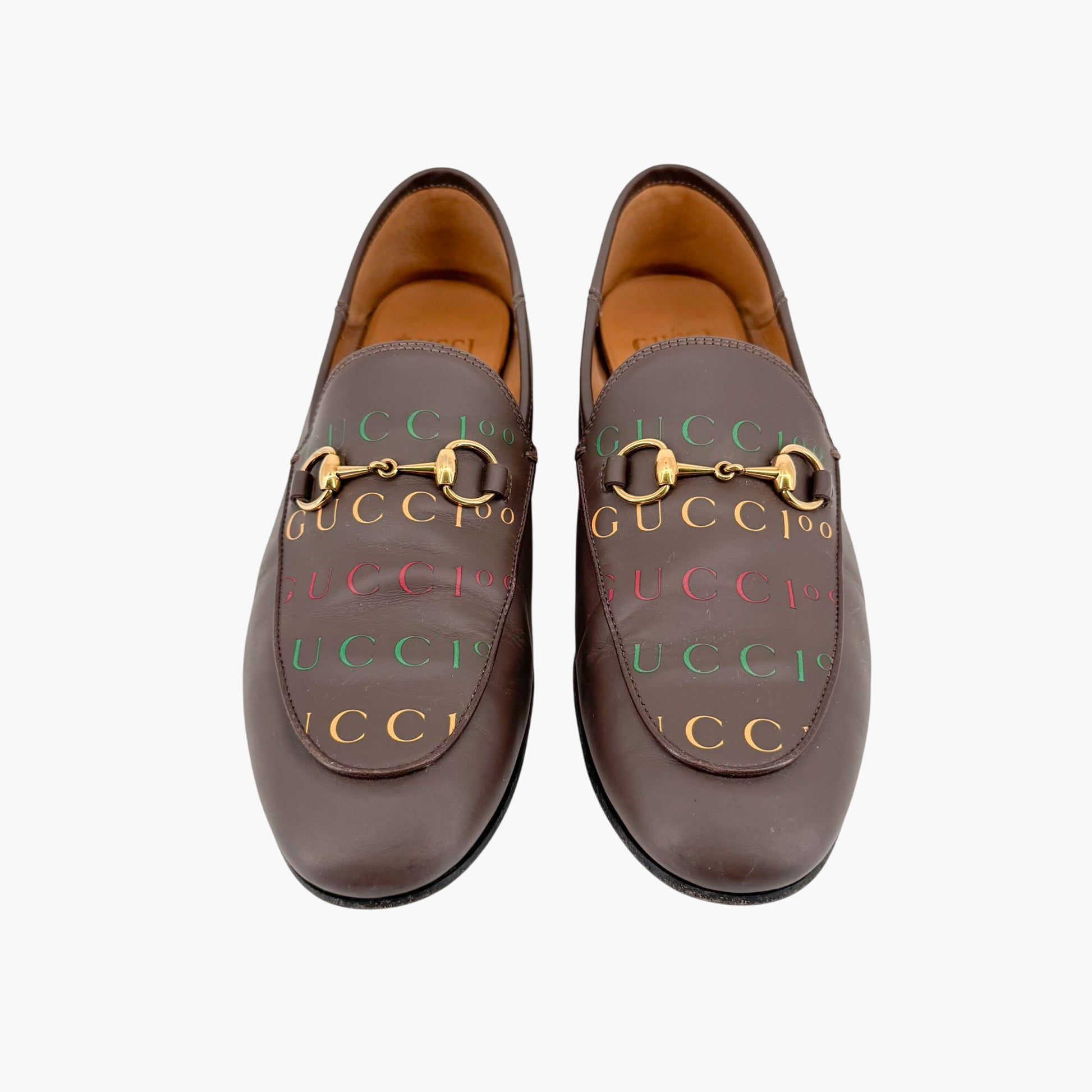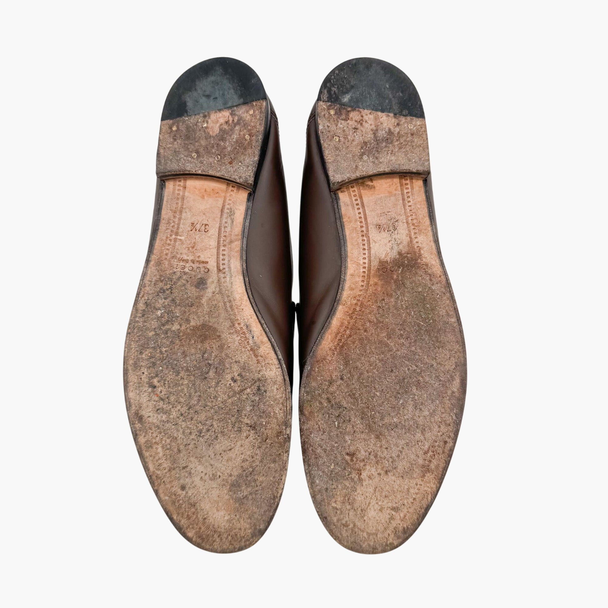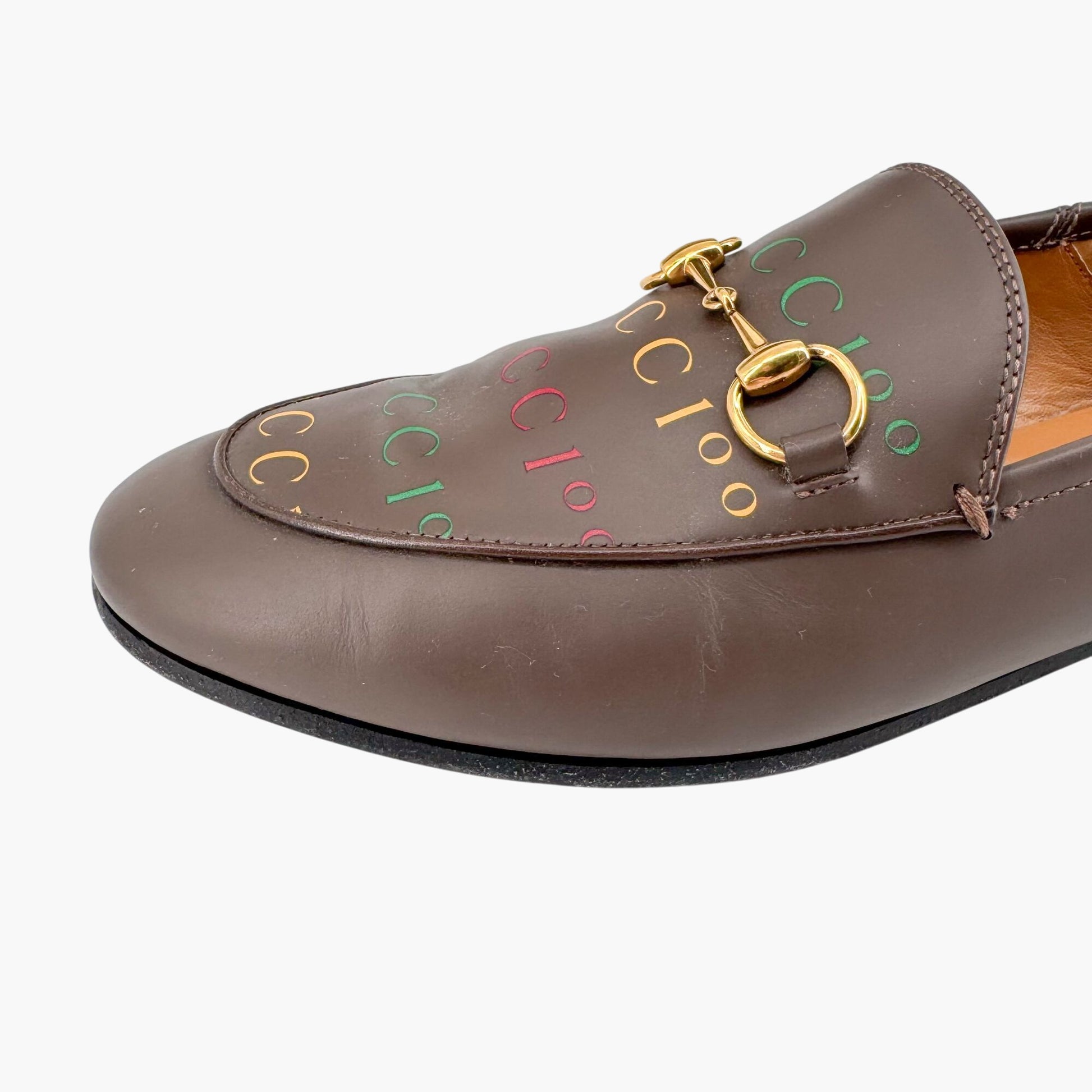Gucci Brixton Horsebit Loafers in Brown Logo Leather – Size 37.5