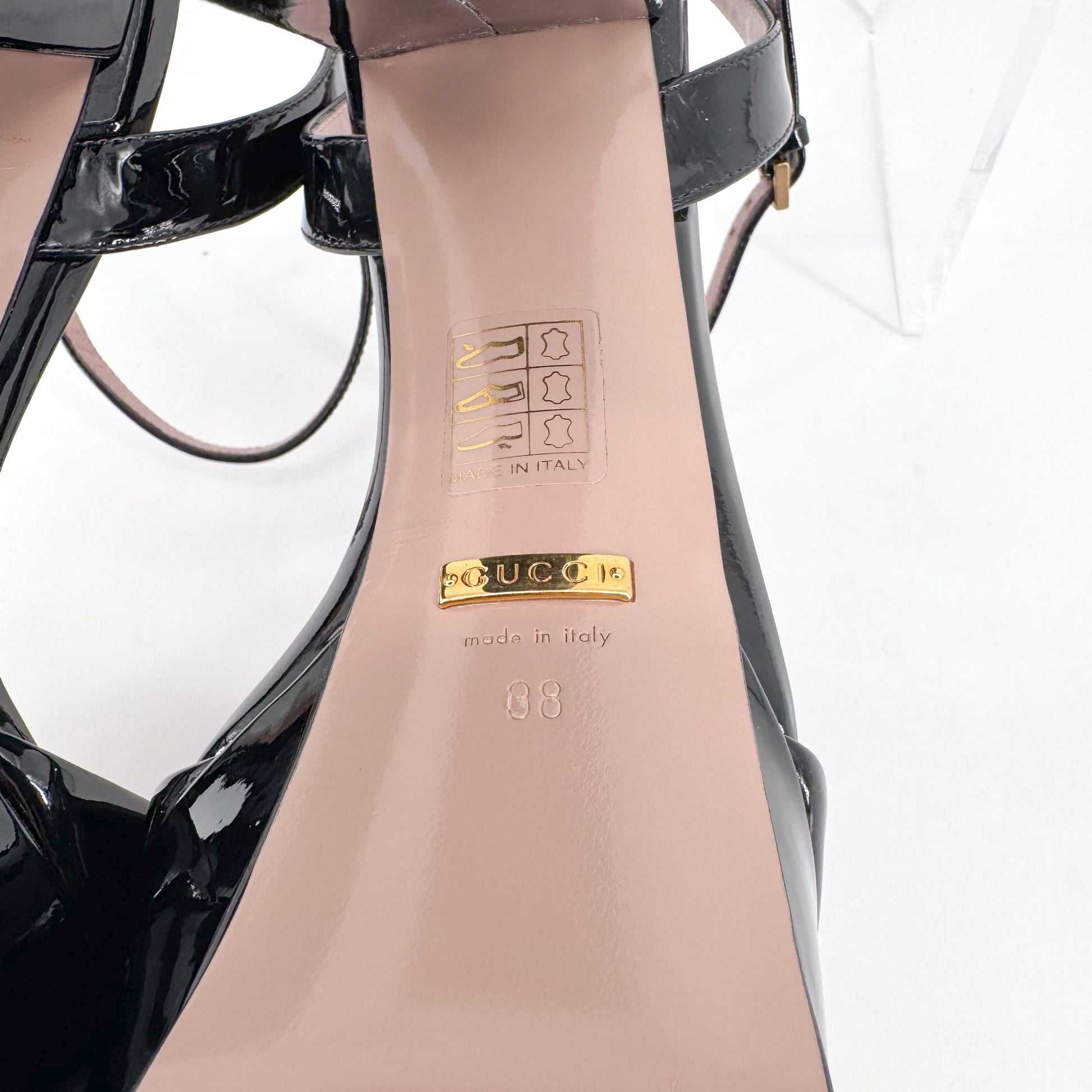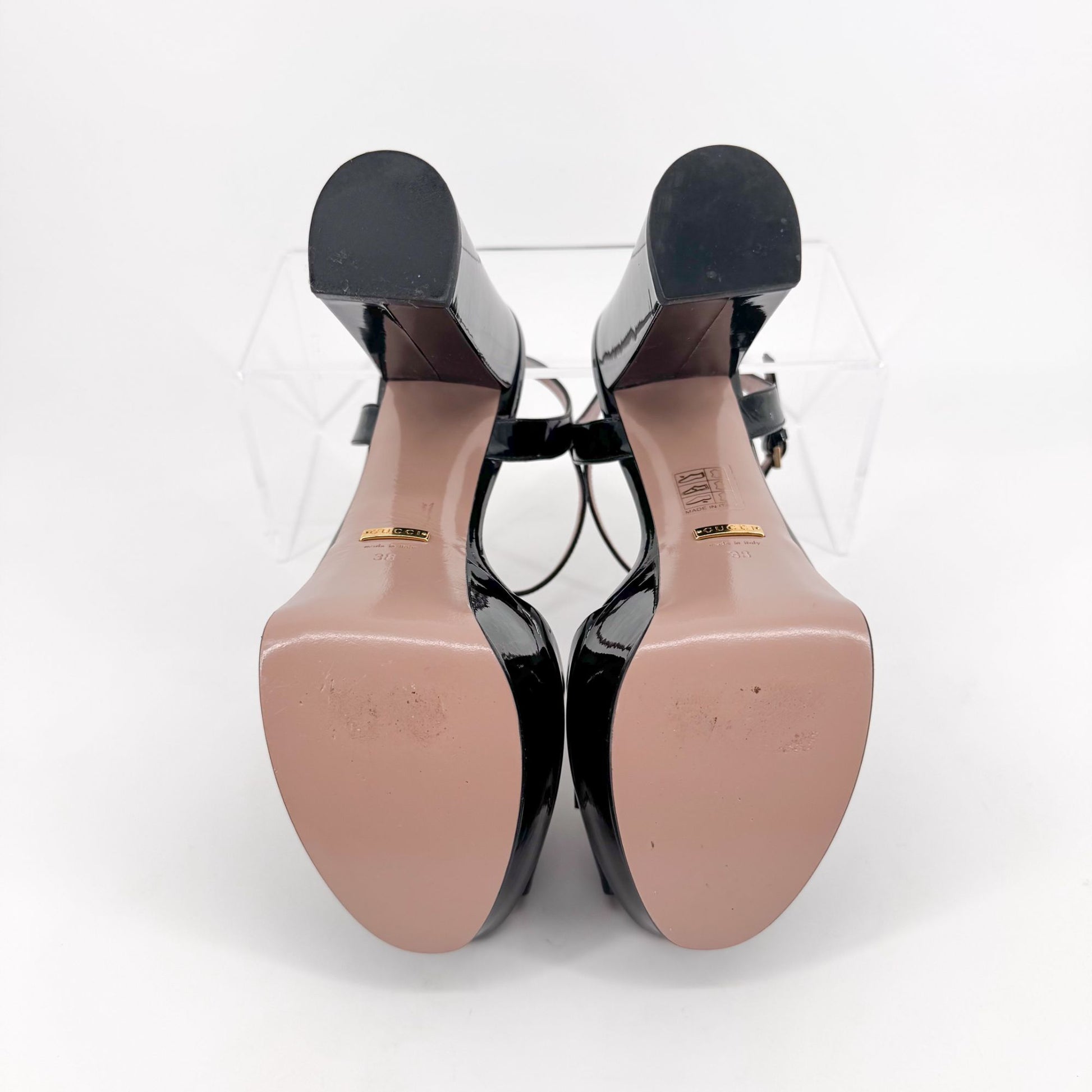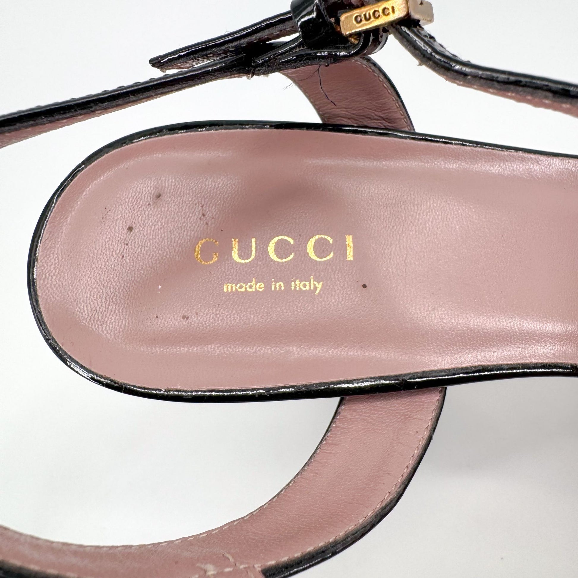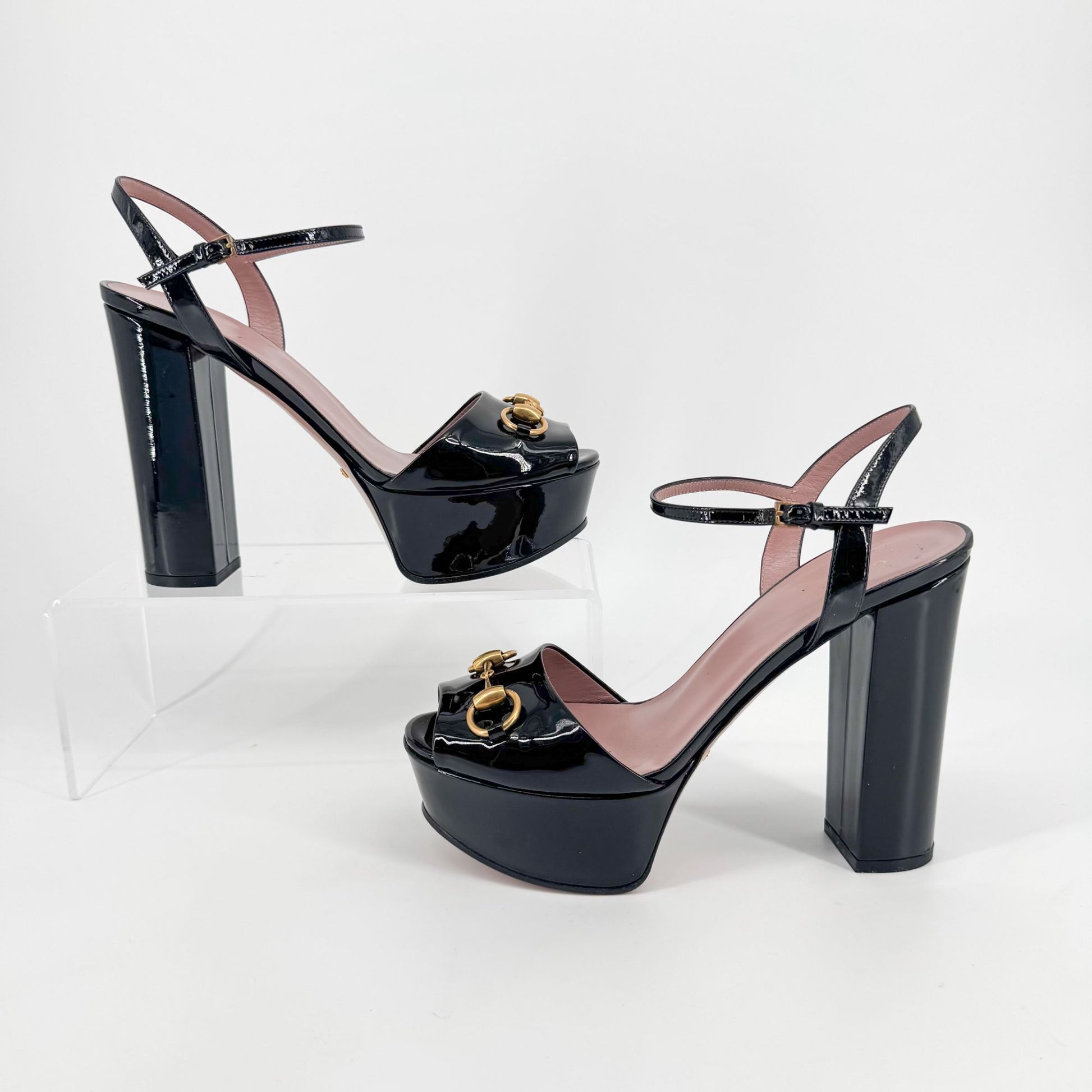 Gucci Claudie Horsebit Platform Heels in Black Patent Leather – Size 38