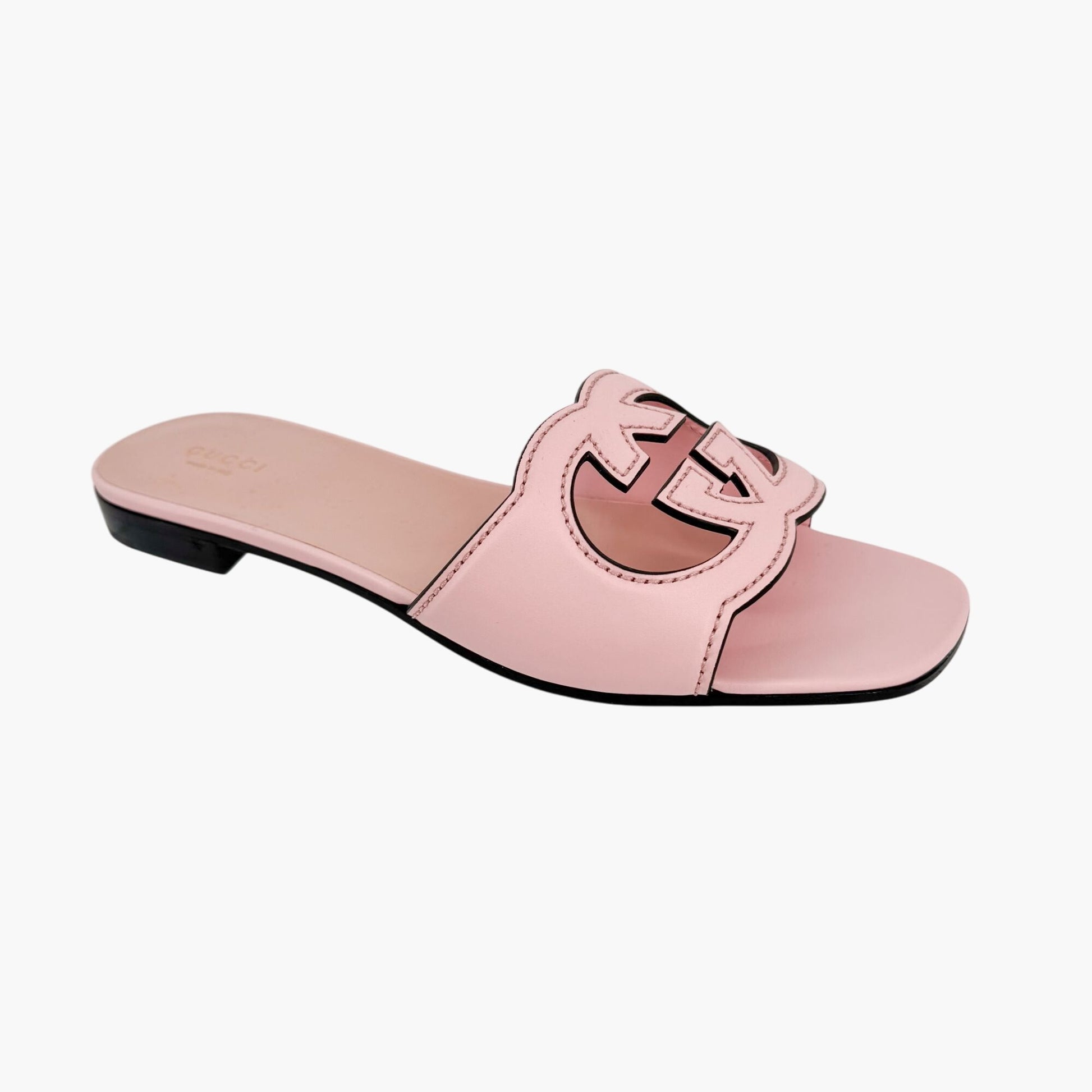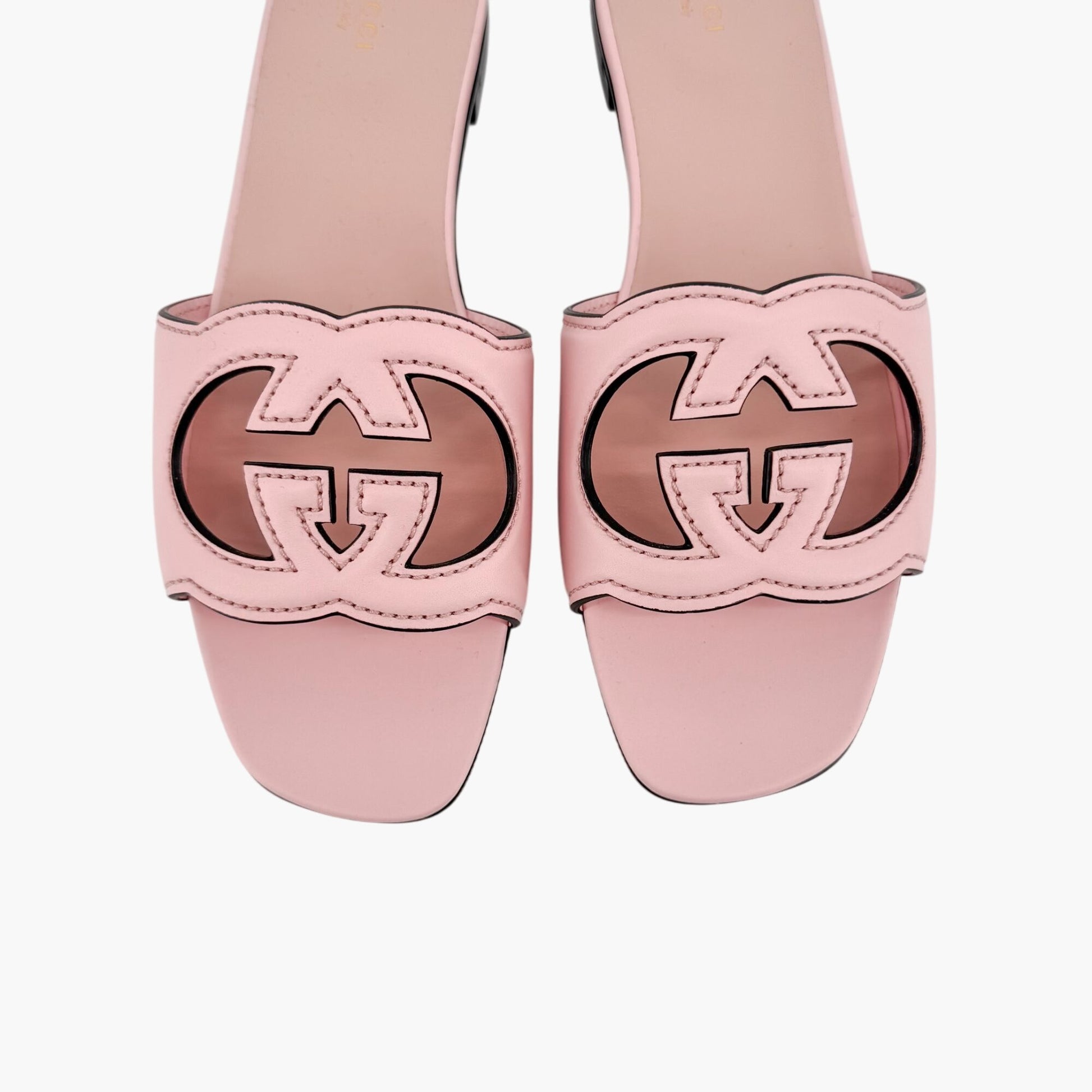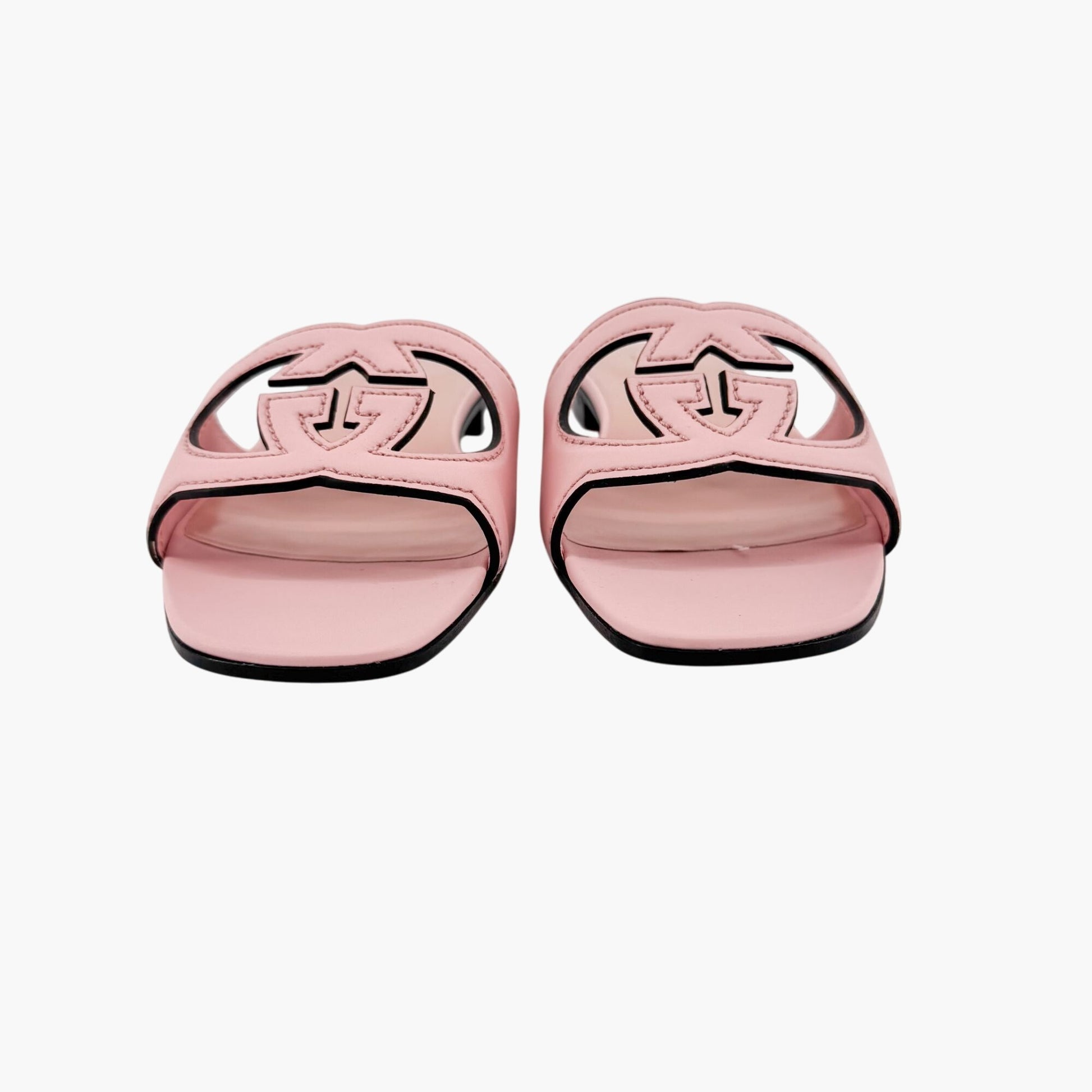 Gucci Cosmos Interlocking GG Cutout Slide Sandals in Pink Leather Size 40