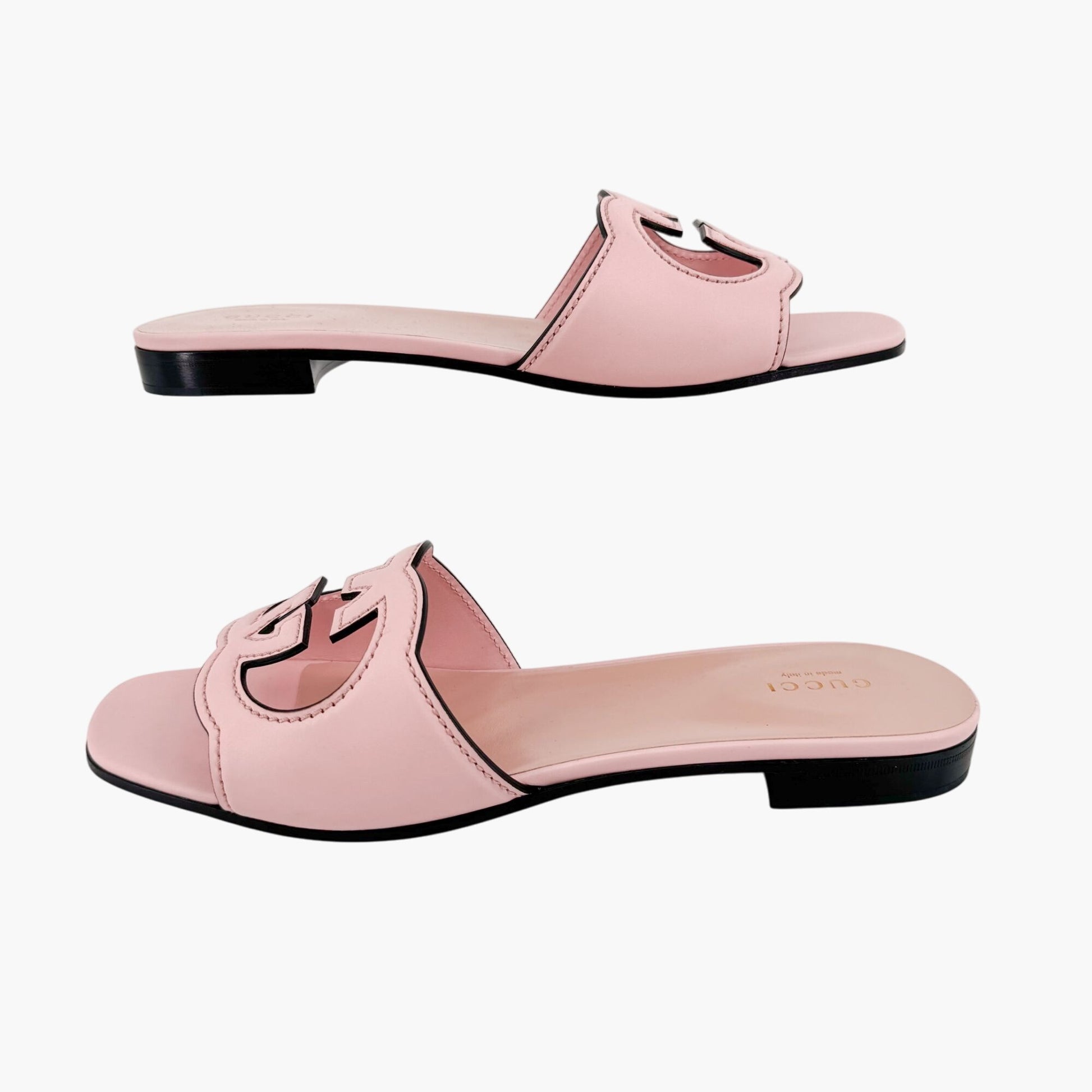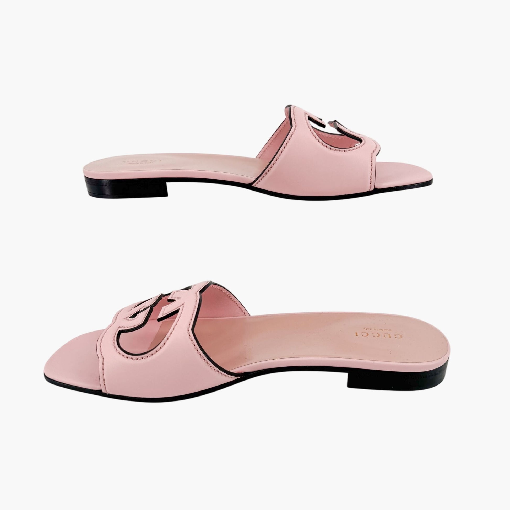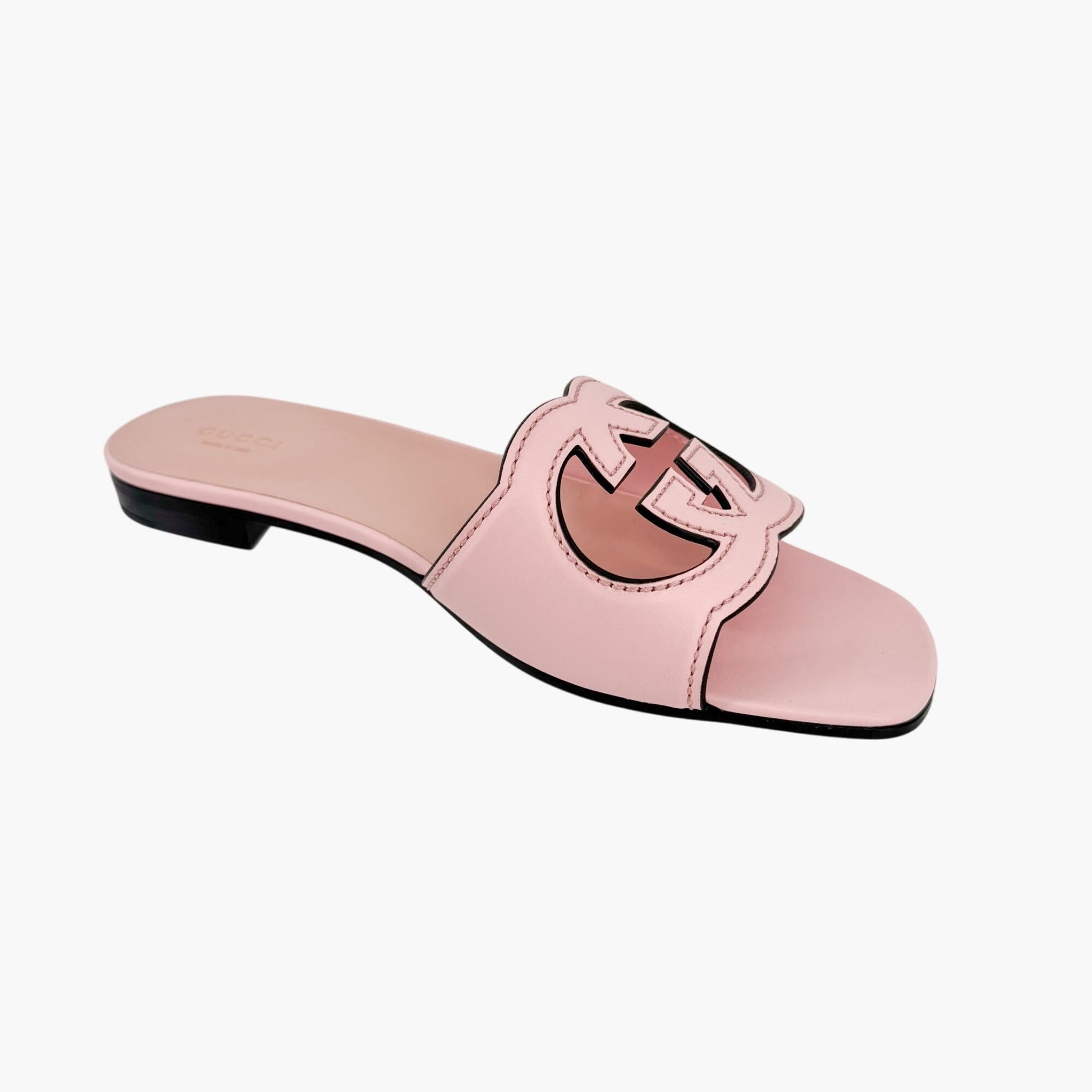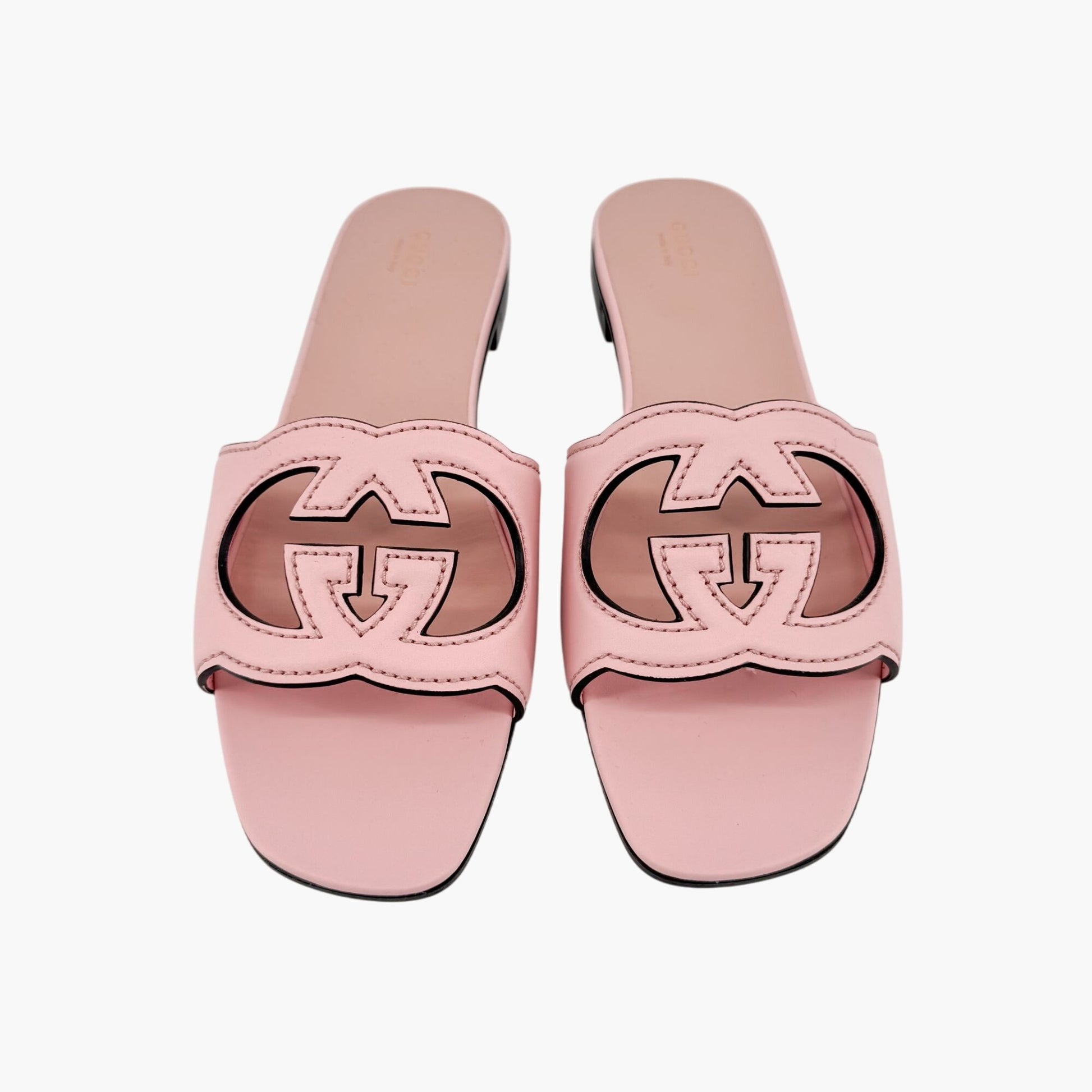 Gucci Cosmos Interlocking GG Cutout Slide Sandals in Pink Leather Size 40