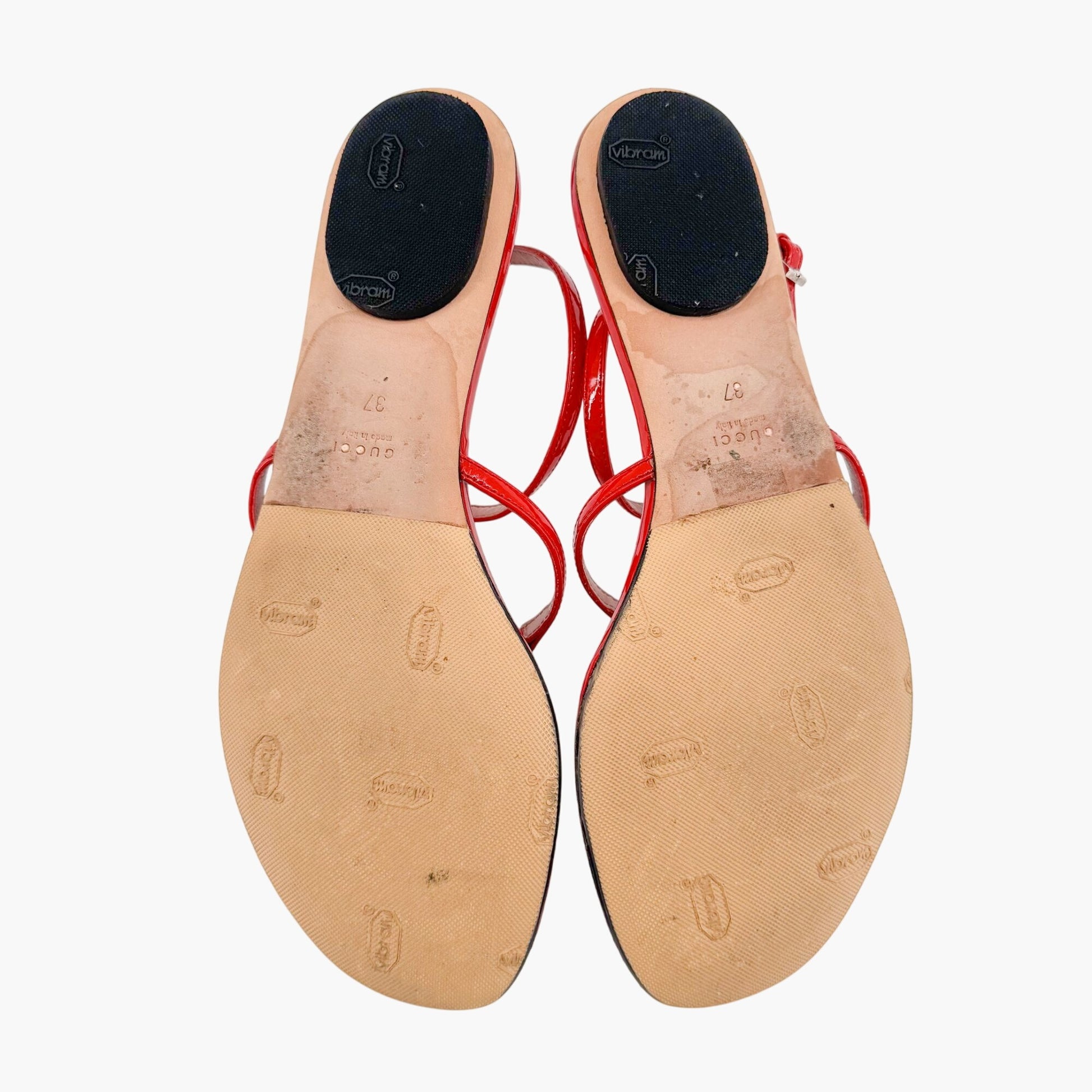 Gucci Crystal GG Interlock T-Strap Sandals EU 37 US 7 Red Patent Flat Logo Thong
