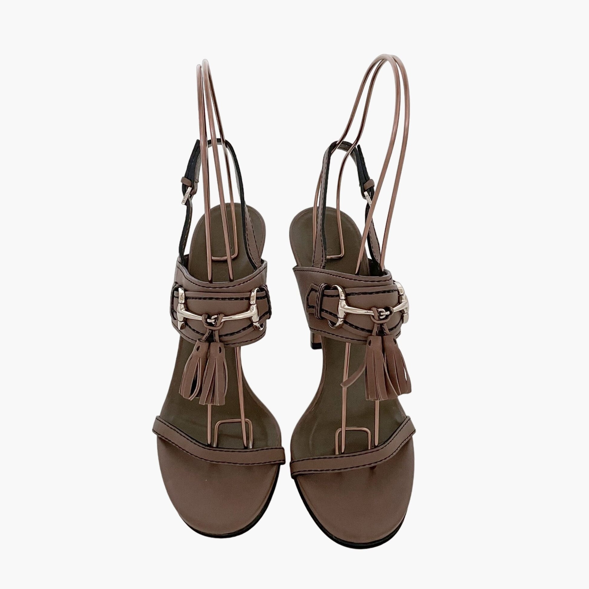 Gucci Emily Horsebit Tassel Sandals in Brown Leather Size 37.5