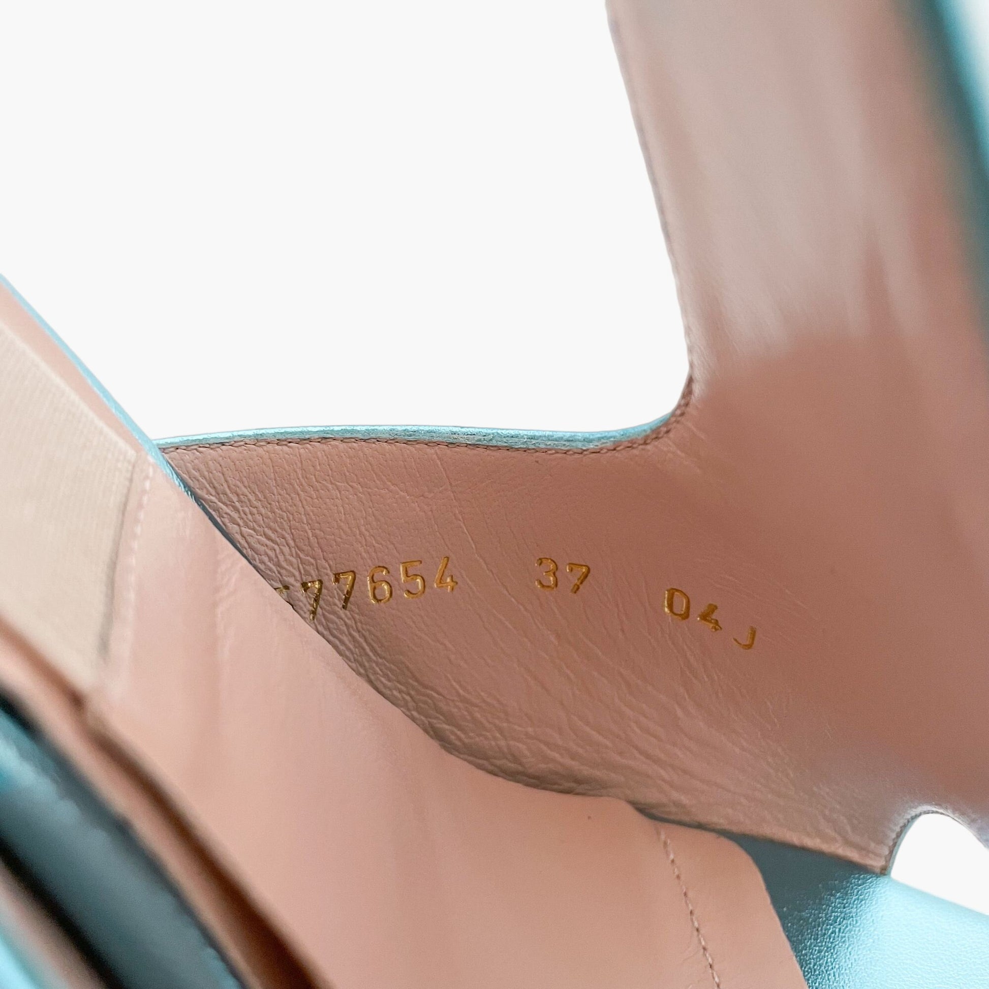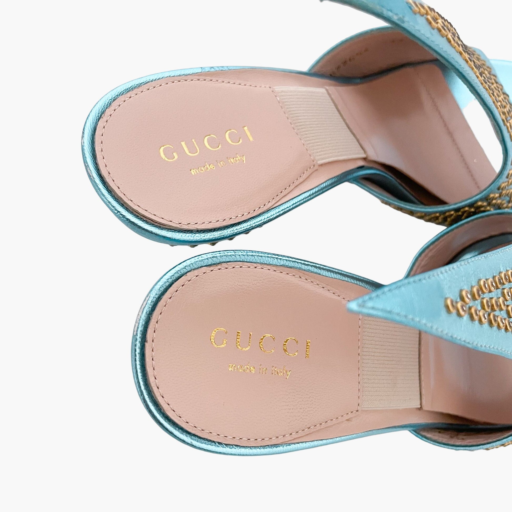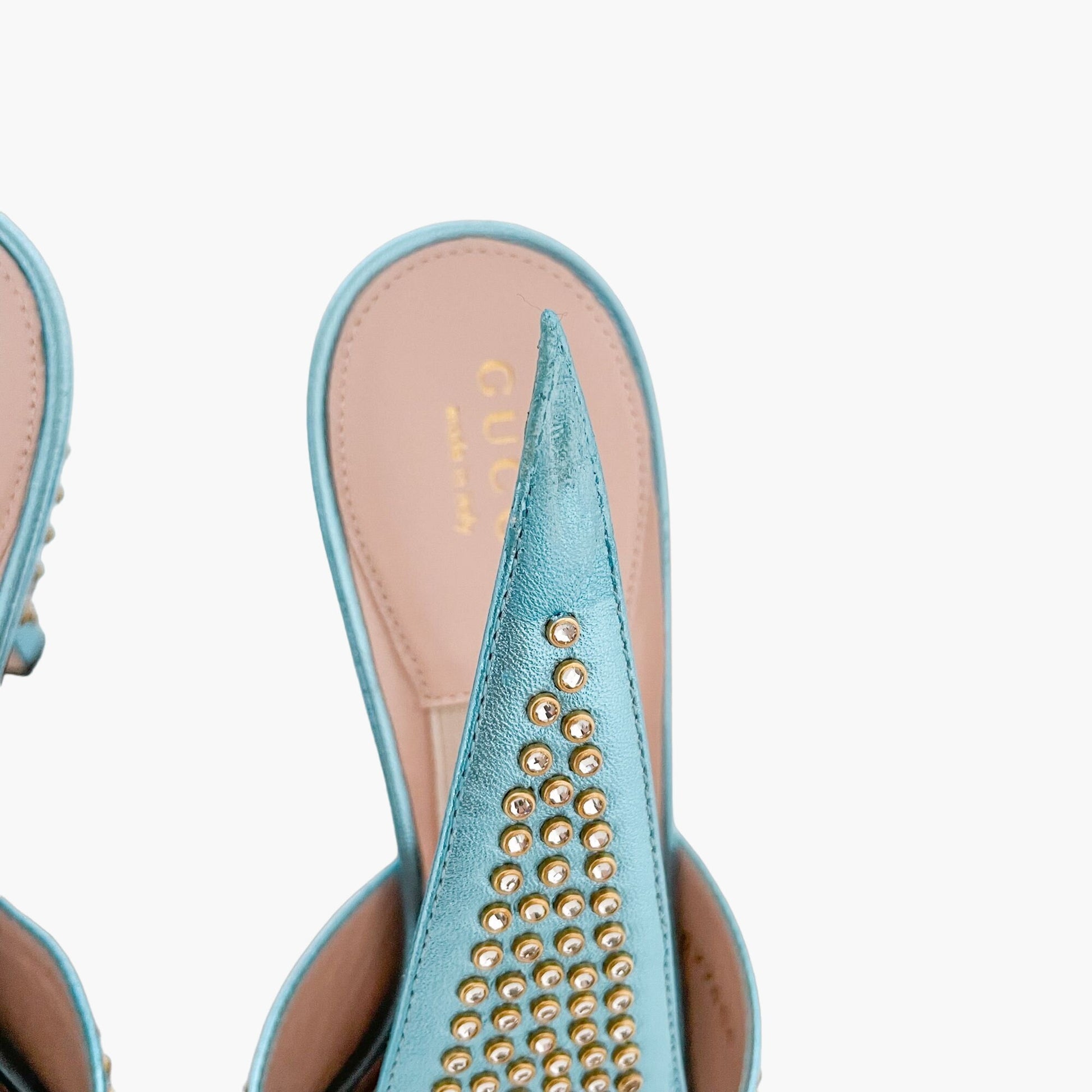 Gucci Fedra Crystal Embellished Mules EU 37 US 7 Metallic Blue High Heel Sandals