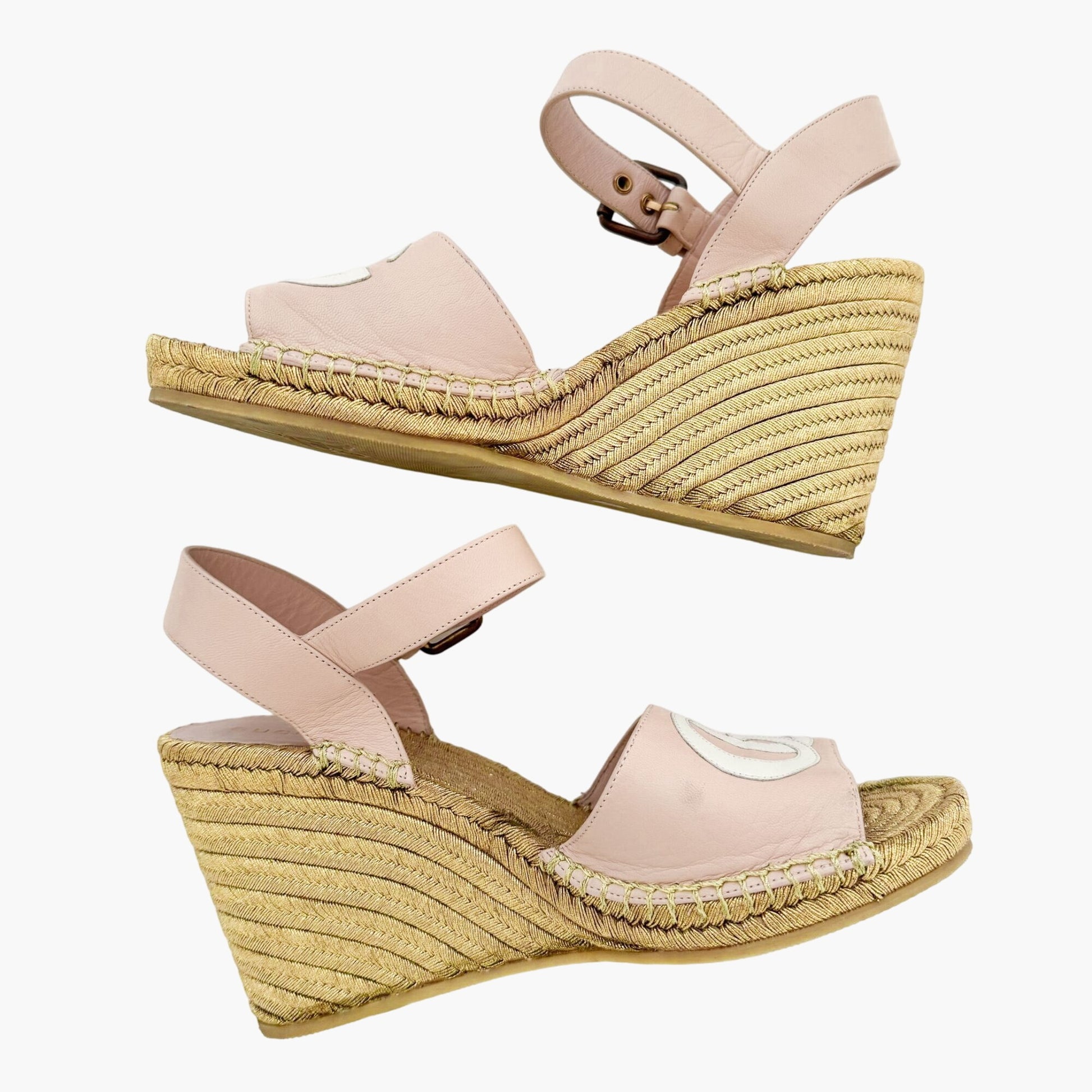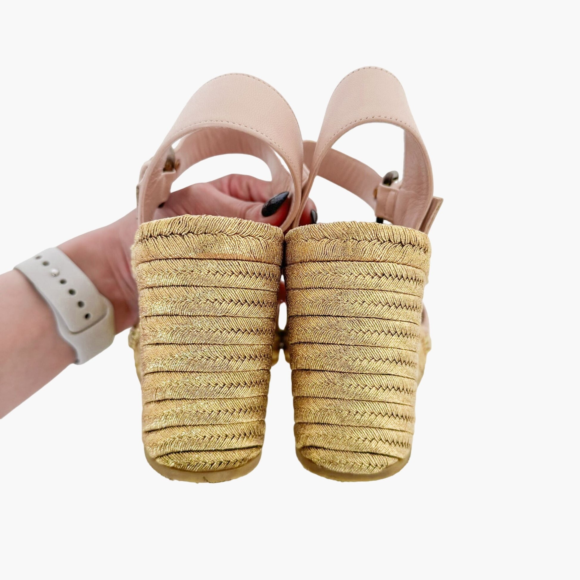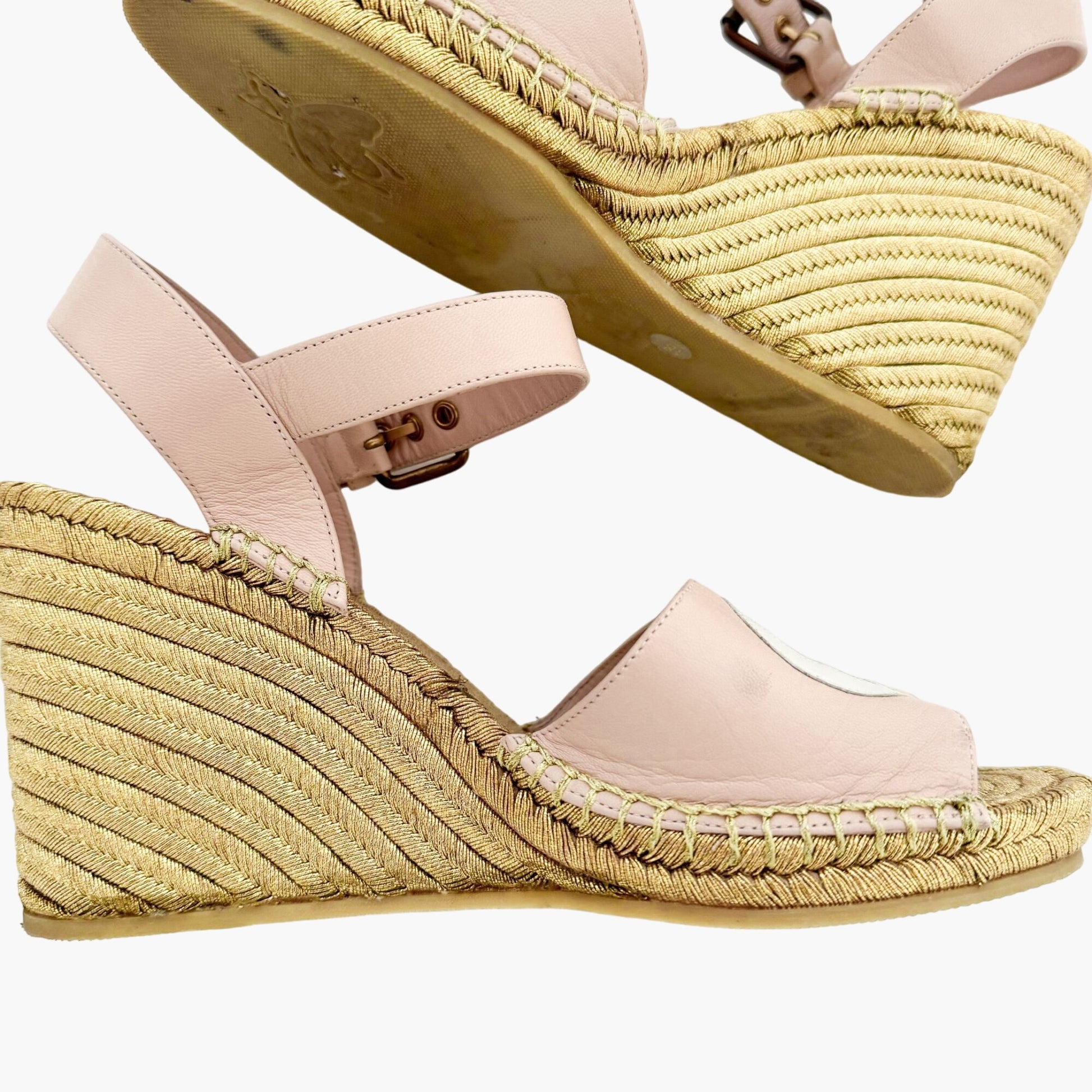 Gucci Flor GG Espadrille Wedge Sandals in Pink & Gold Leather Size 39.5