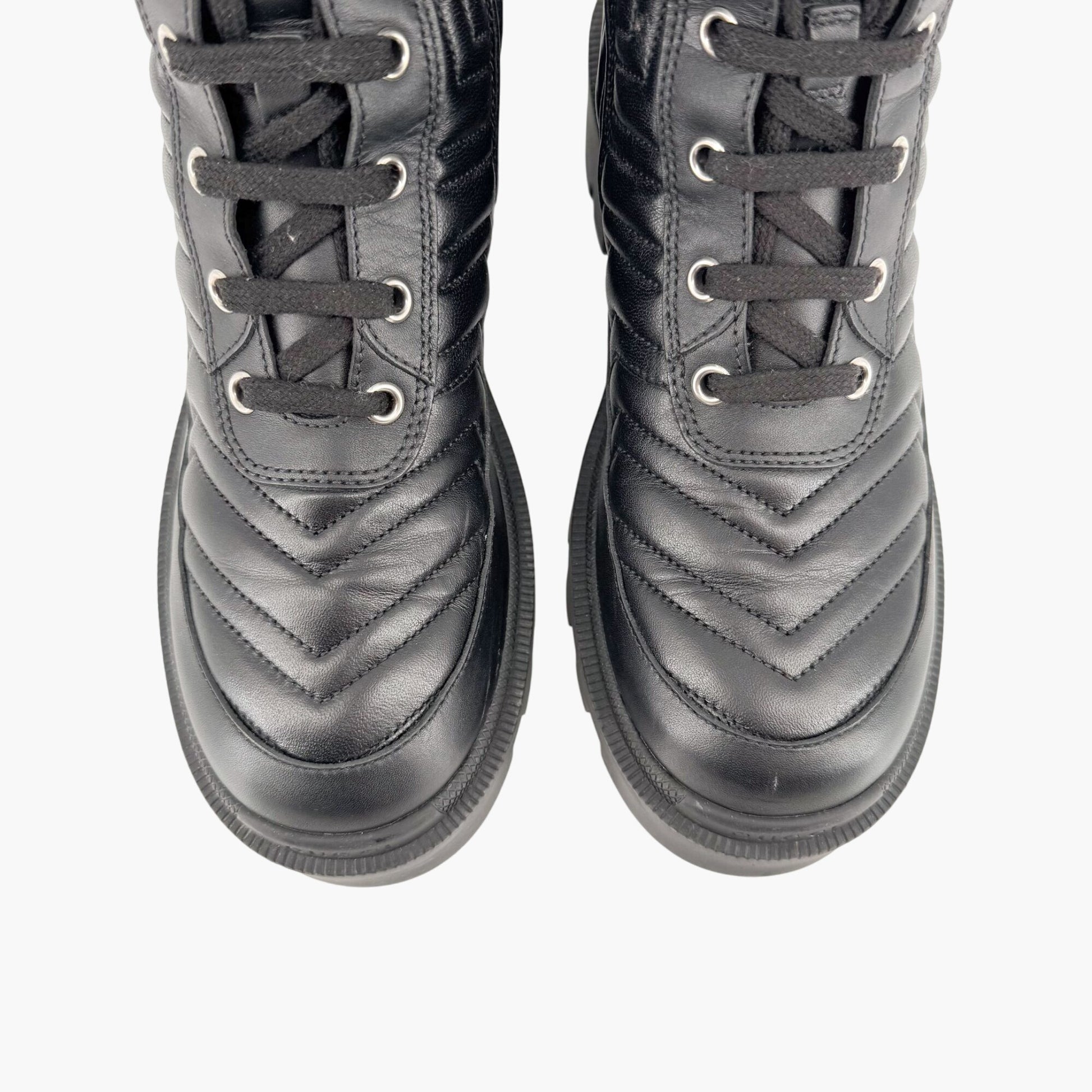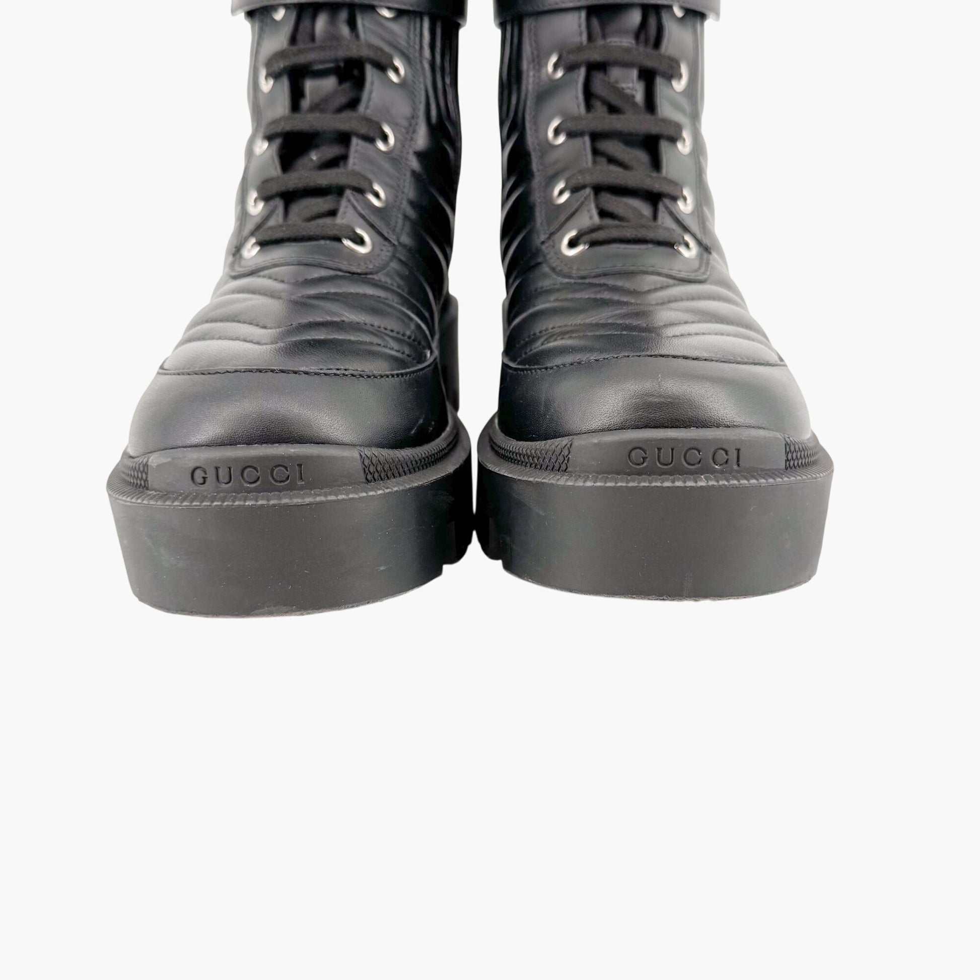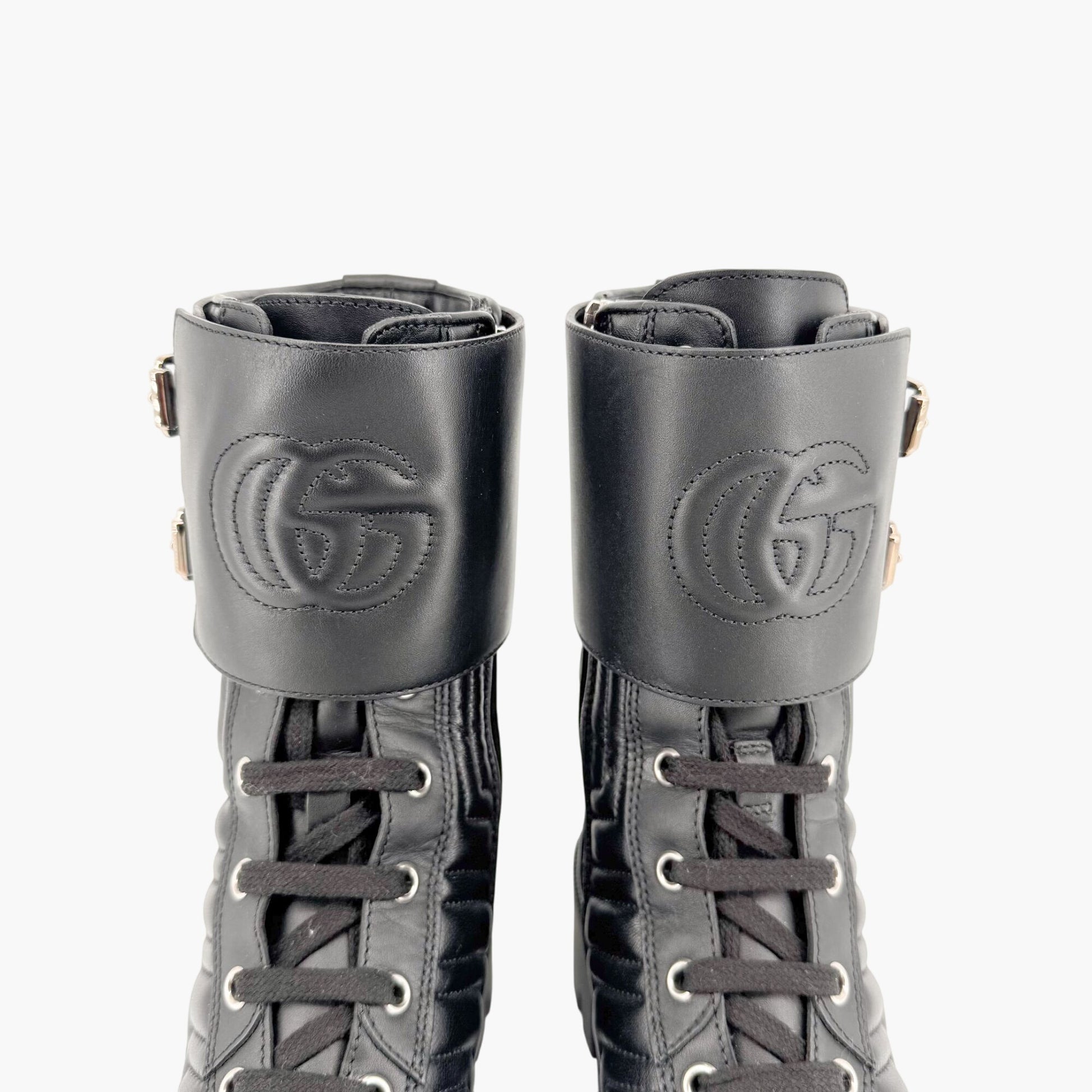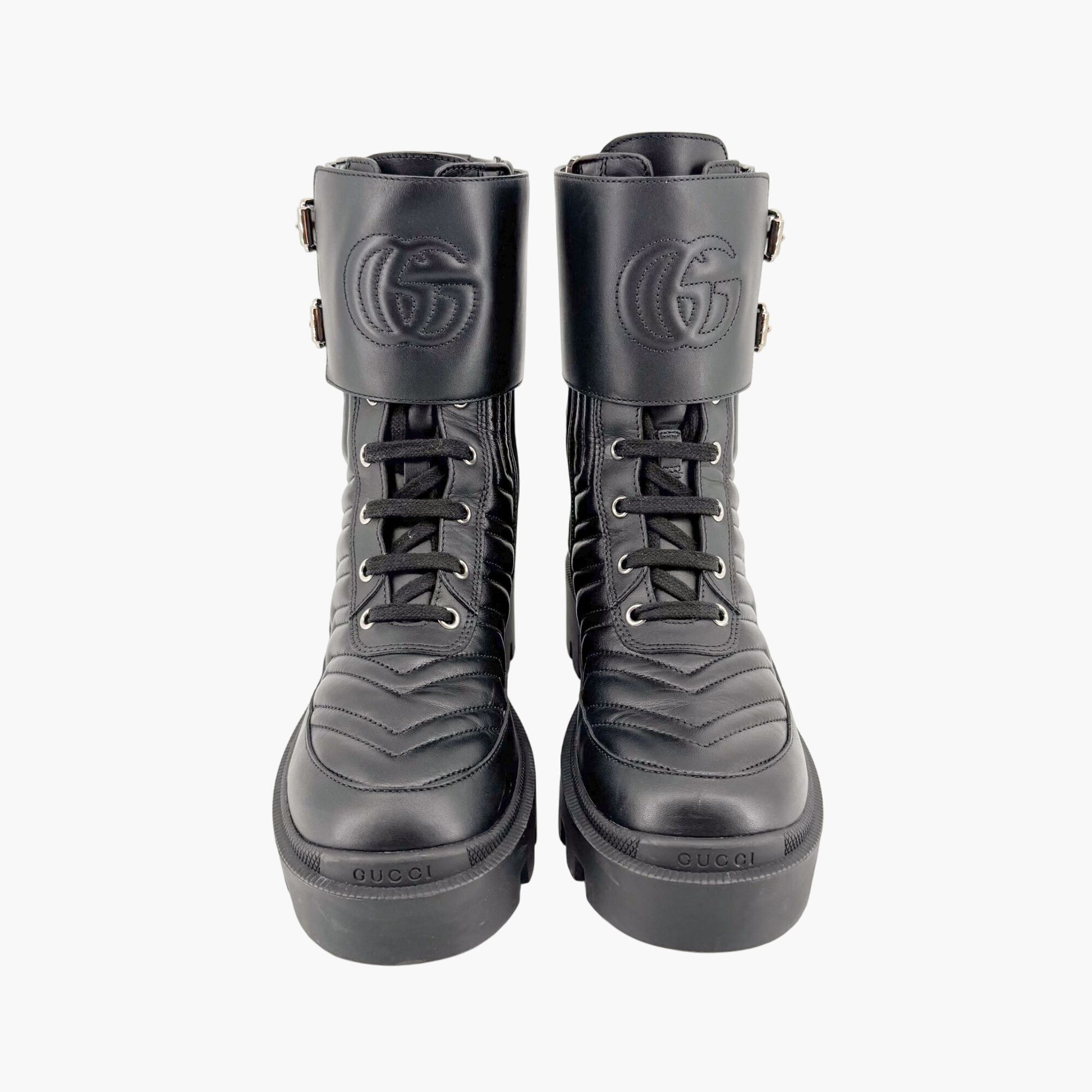 Gucci Frances GG Lug Combat Boots EU 36 US 6 Black Matelasse Quilted Leather