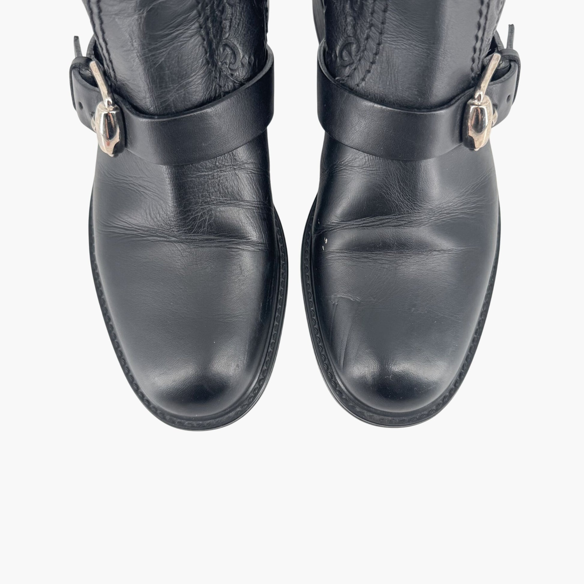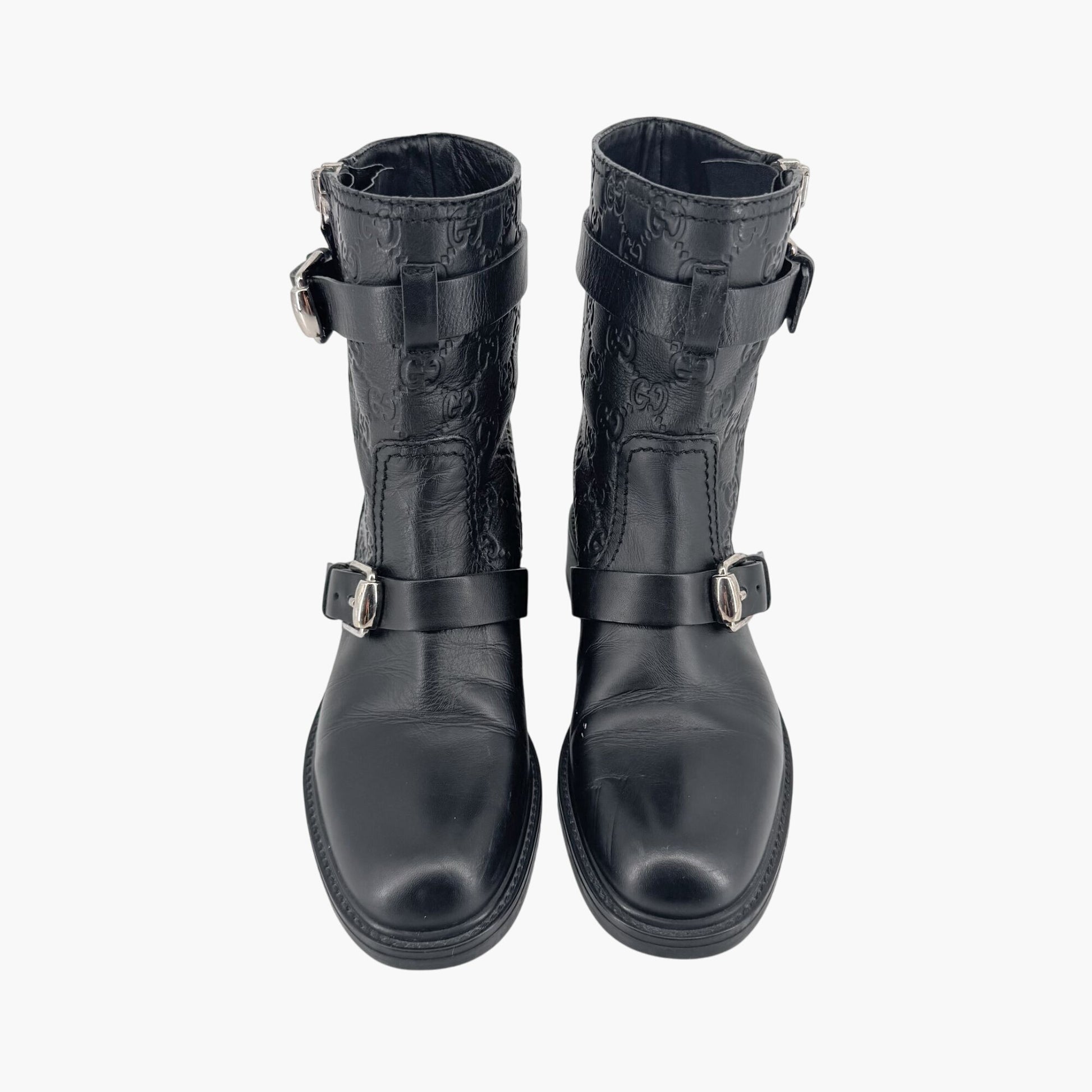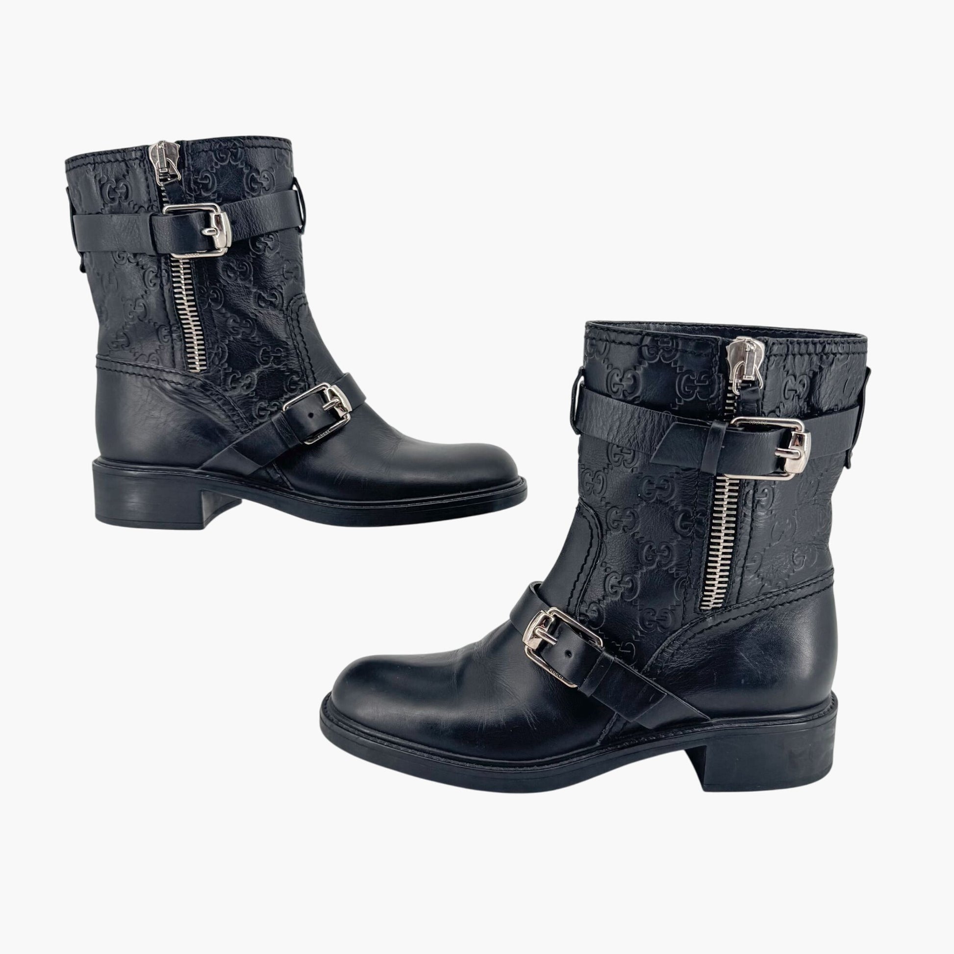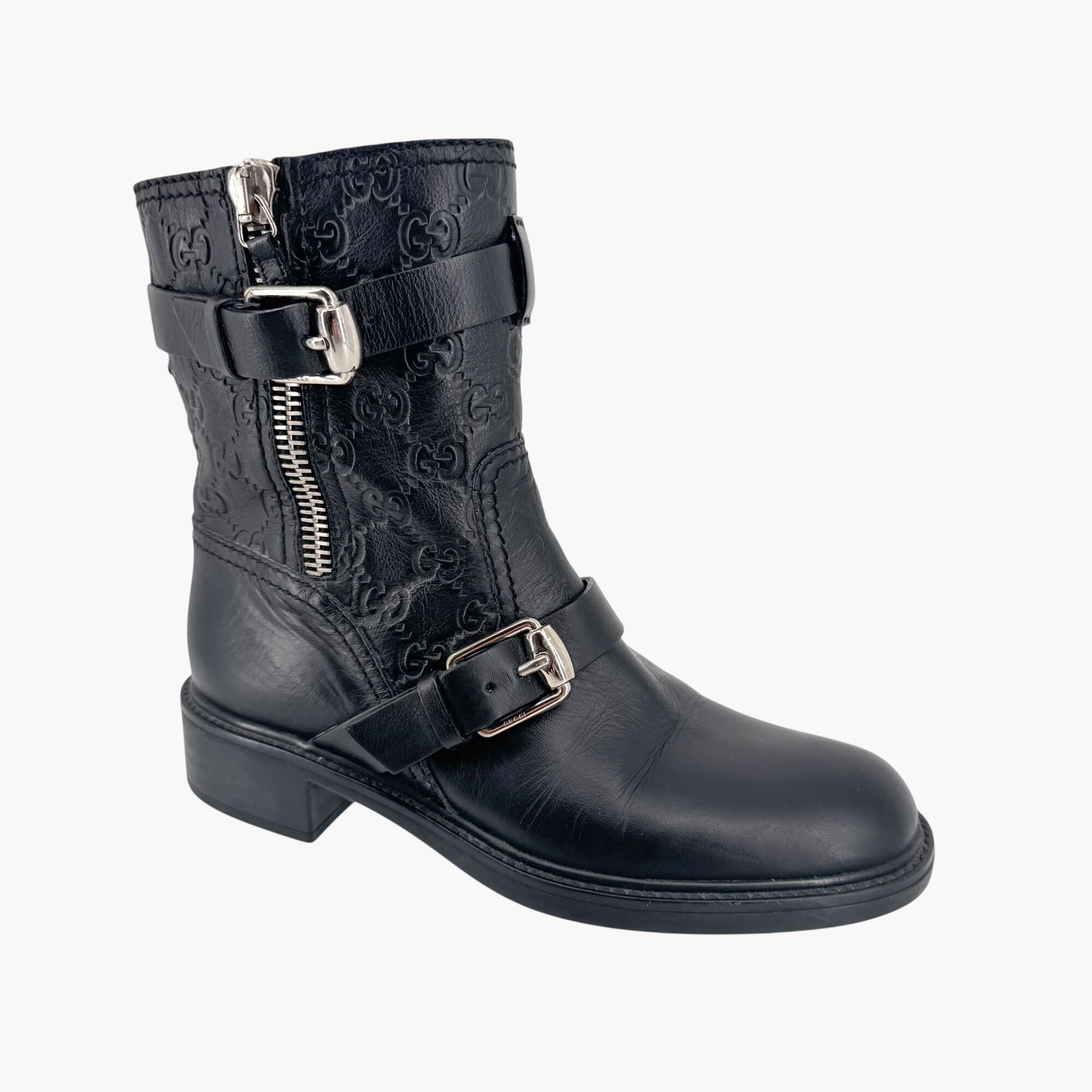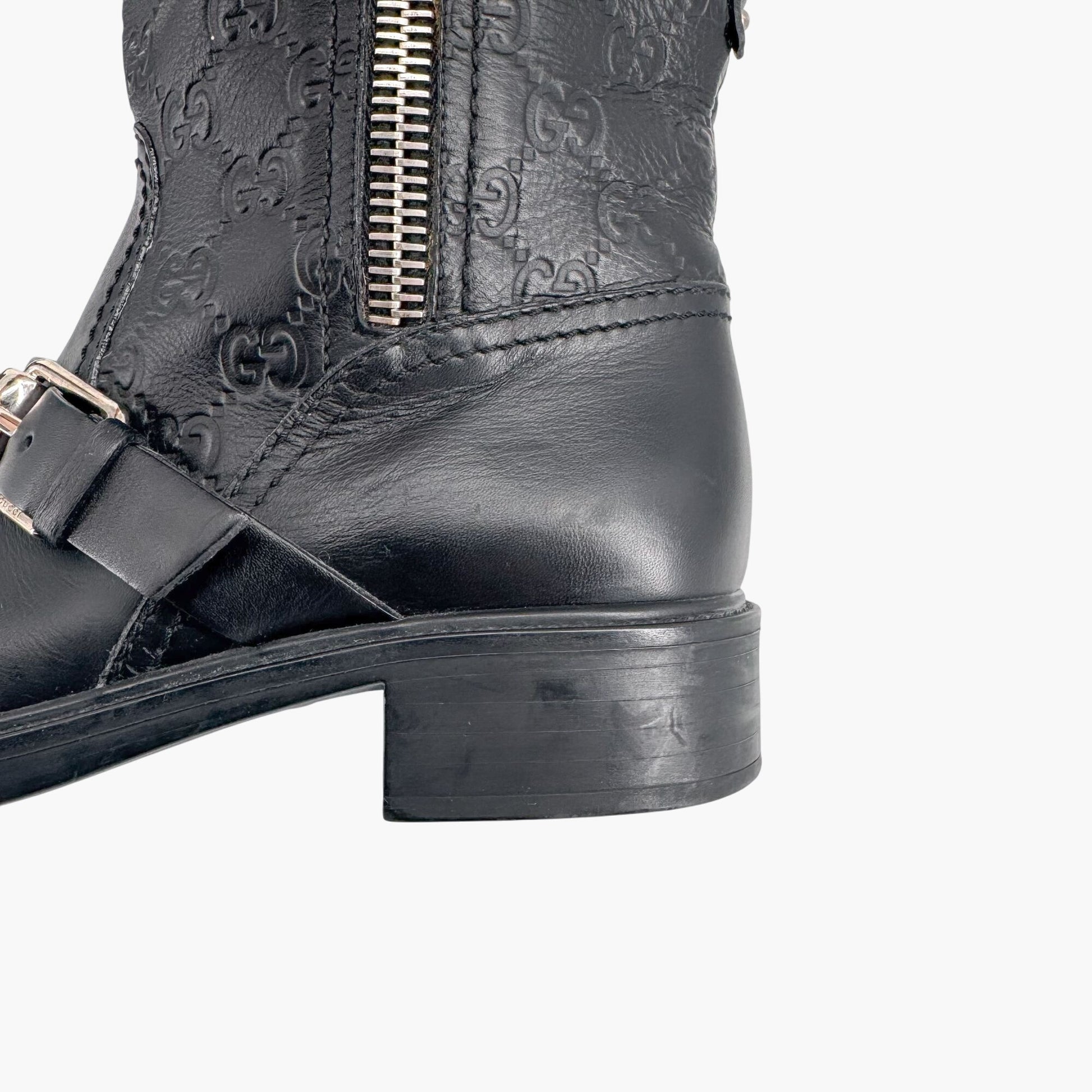 Gucci GG Guccissima Moto Ankle Boots Black Leather – Size 37.5