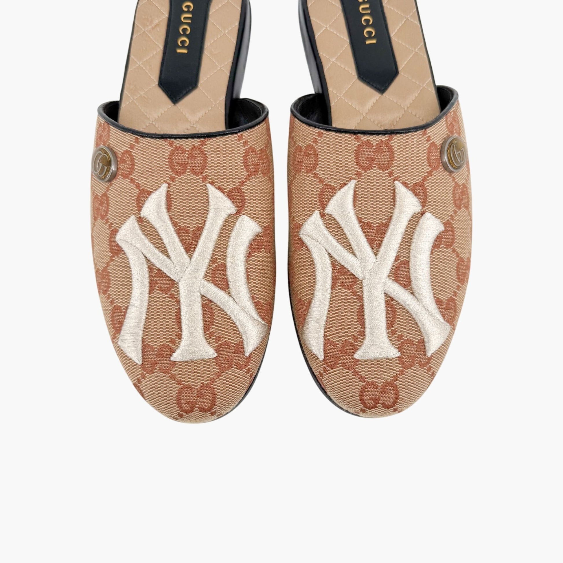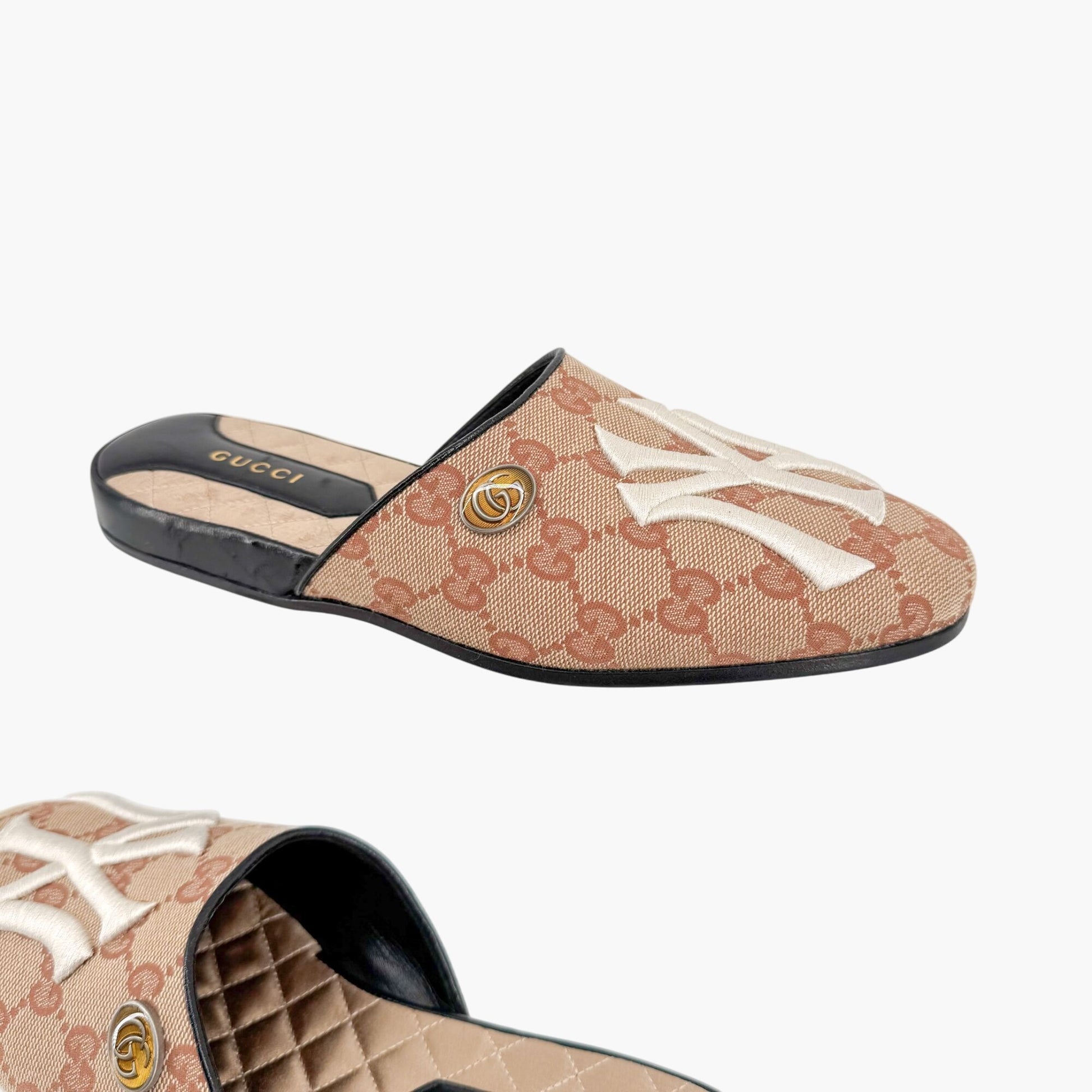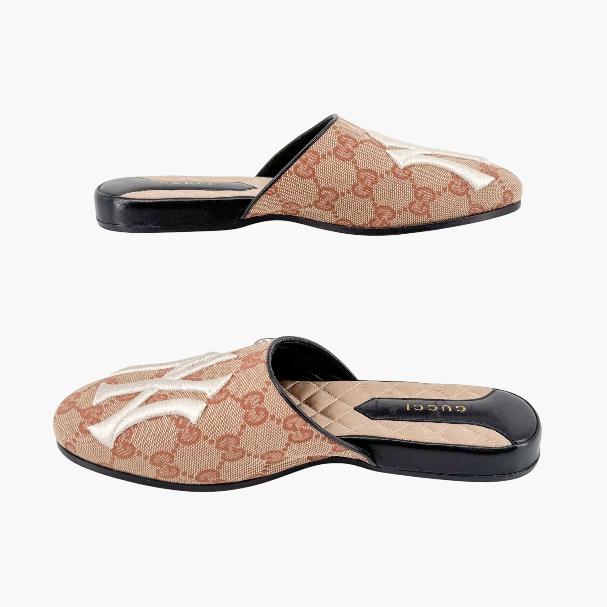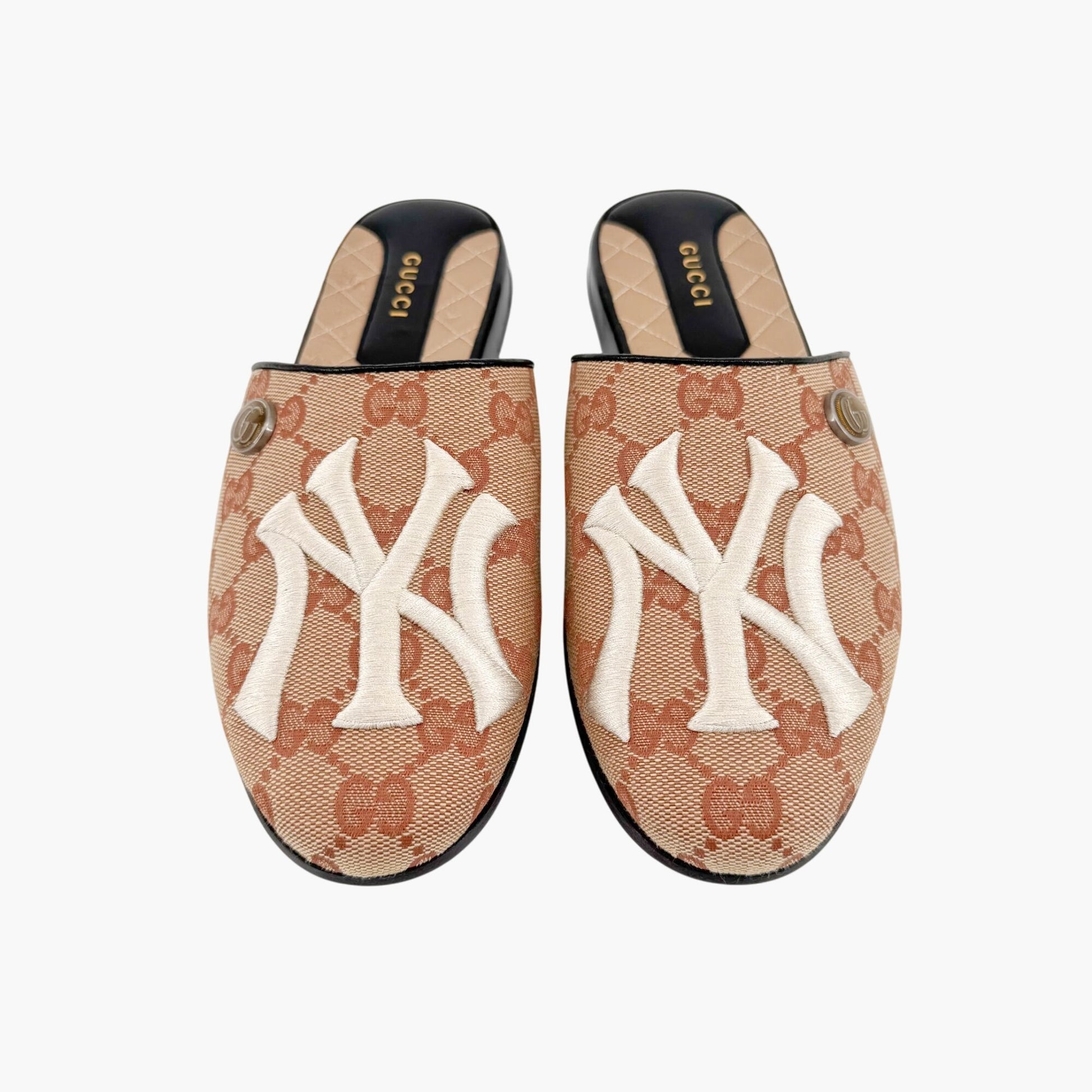 Gucci Yankees GG Mule Slipper Size 36 US 6 Beige Monogram Canvas Flat Loafer MLB