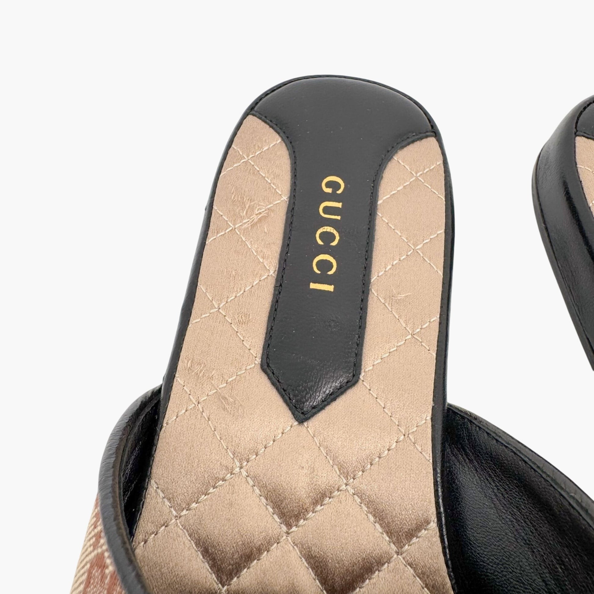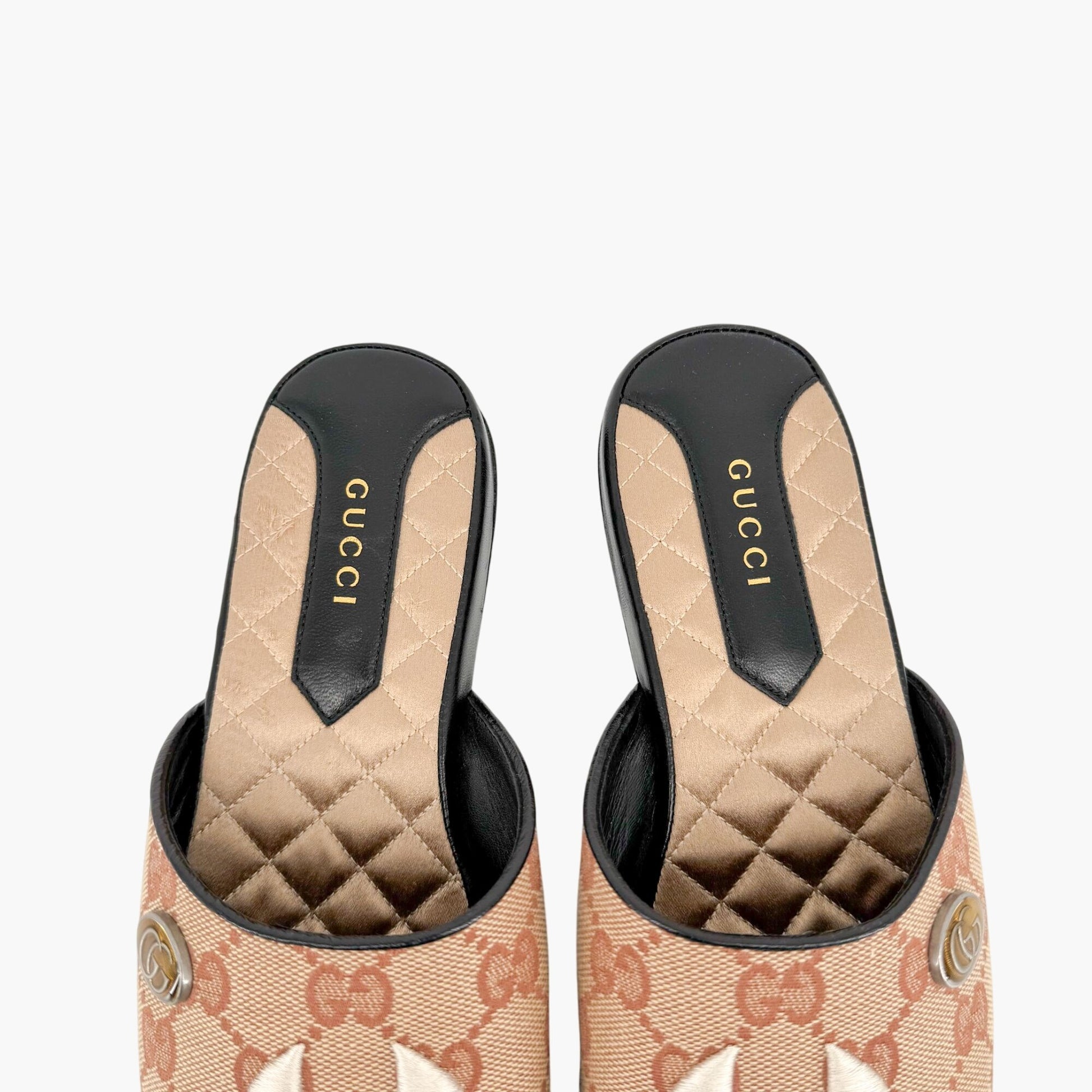 Gucci GG Yankees Mule Slippers in Beige Monogram Canvas Size 36