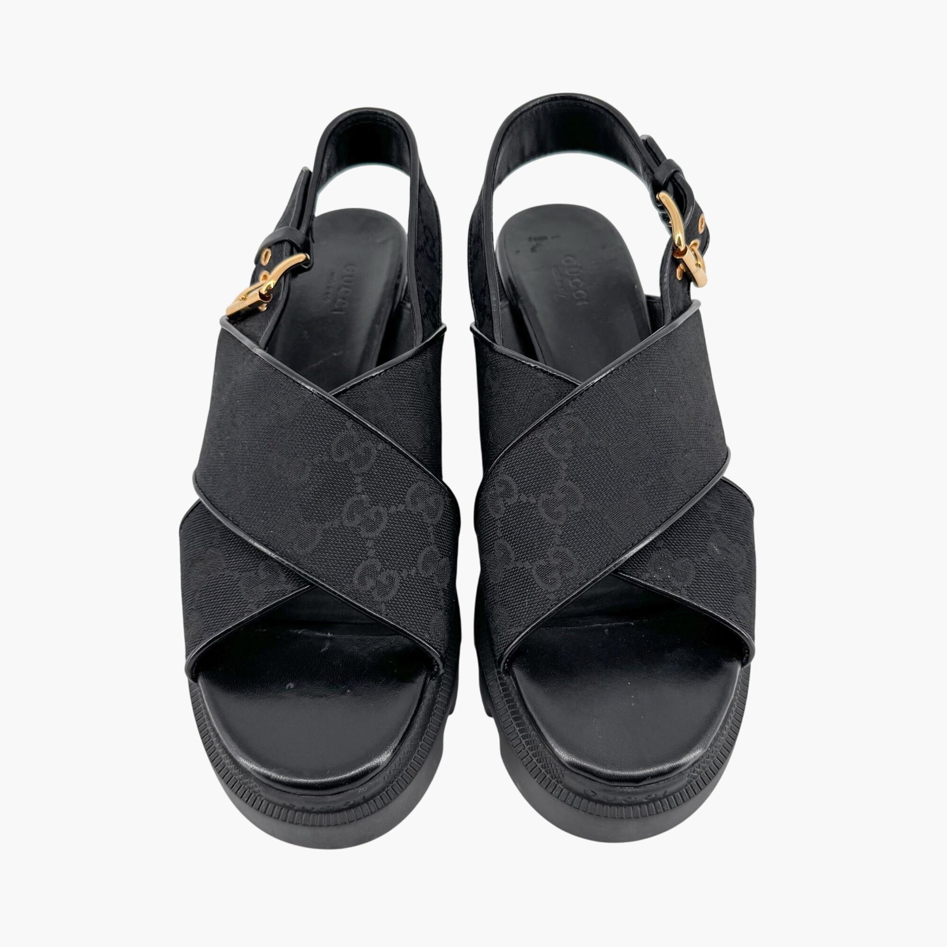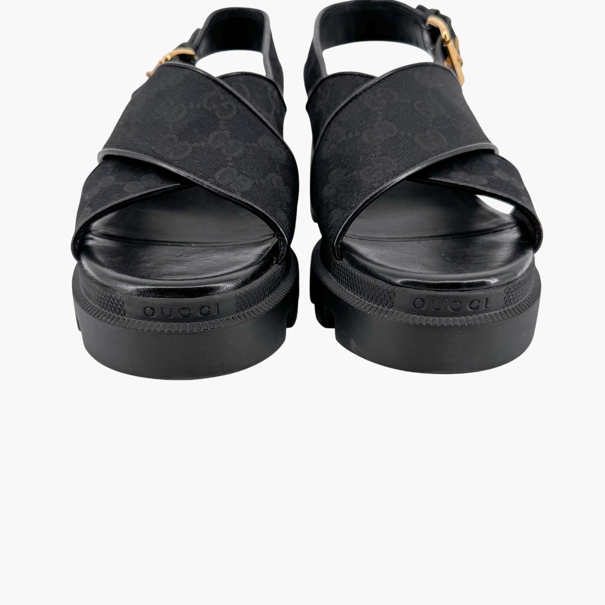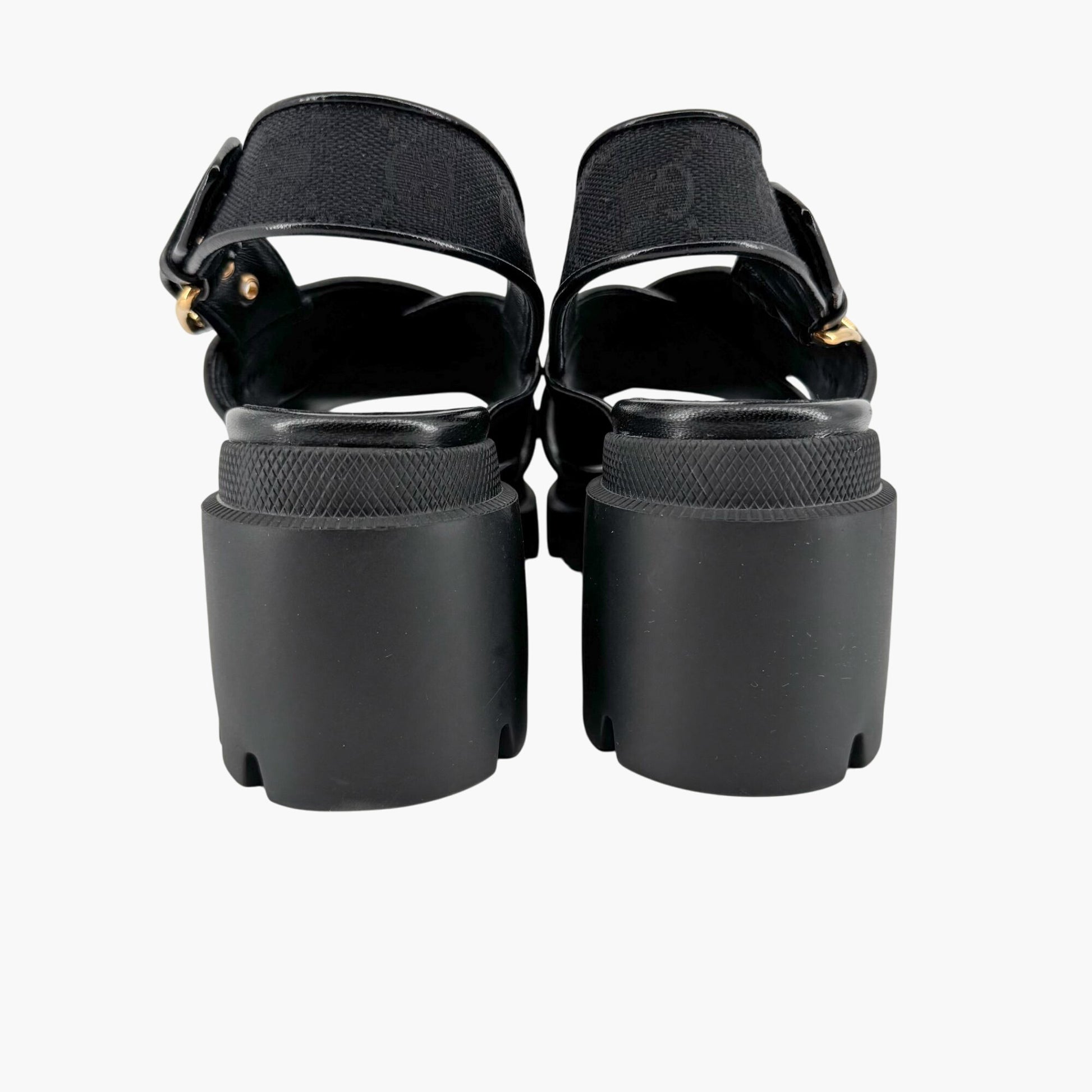 Gucci Granada GG Monogram Lug Sole Sandals in Black Canvas – Size 40.5