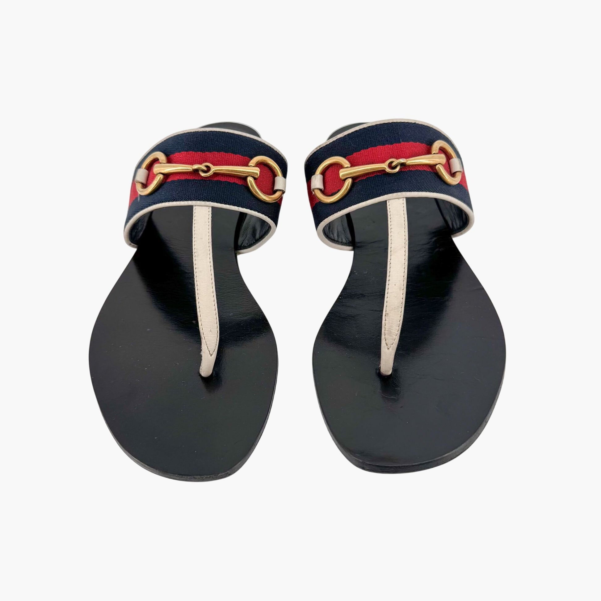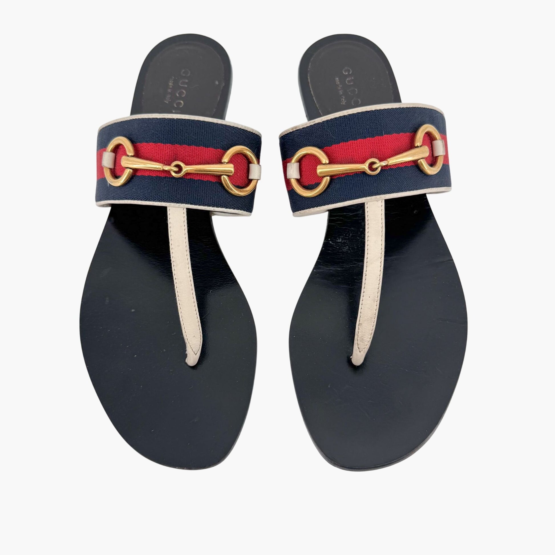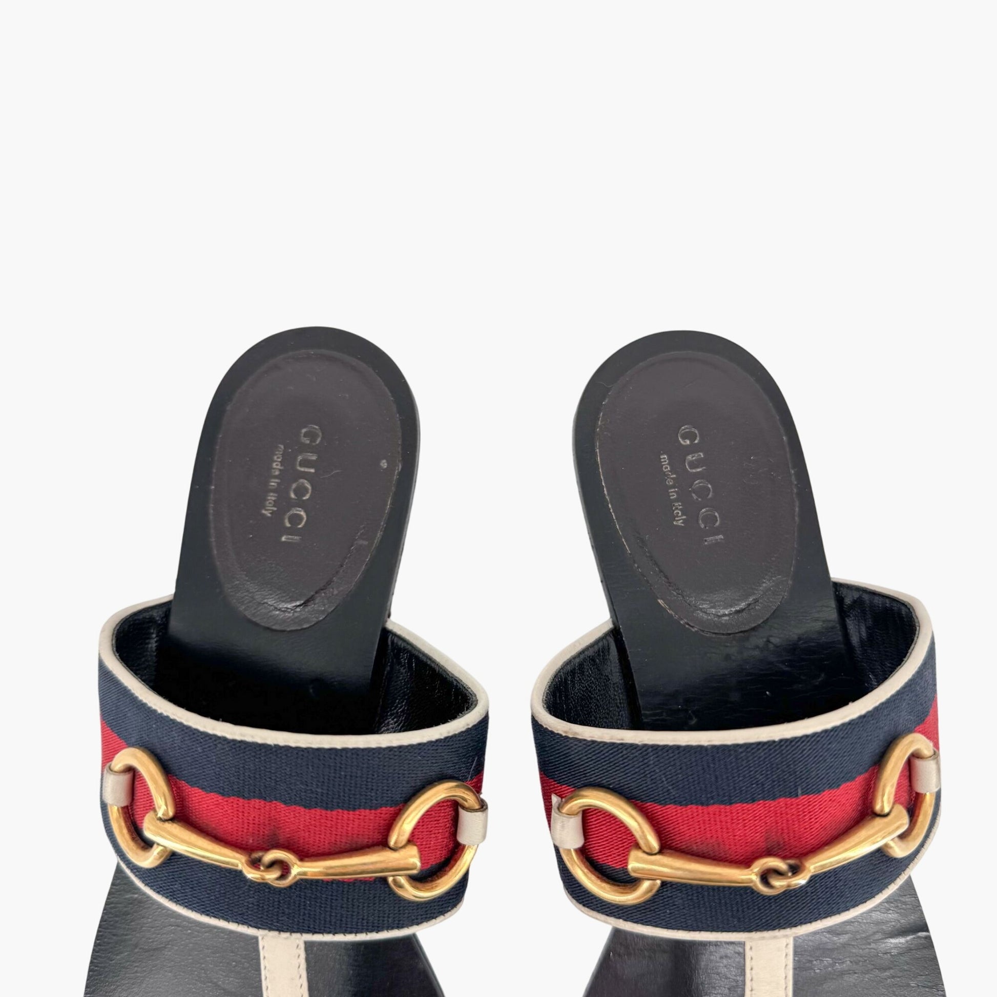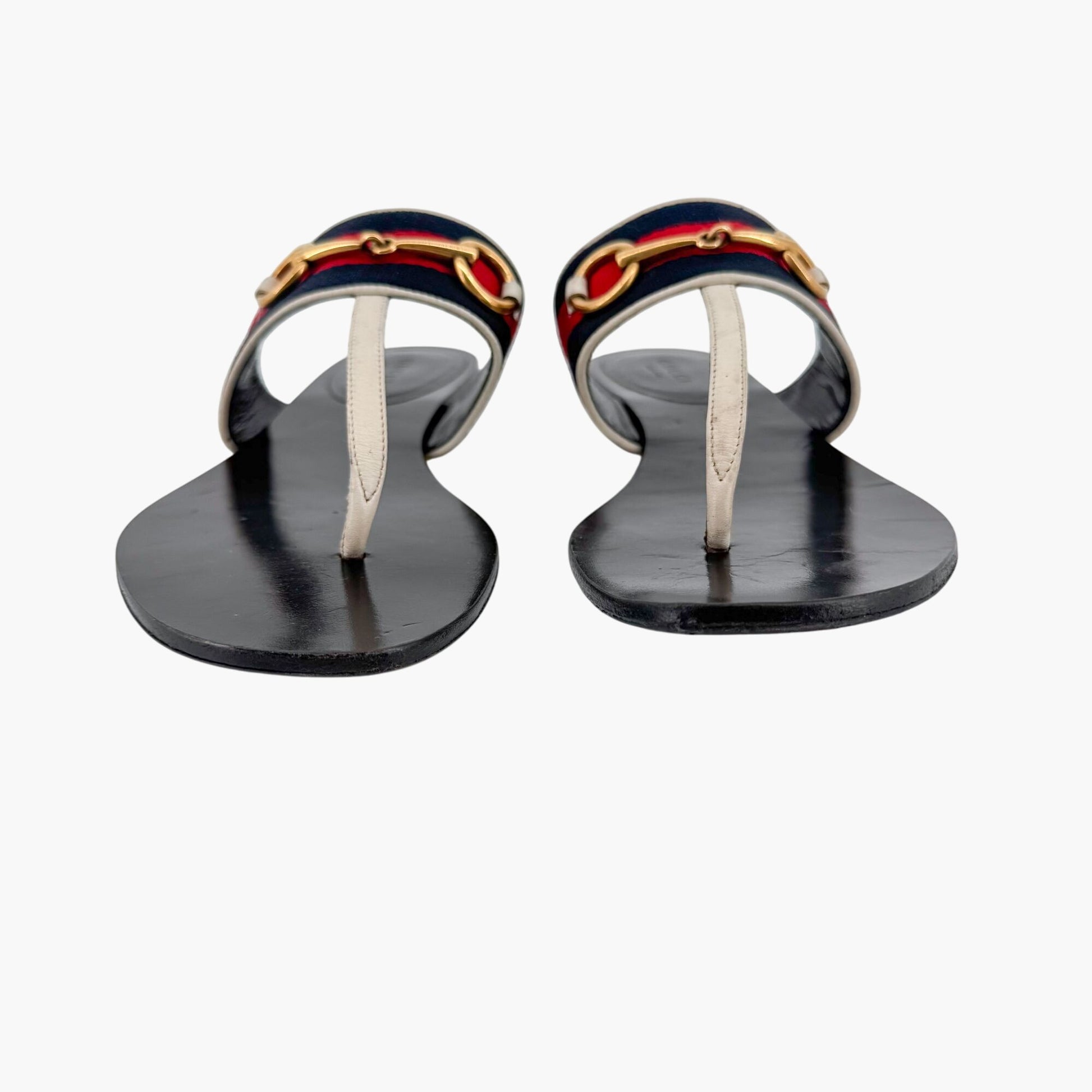 Gucci Horsebit Web Stripe T-Strap Thong Sandals in White Leather – Size 38