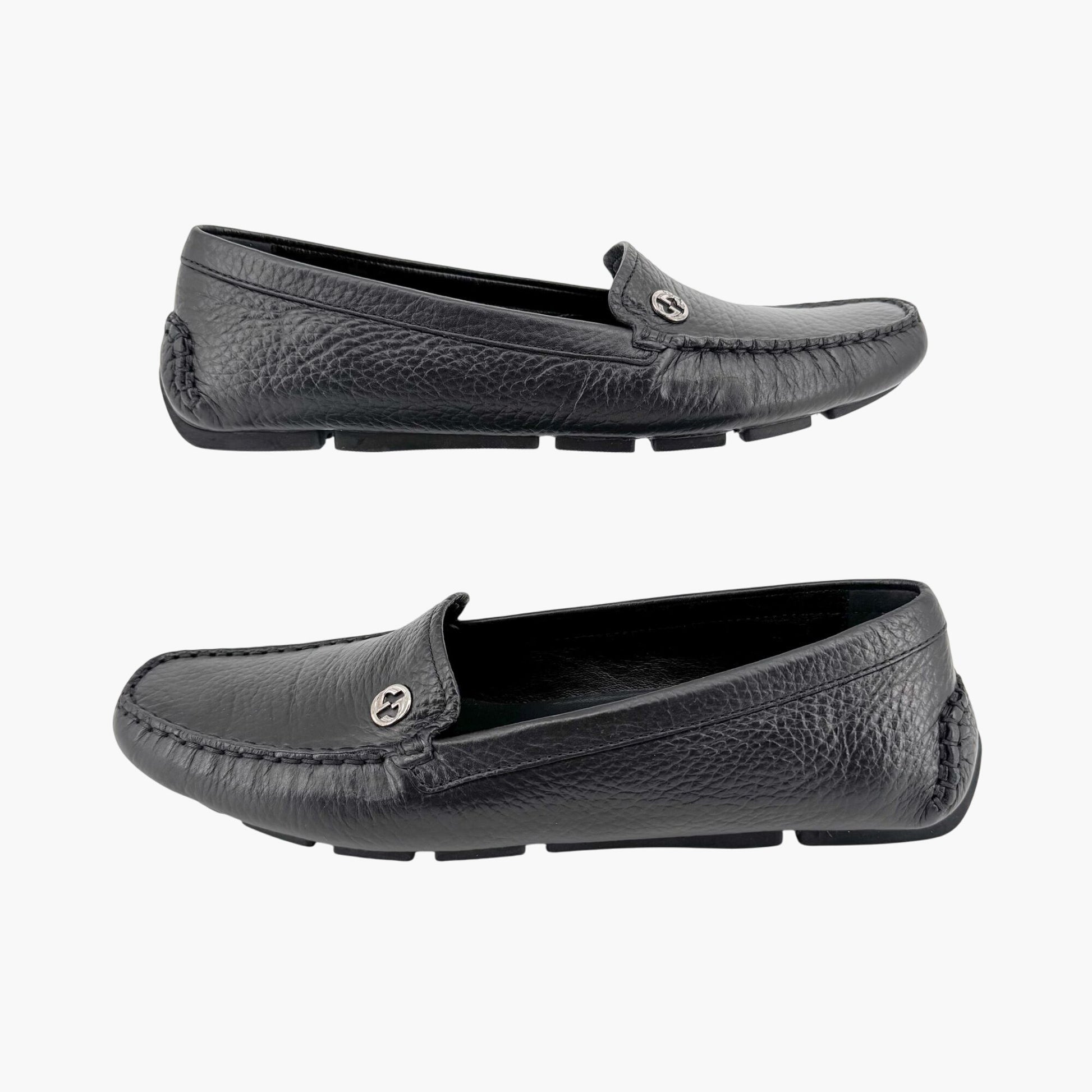 Gucci Interlocking GG Driving Loafers EU 36.5 US 6.5 Black Leather Flat Shoe