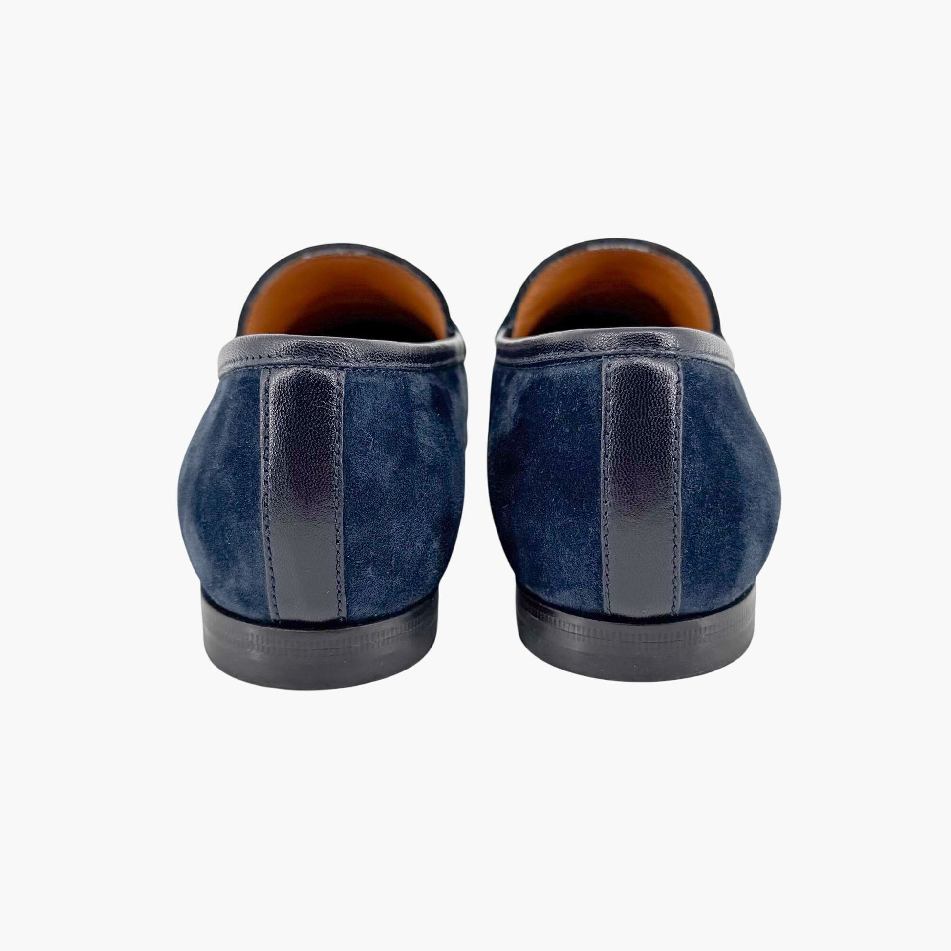 Gucci Jordaan Horsebit Loafer Size 36.5 US 6.5 Navy Blue Suede Slip On Flat Shoe