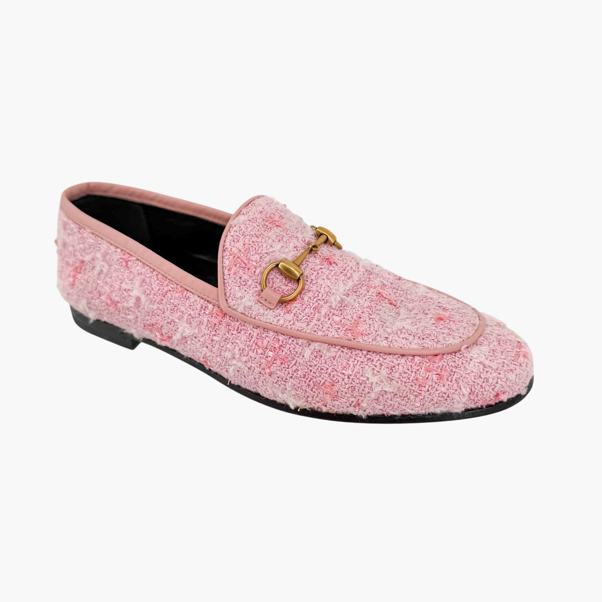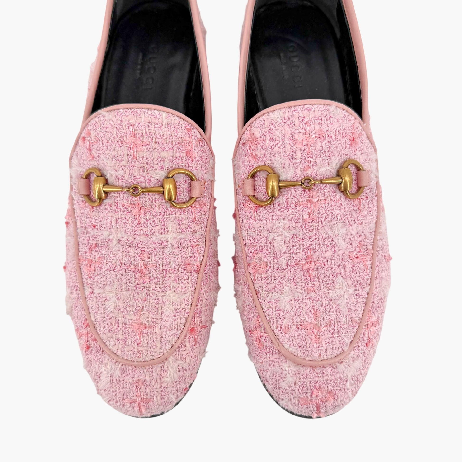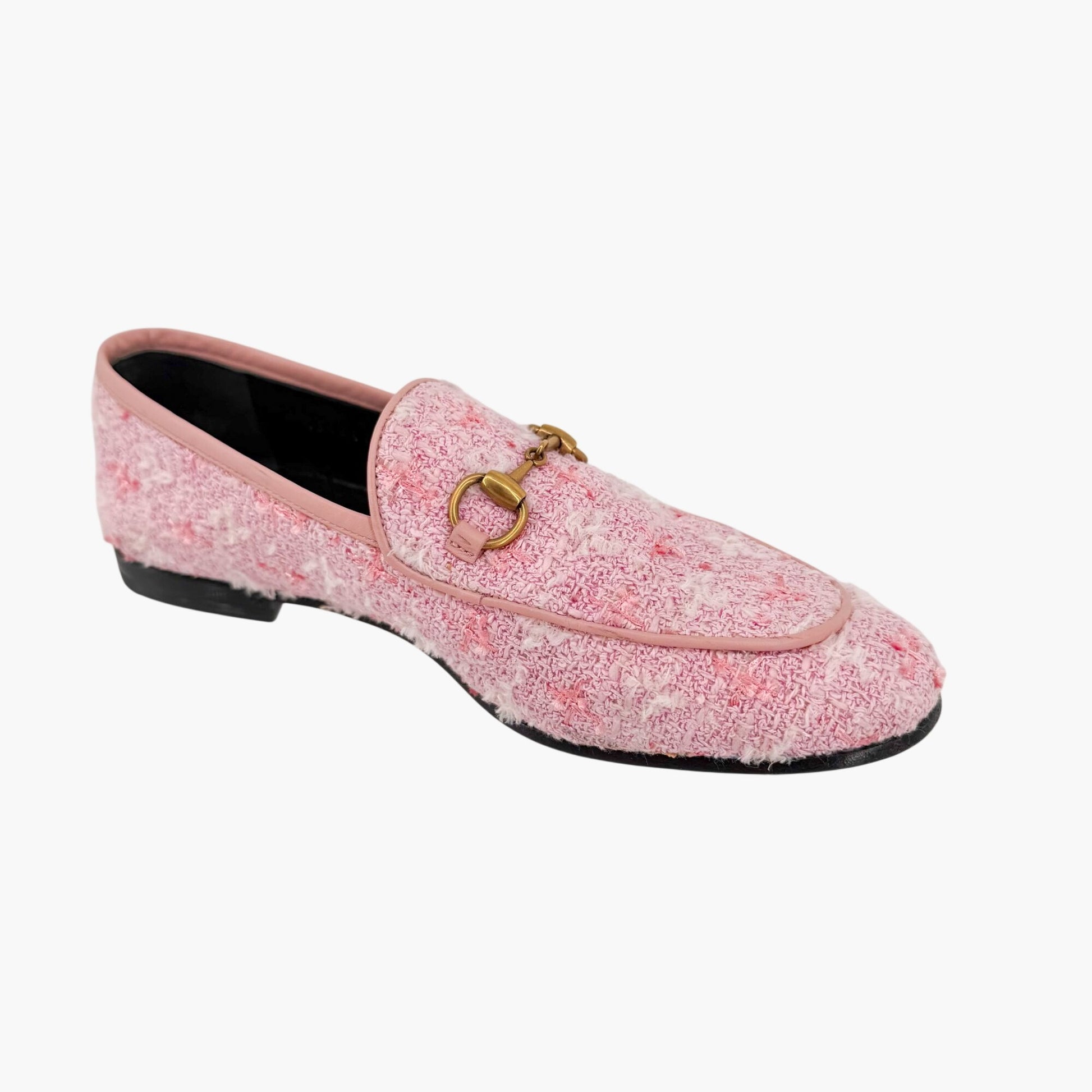 Gucci Jordaan Horsebit Loafers Pink Tweed Size 37
