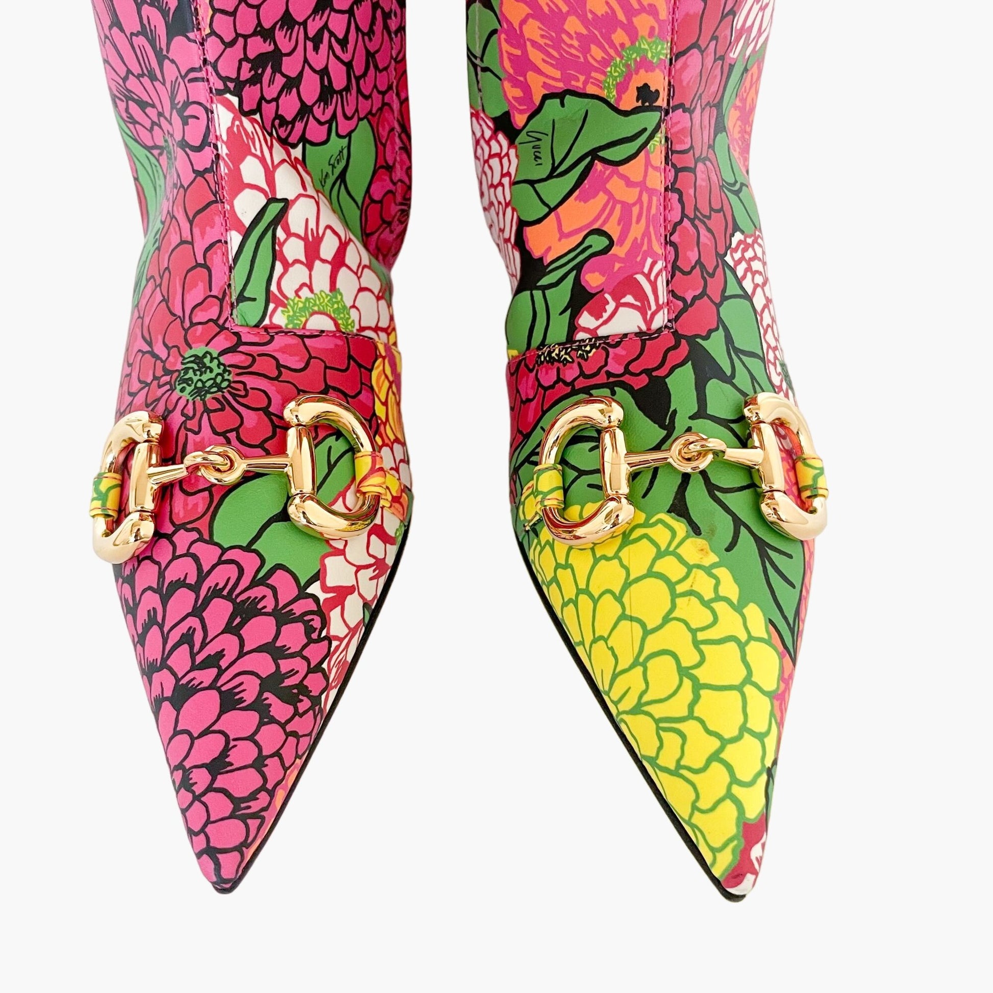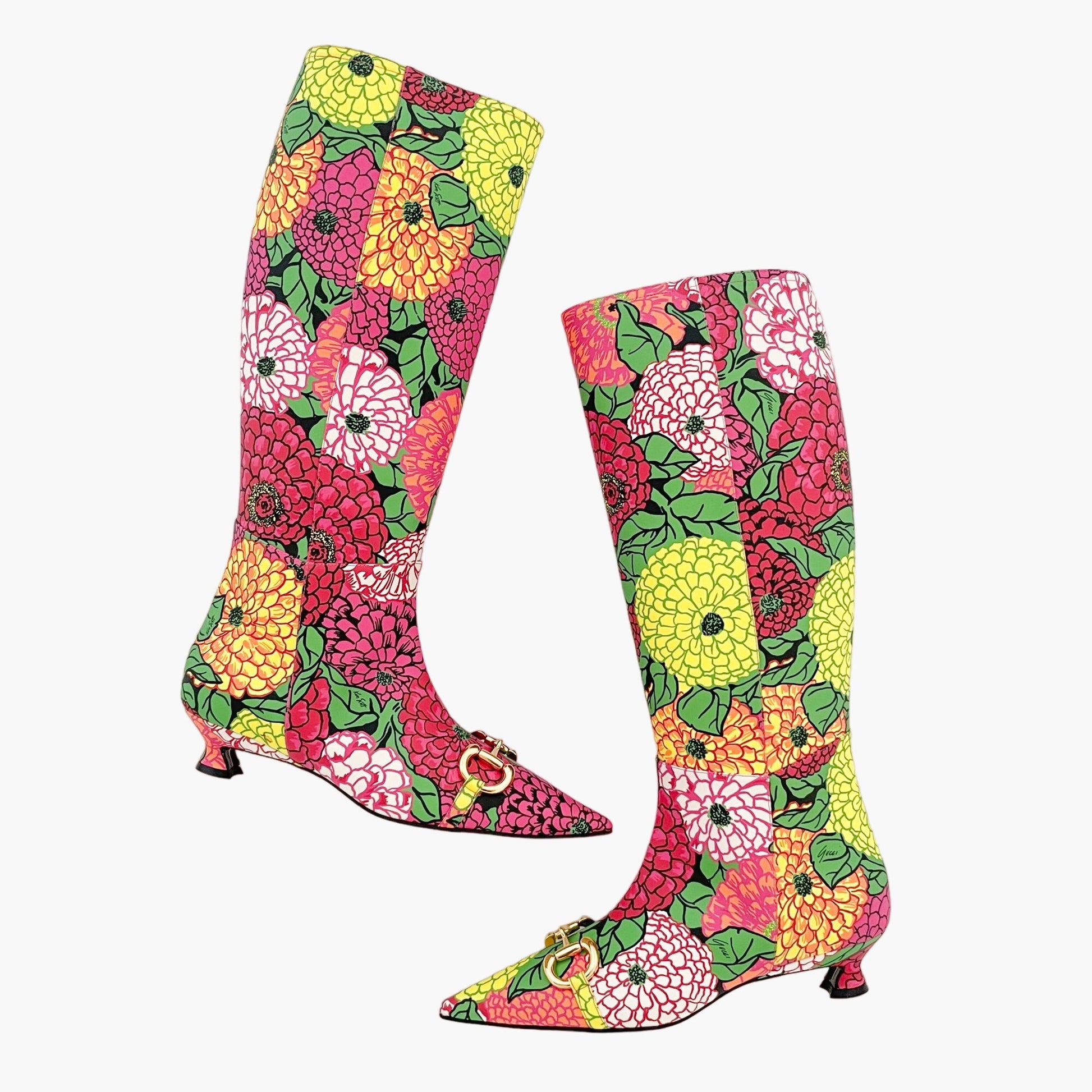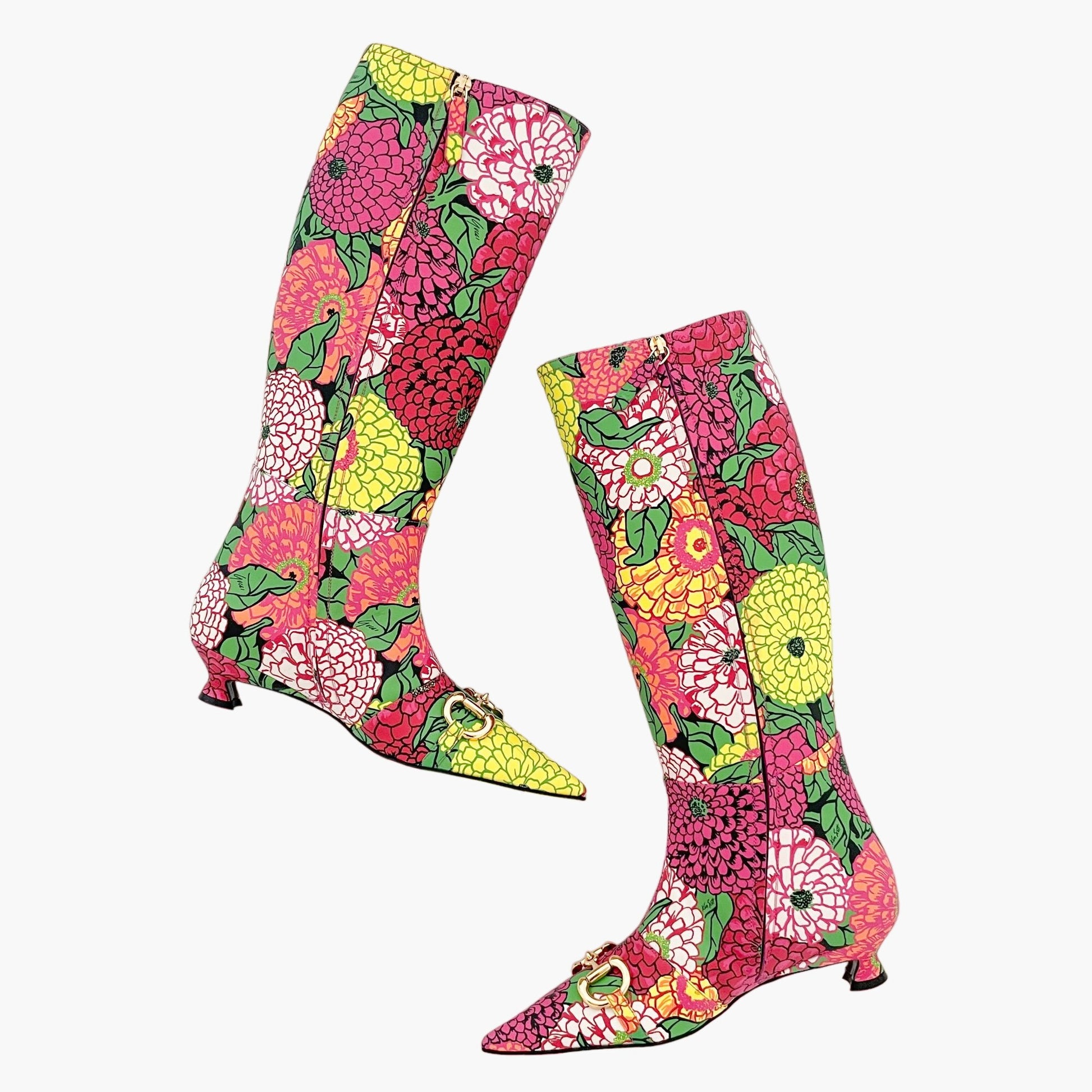 Gucci Ken Scott Hosebit Knee High Boot EU 36.5 US 6.5 Pink Floral Kitten Heel