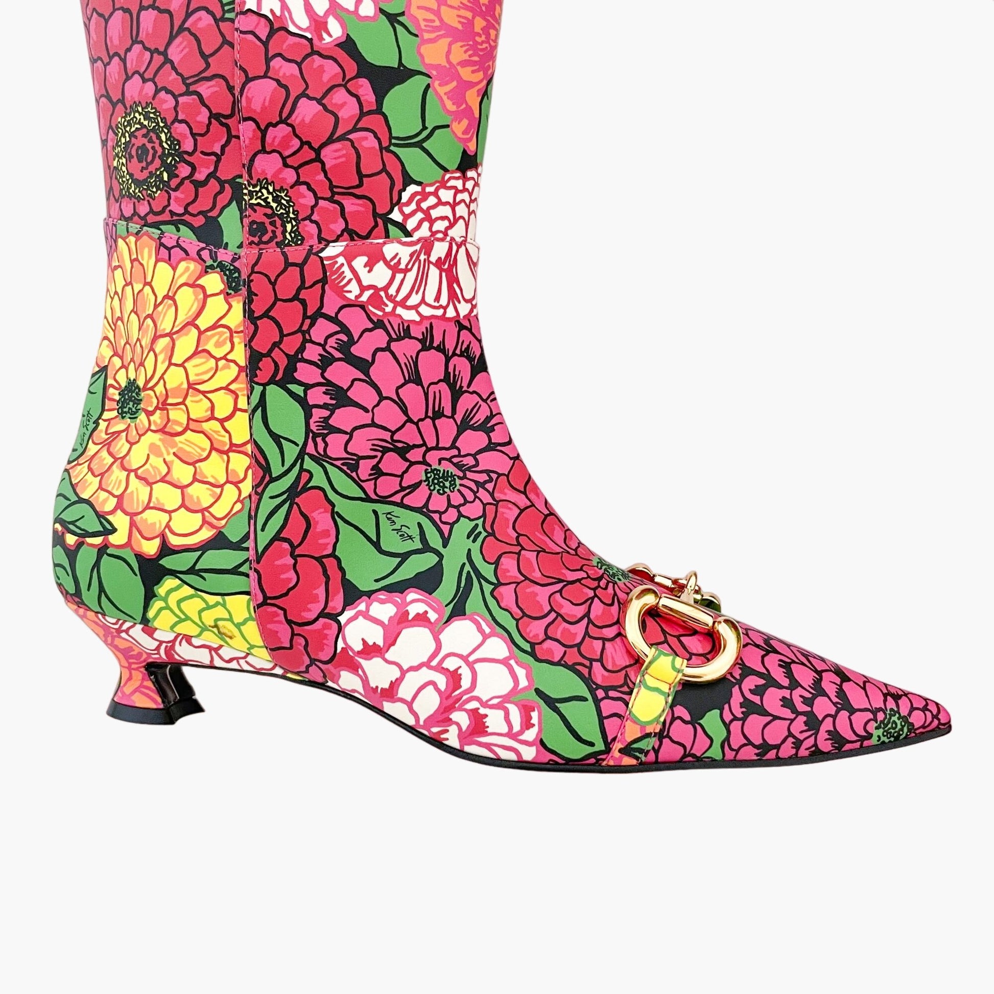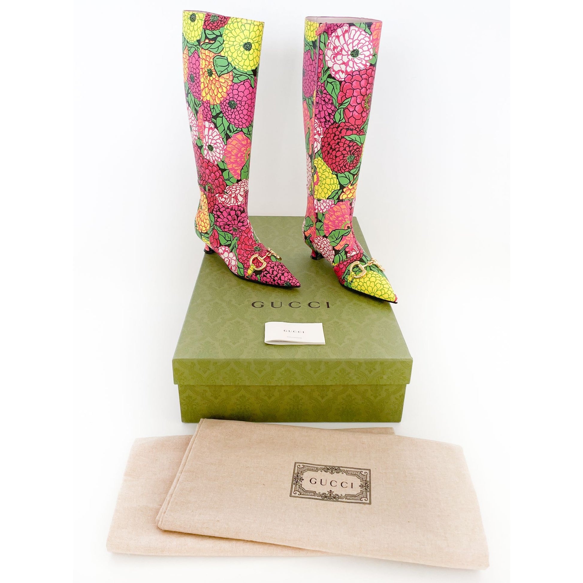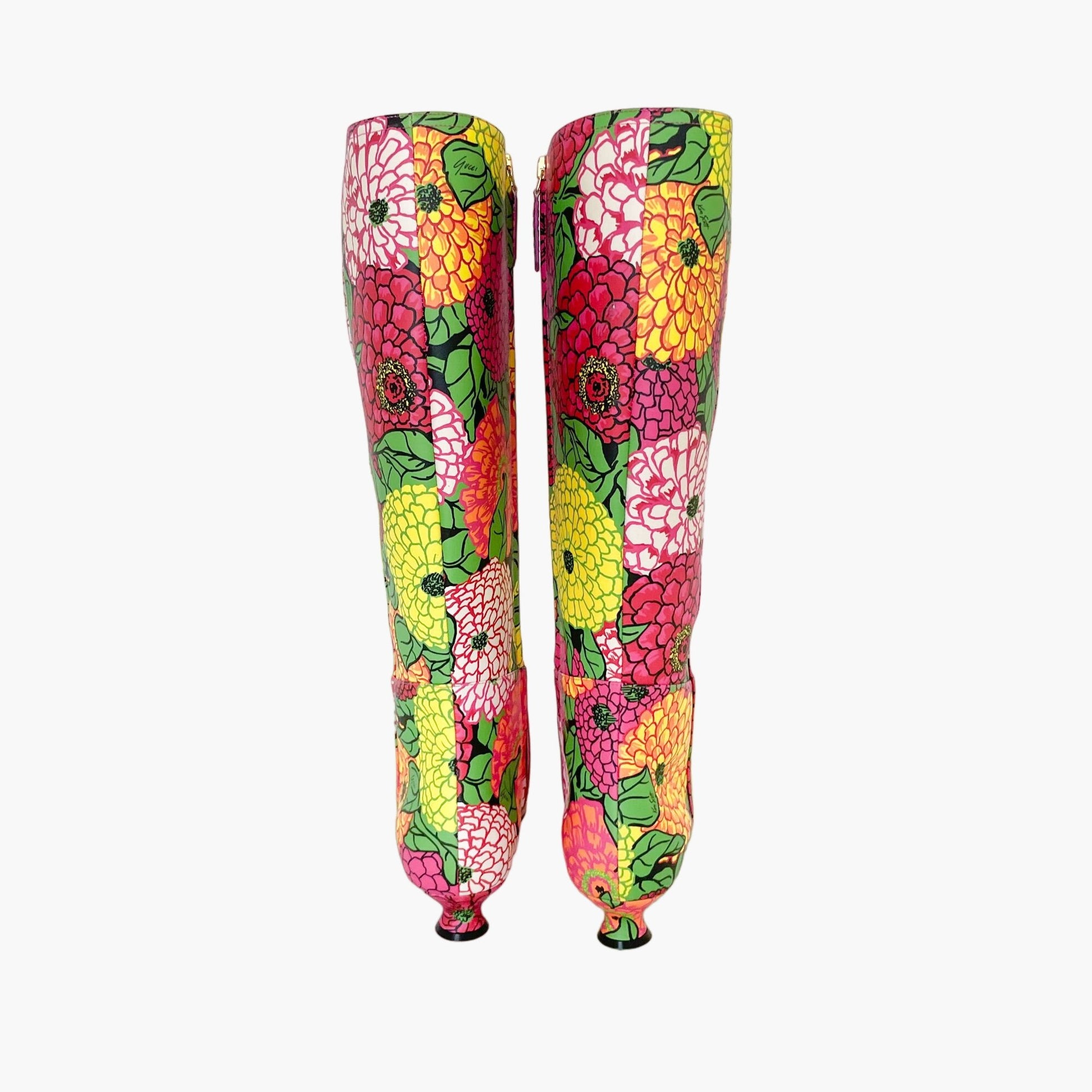 Gucci Ken Scott Hosebit Knee High Boot EU 36.5 US 6.5 Pink Floral Kitten Heel