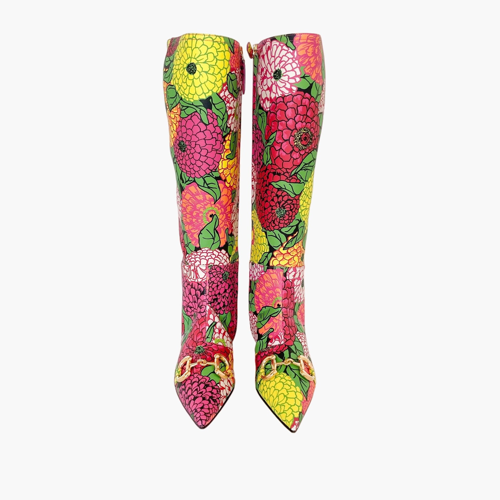 Gucci Ken Scott Horsebit Knee High Boots in Infinity Pomponica (Multicolor Foral)