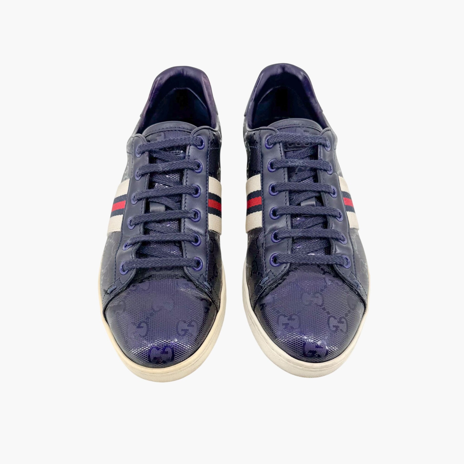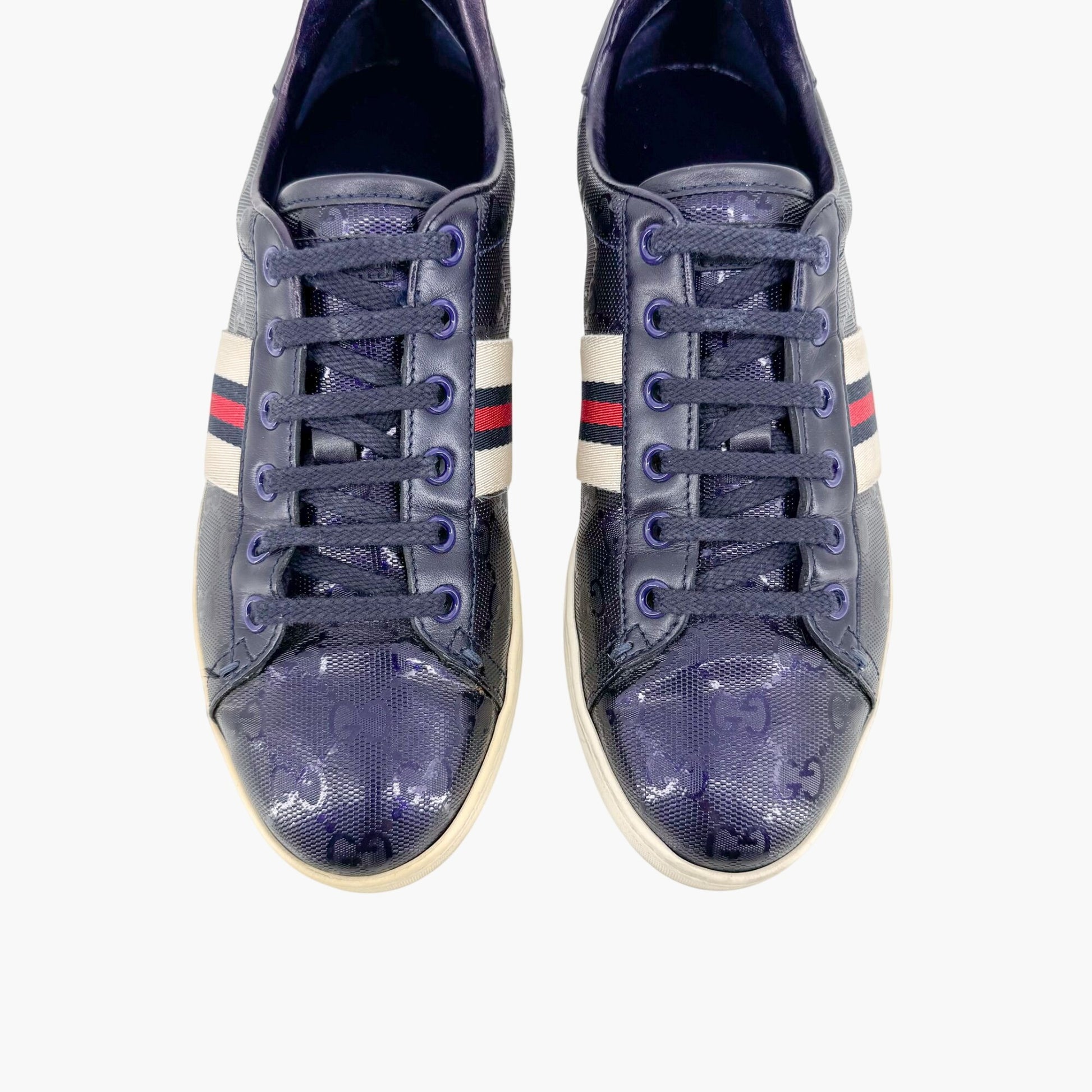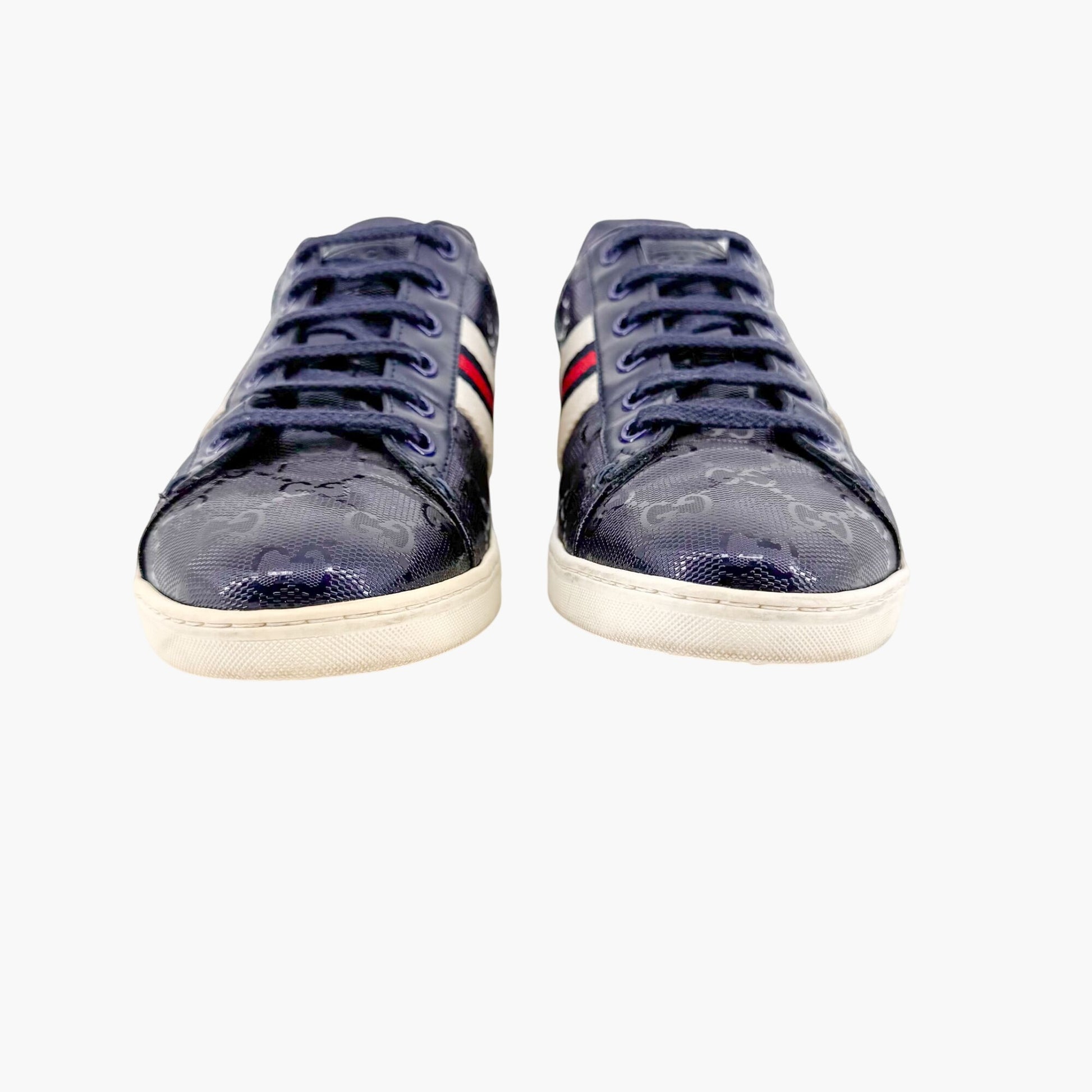 Gucci Low Top Sneakers in Navy Blue GG Monogram Impreme Size 37