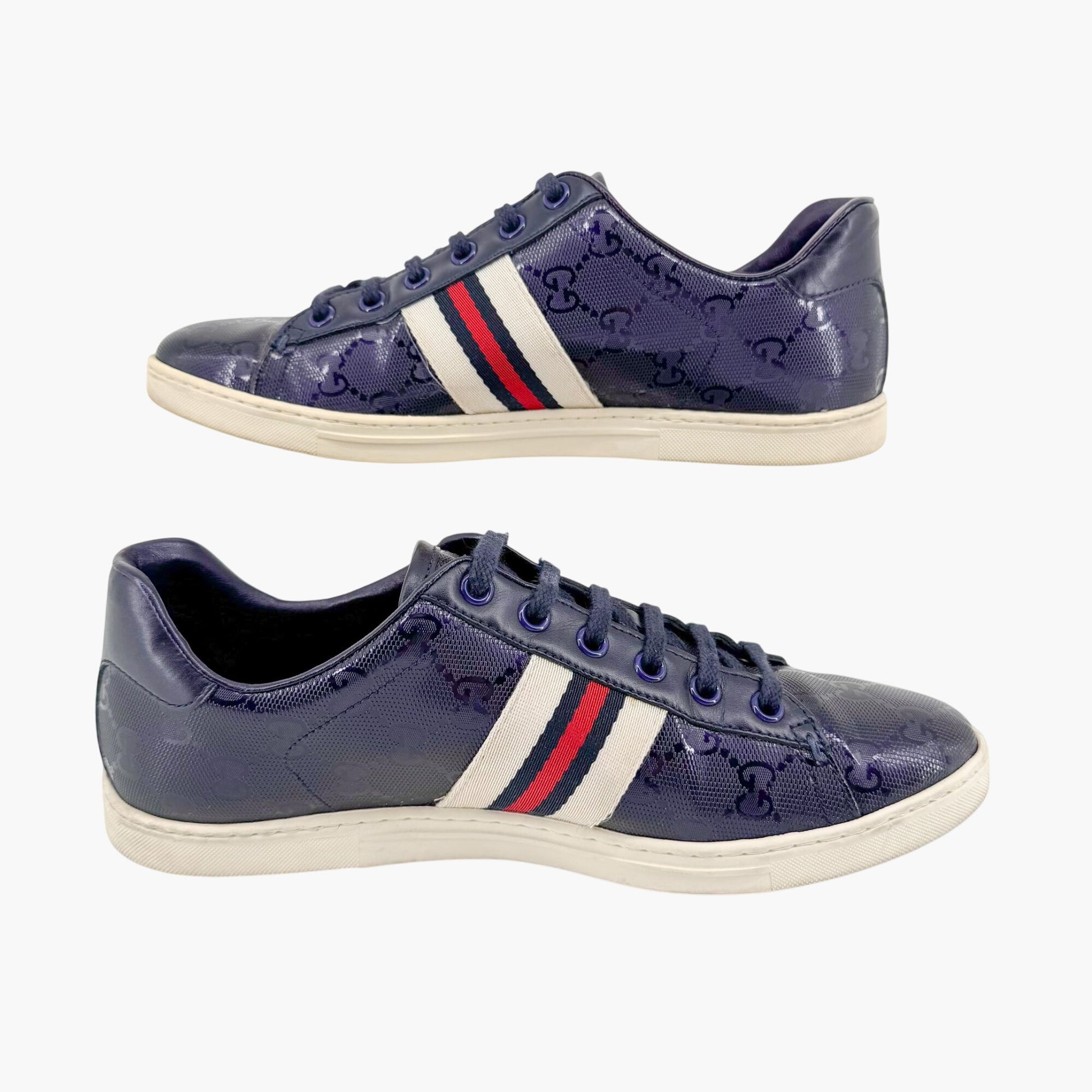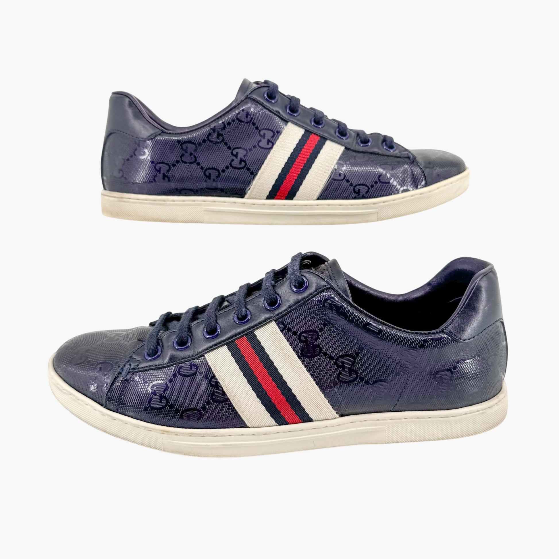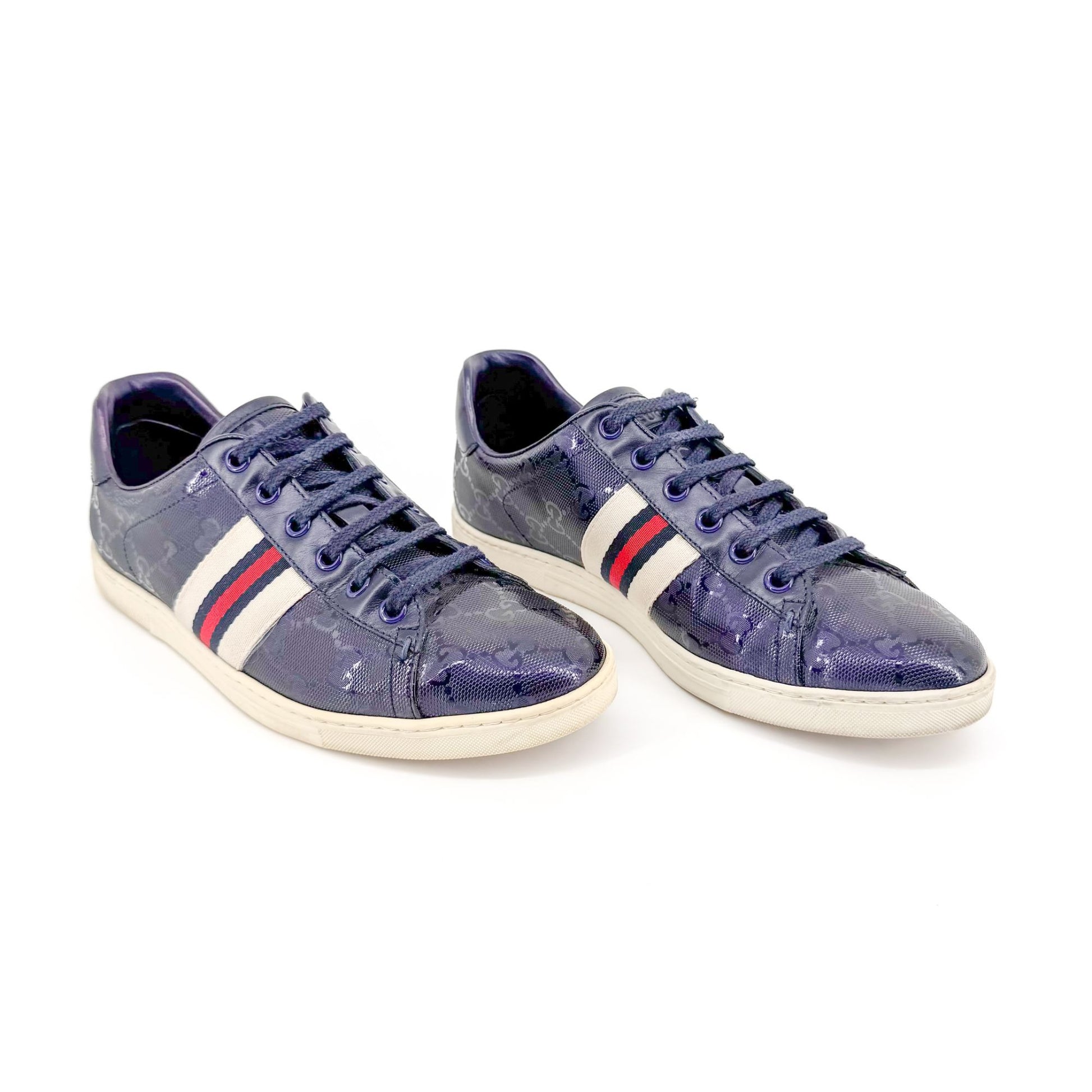Gucci Low Top Sneakers in Navy Blue GG Monogram Impreme Size 37