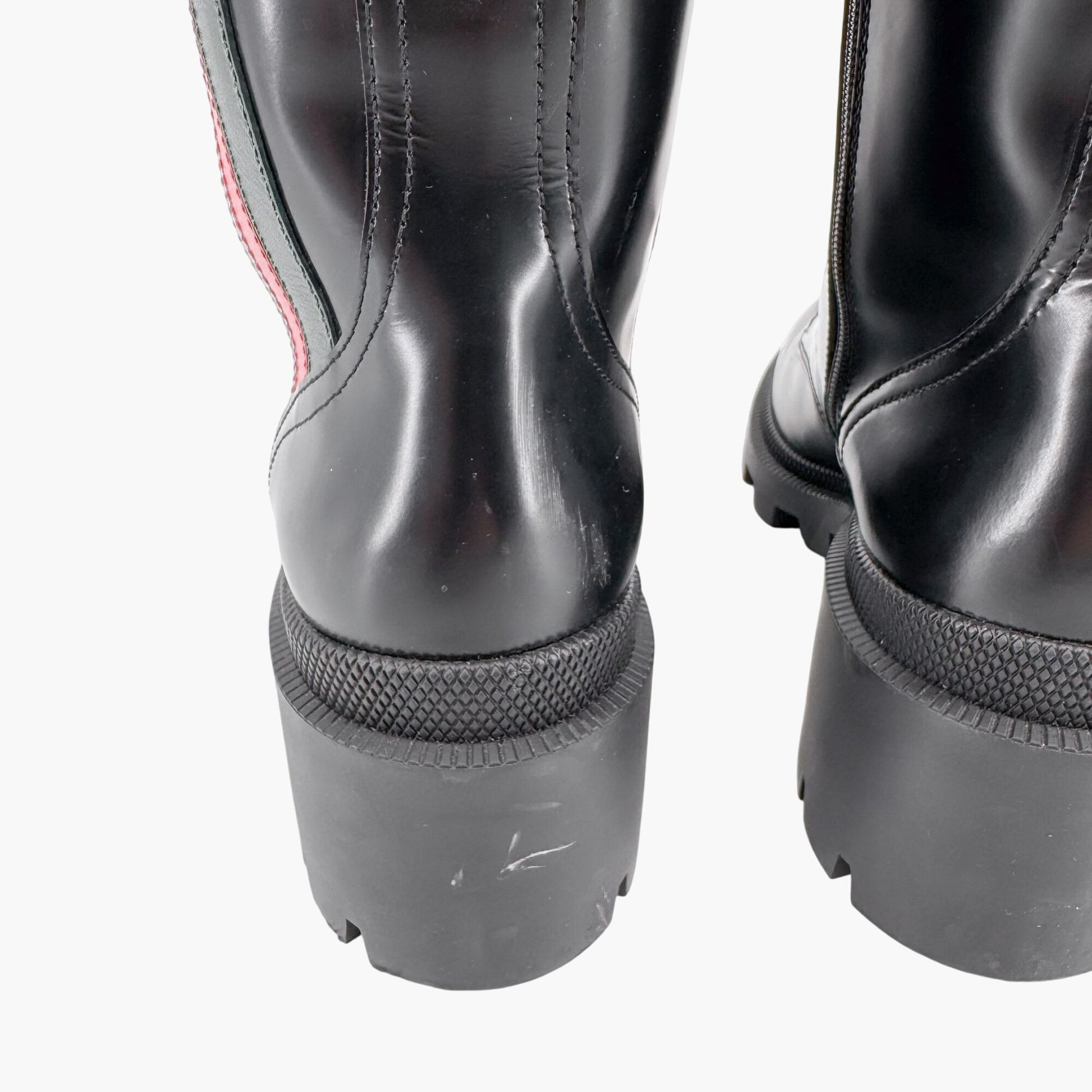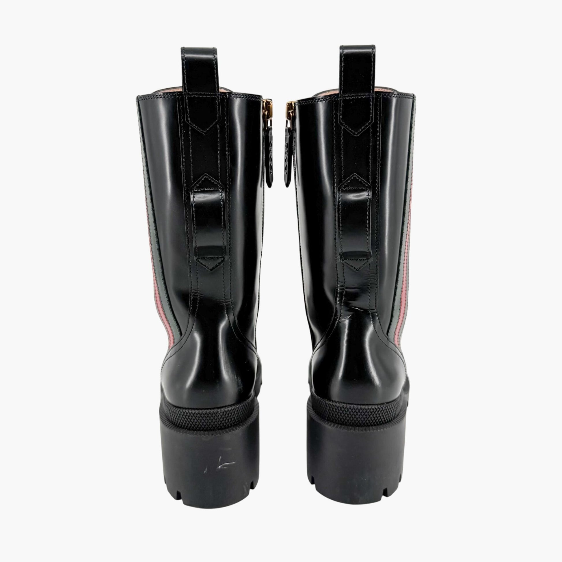 Gucci Magnum Web Stripe Lace Up Combat Boots in Black Leather Size 36.5