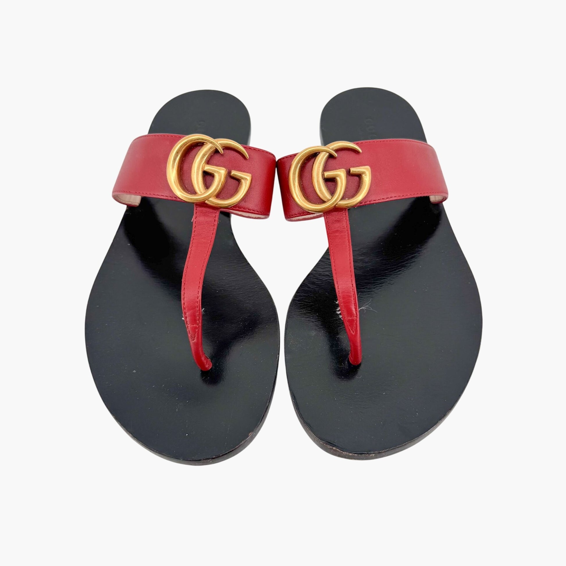 Gucci Marmont GG Thong Sandals EU 36.5 US 6.5 Red Leather Flat Flip Flop Shoe